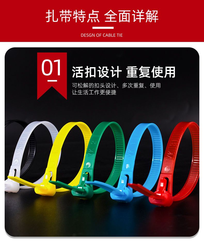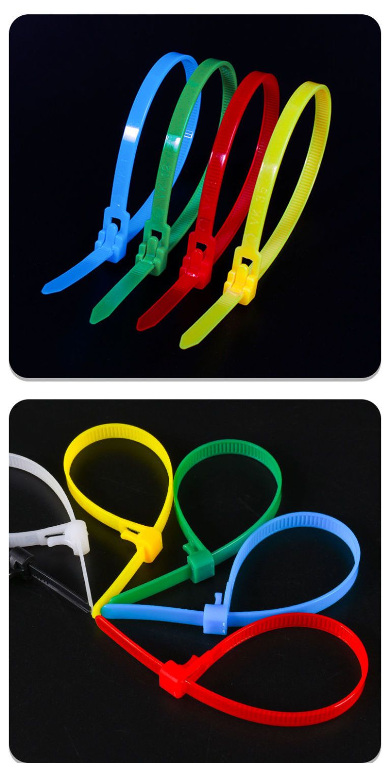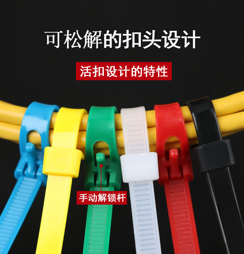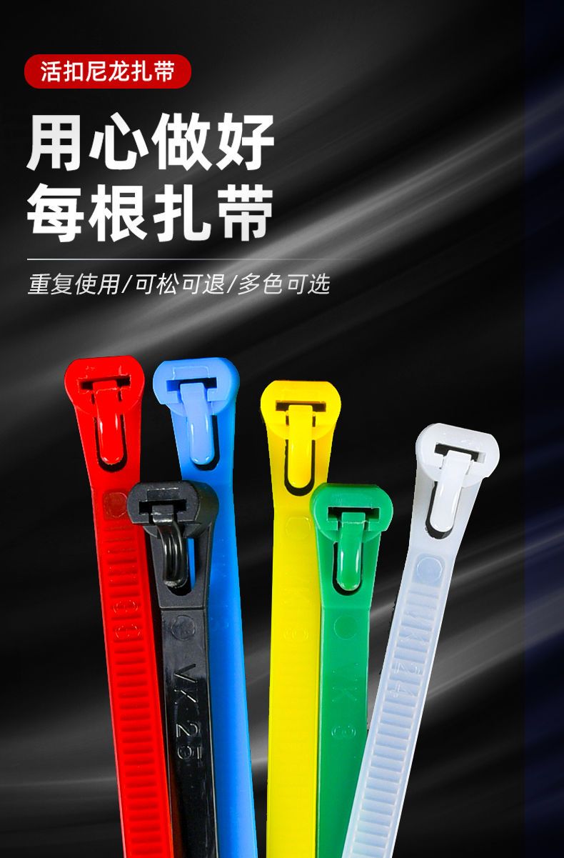 尼龙扎带重复使用塑料白活扣卡扣黑色绑彩色可松拆卸捆扎线带
