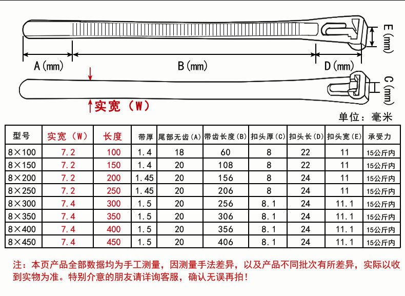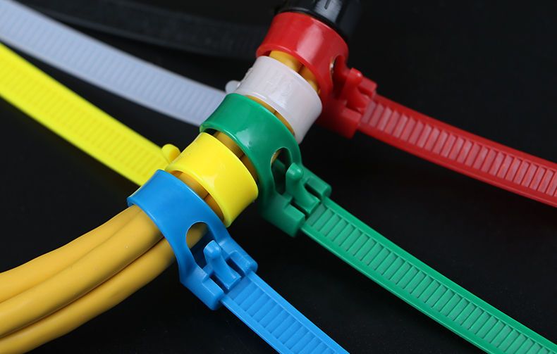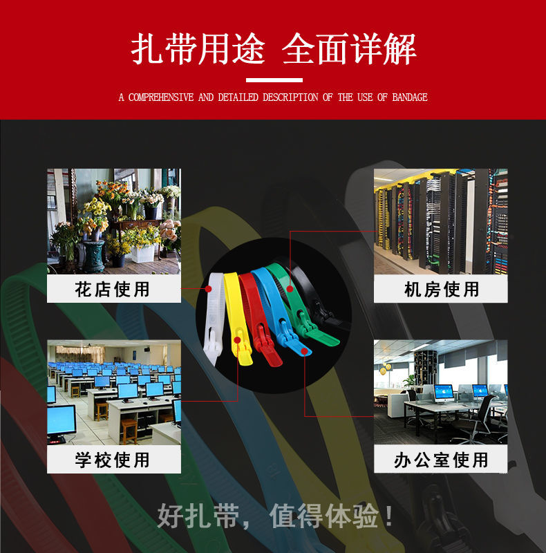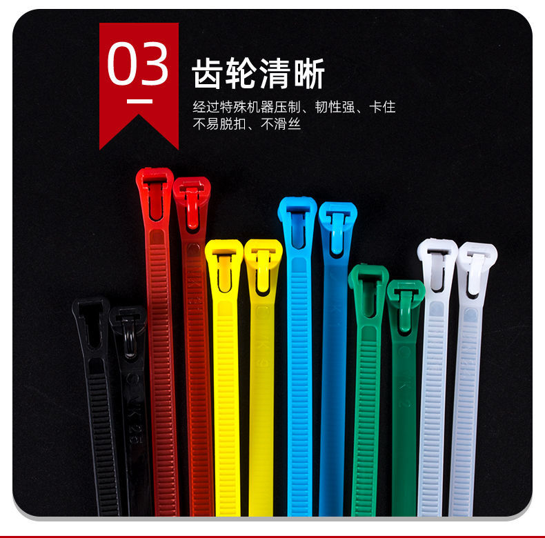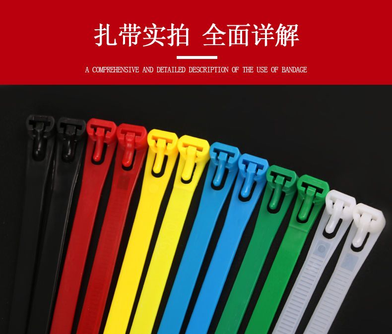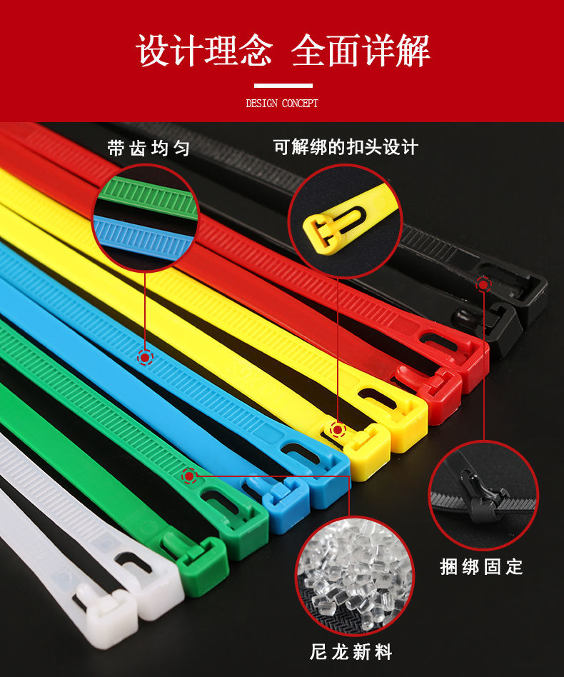 尼龙扎带重复使用塑料白活扣卡扣黑色绑彩色可松拆卸捆扎线带
