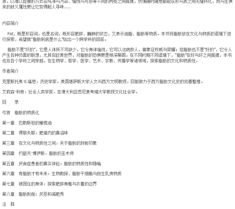 新知文库75·脂肪:文化与物质性