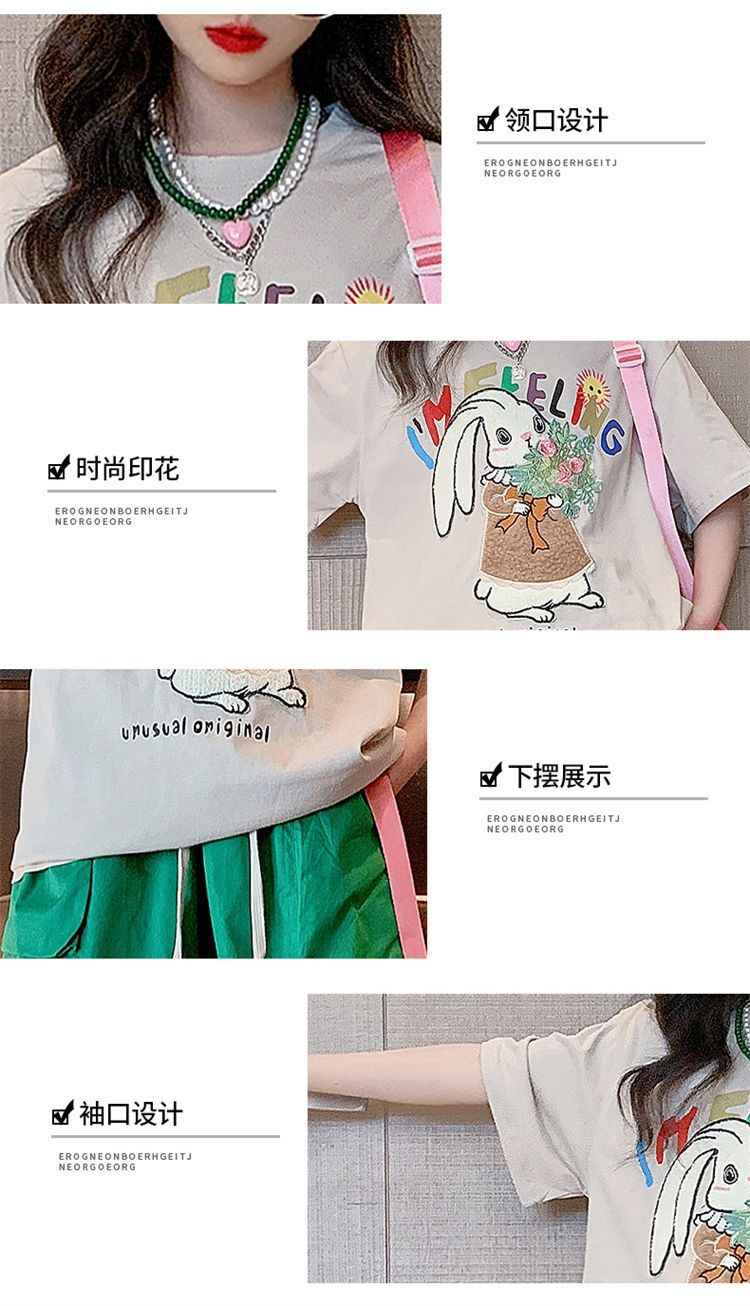 【俏皮卡通,萌趣多多!】女童短袖T恤棉质卡通夏季新款,儿童洋气女孩时尚中大童半袖t上衣-lm!-ry