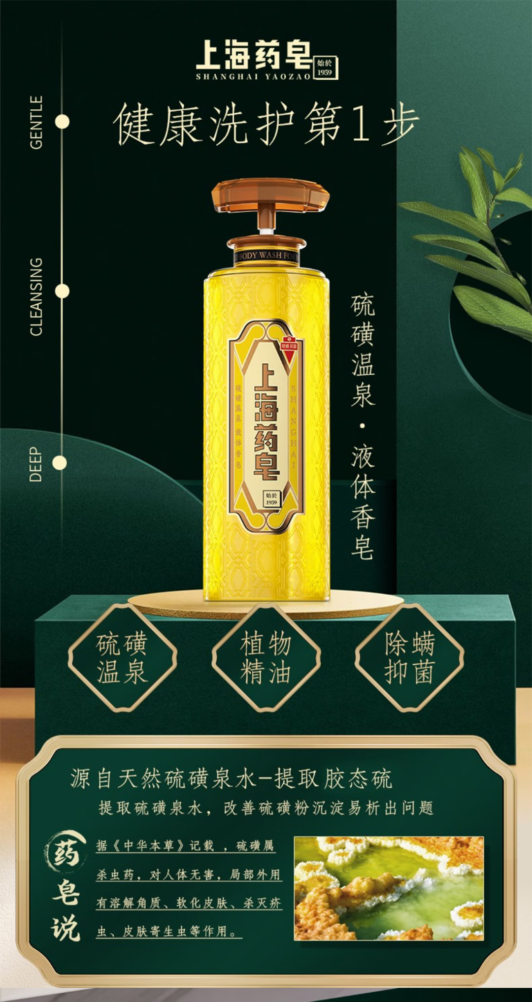 上海药皂硫磺温泉液体香皂/1瓶(620g)限用日期:28年5月补单专用