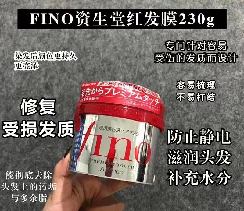 使用用法:小红罐FINO发膜:日常使用,等待五分钟左右洗掉;用作深度修复发膜时,敷上后等待15~20分钟冲洗,推荐一周一次。