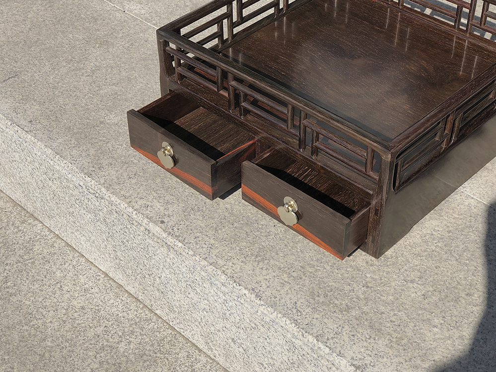 都承盘,平盘与抽屉结合形制,理应念dou承盘,意为什么都可以盛放用于案头收纳文具、文玩等。