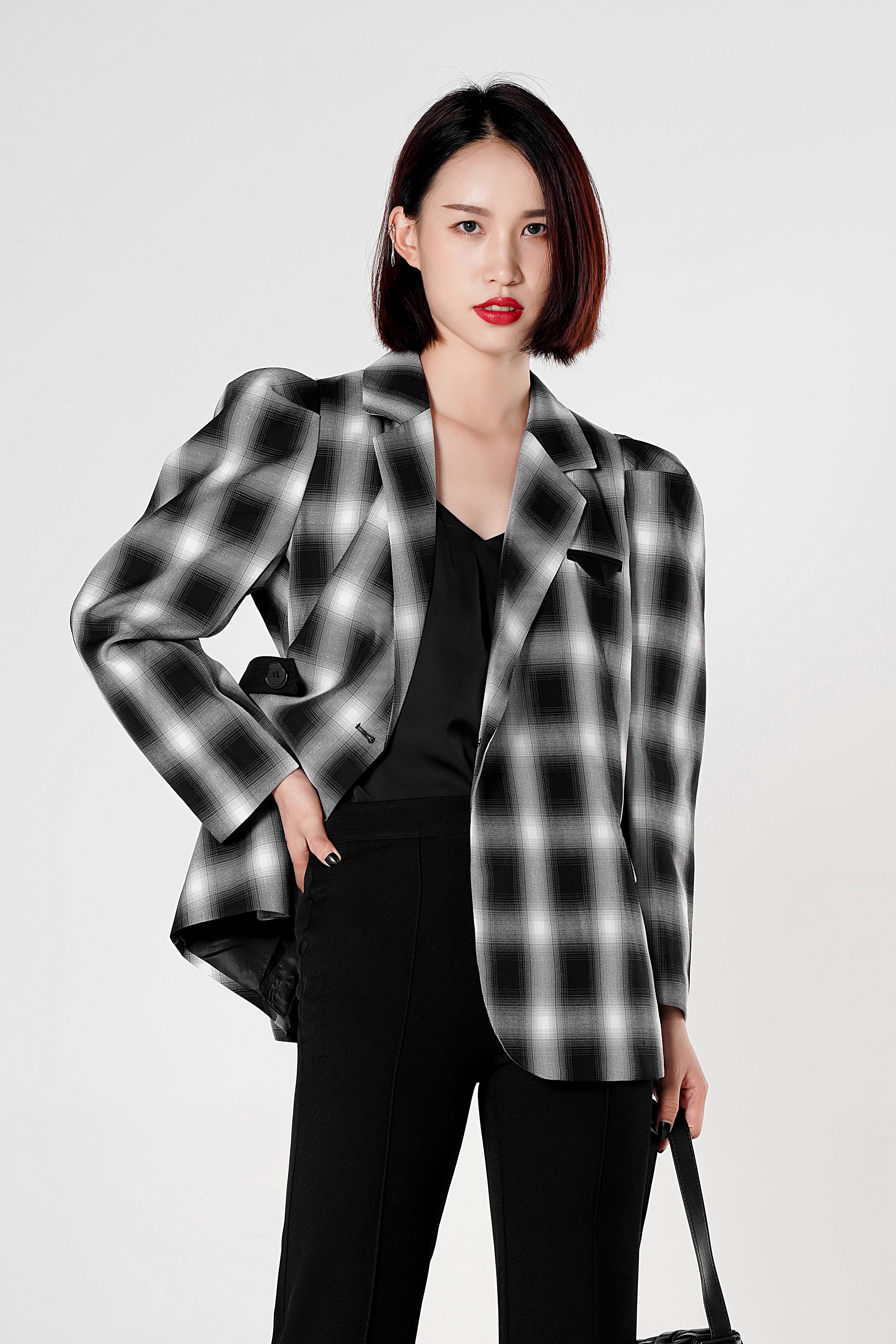 【S1】臣禾经典黑白色格纹休闲宽松版形西装外套K213010341