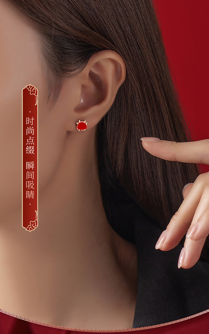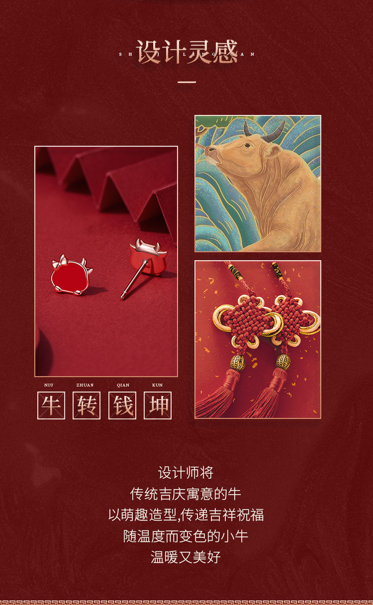 Winy925纯银吉祥牛耳钉送女友闺蜜节日生日礼物