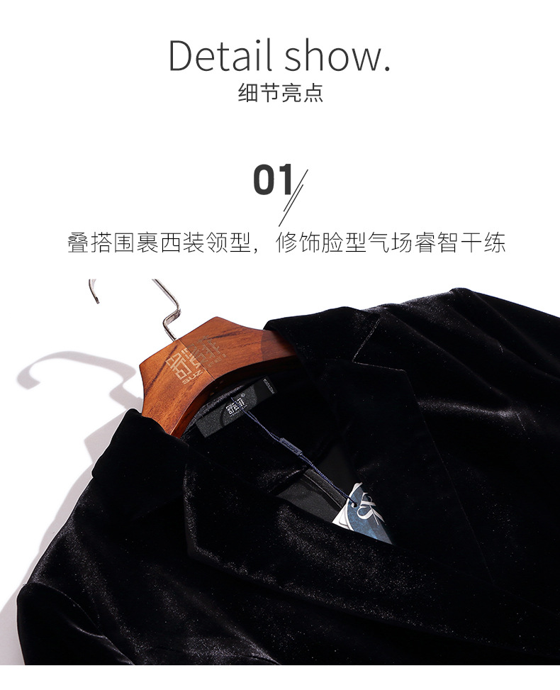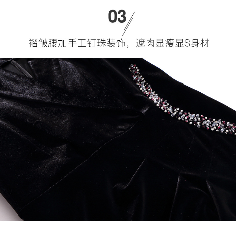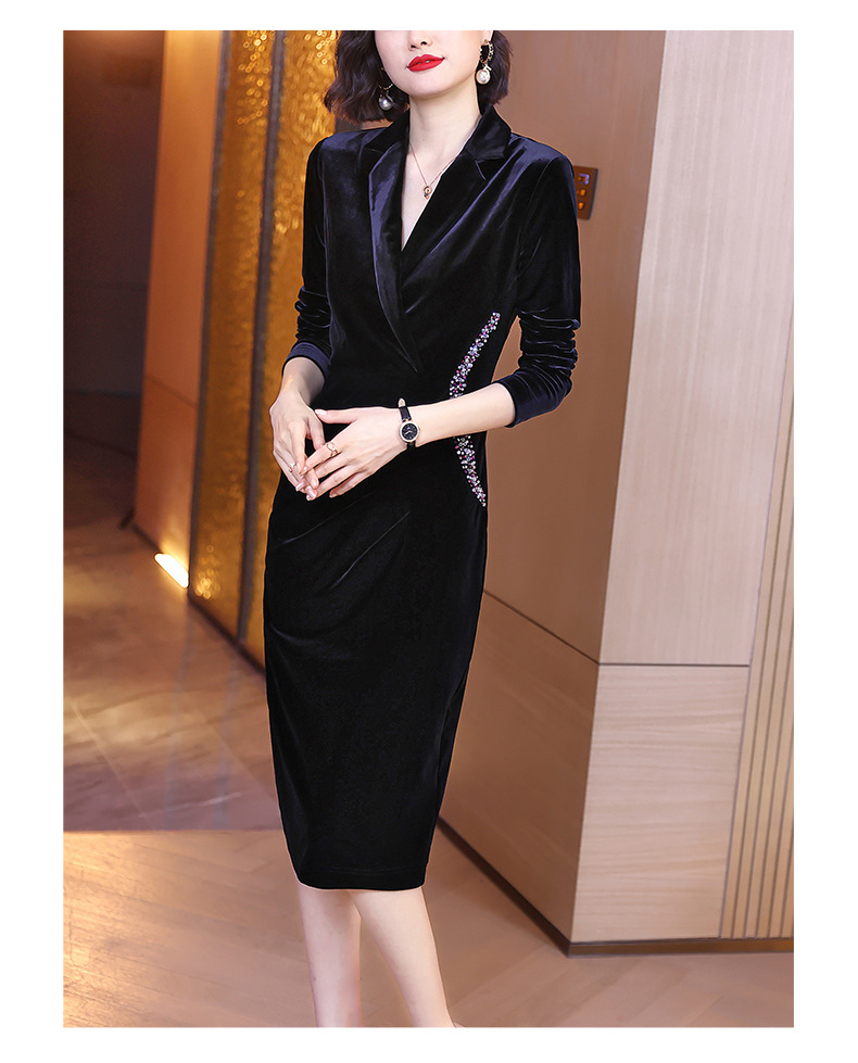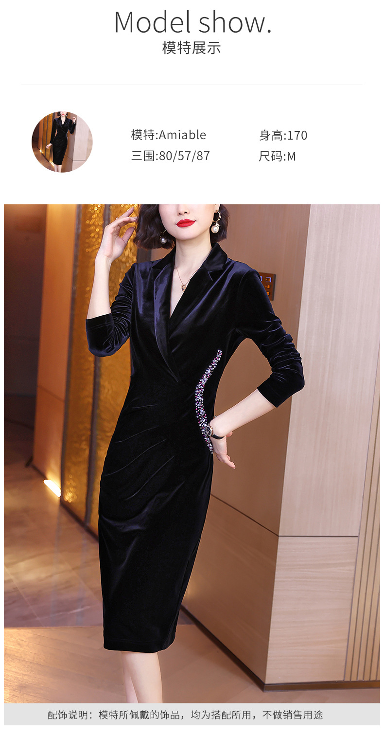 气质优雅,轻奢西装领钉珠装饰收腰显瘦金丝绒连衣裙XY-AS8762