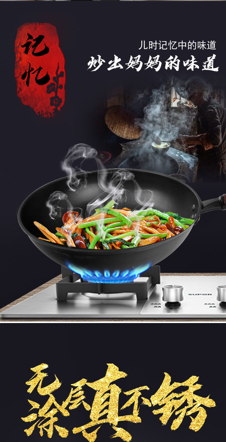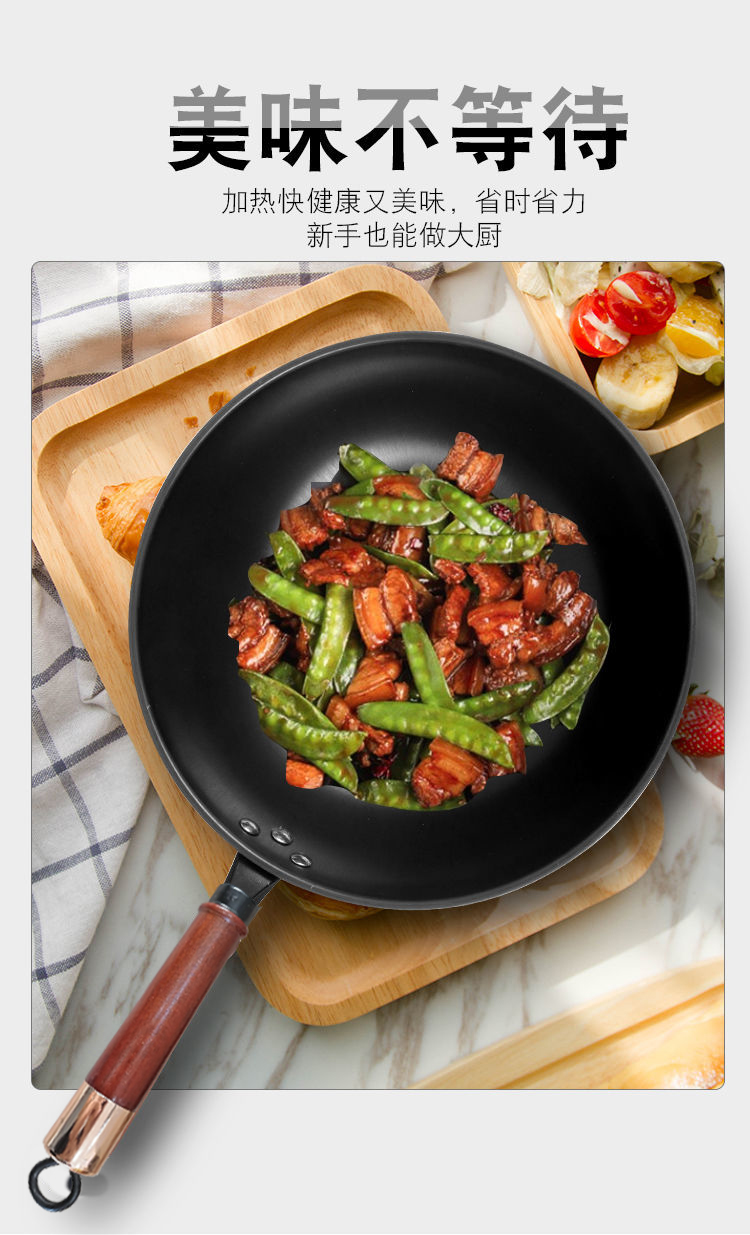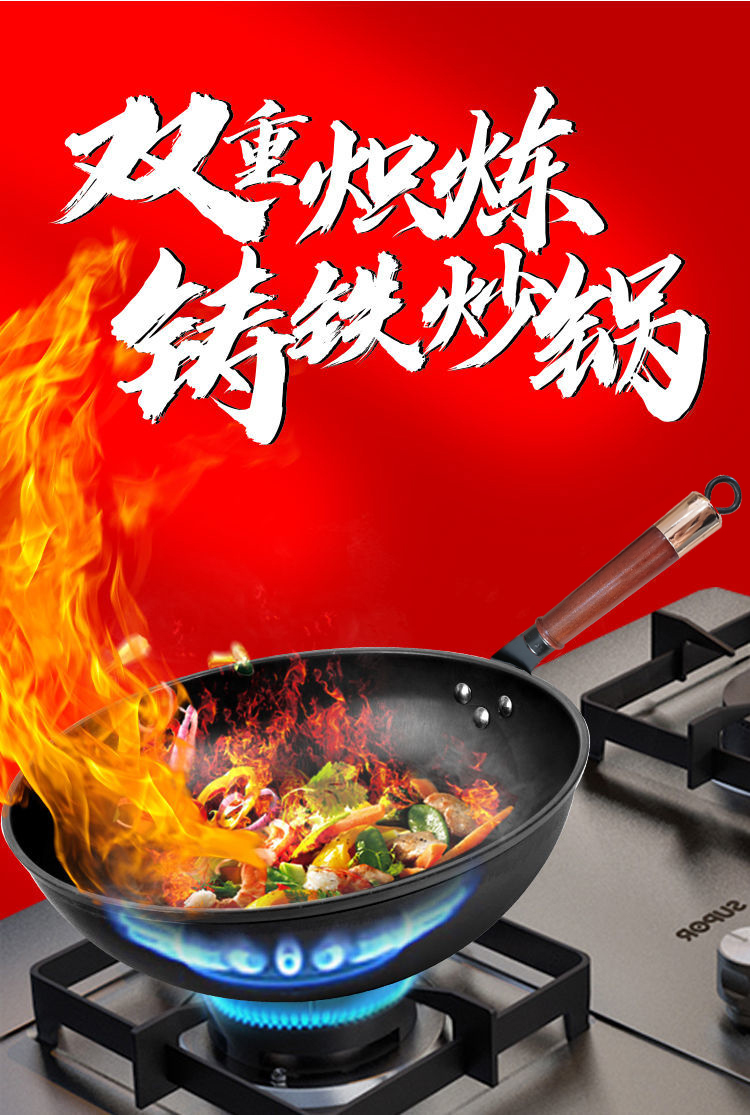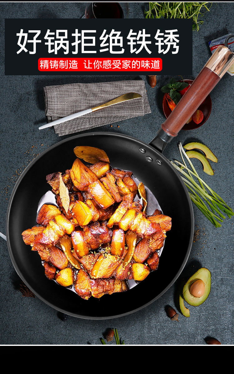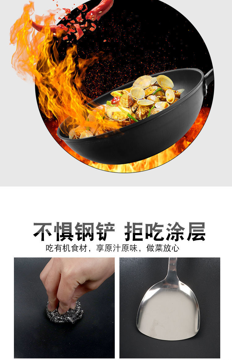 熊猫·国宴大师传统古法手工铸造 无涂层不粘高纯度铁锅32cm不粘家用炒锅