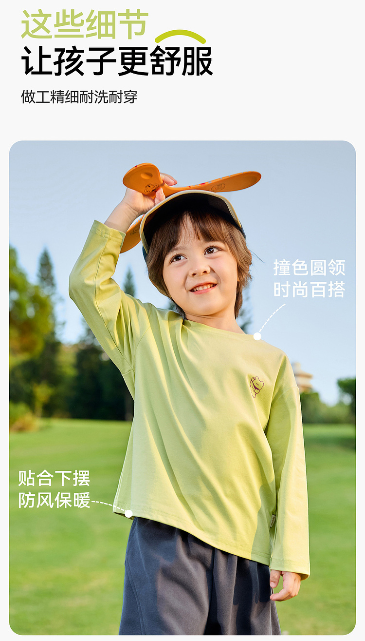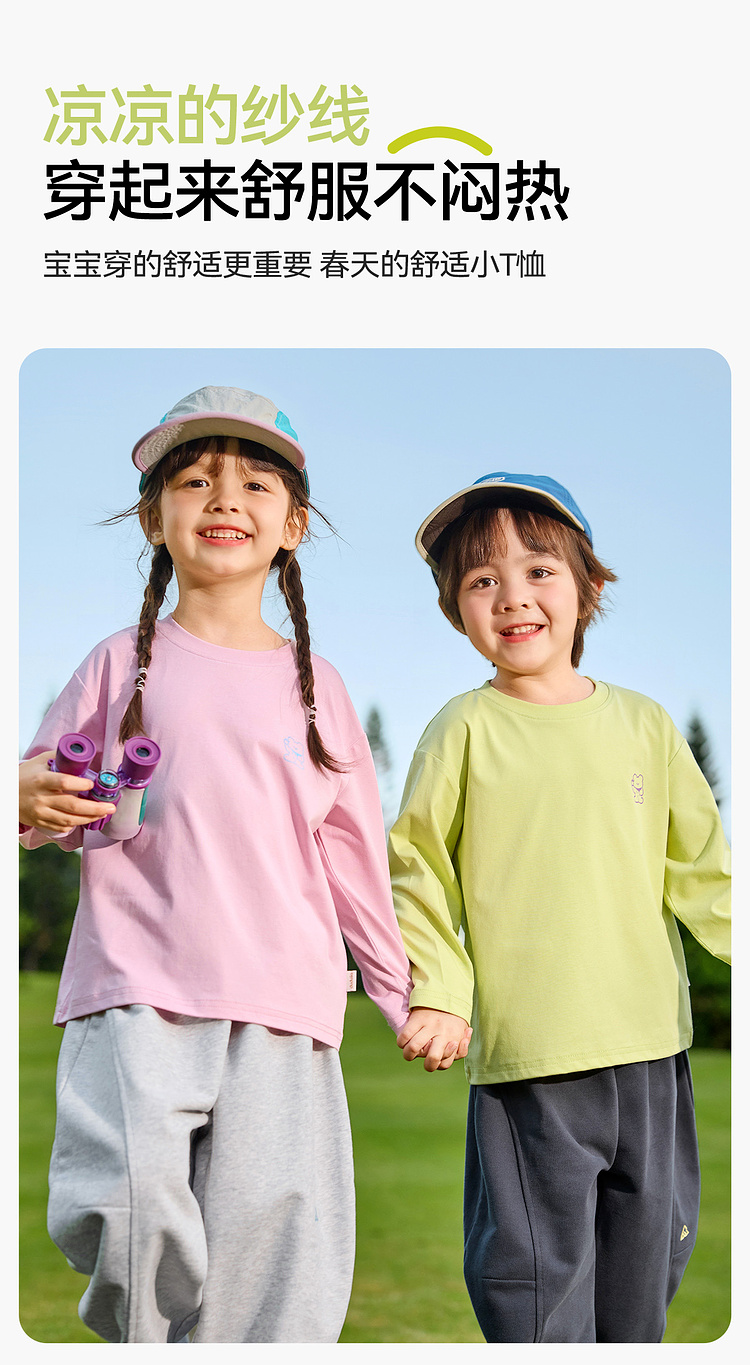 【凉感索罗那】嘟嘟家儿童T恤宝宝春季新款衣服男童女童春秋长袖上衣婴儿A类童装F6ATX017
