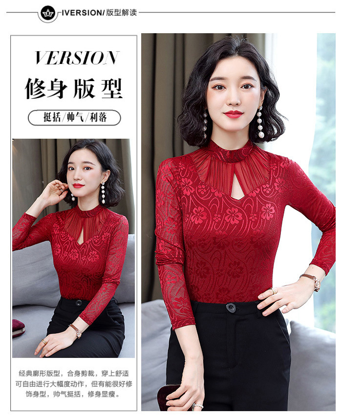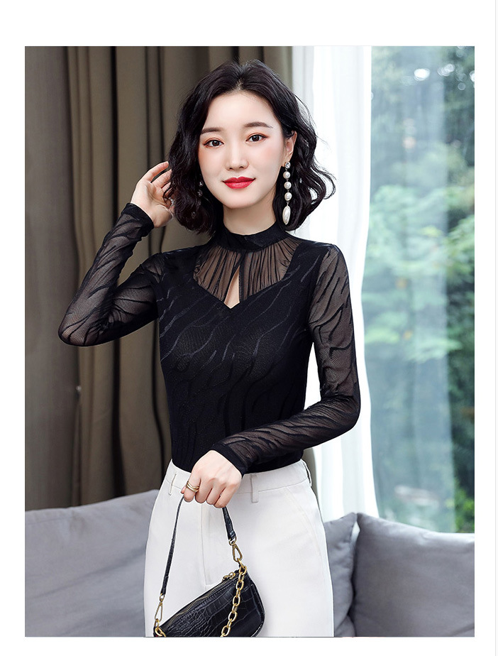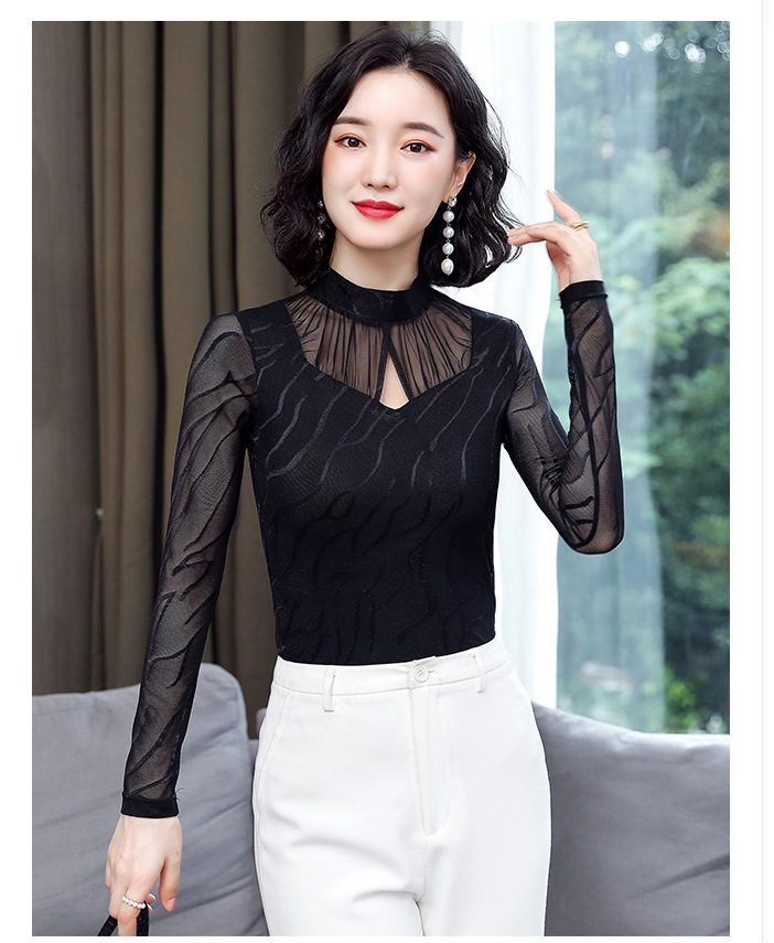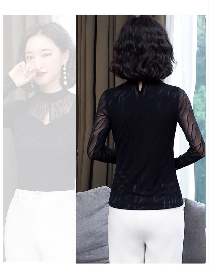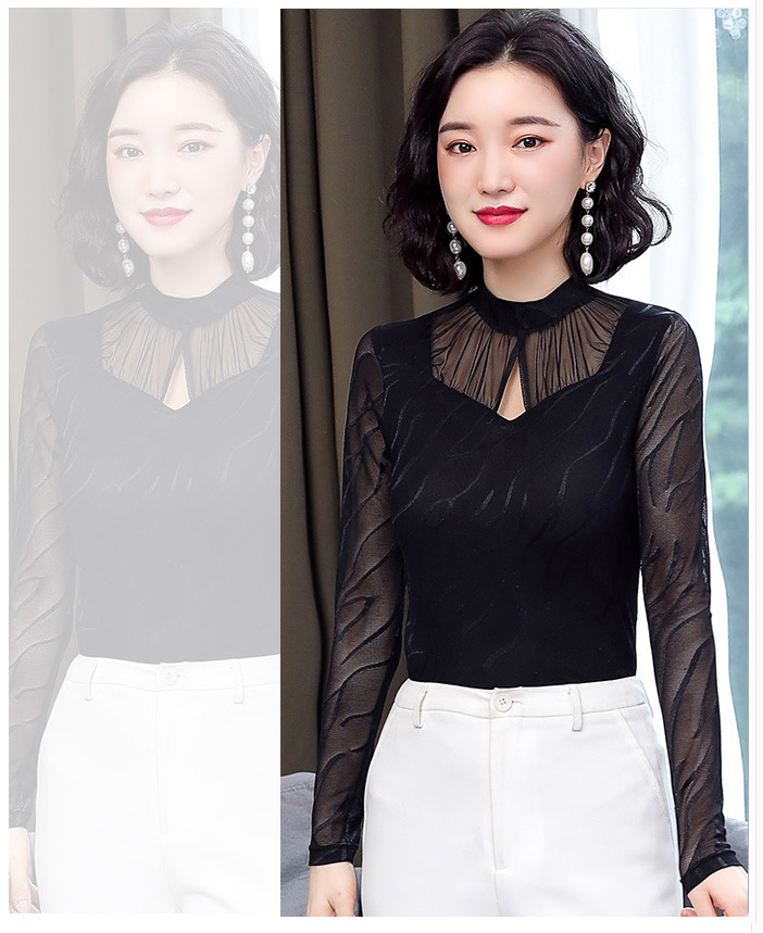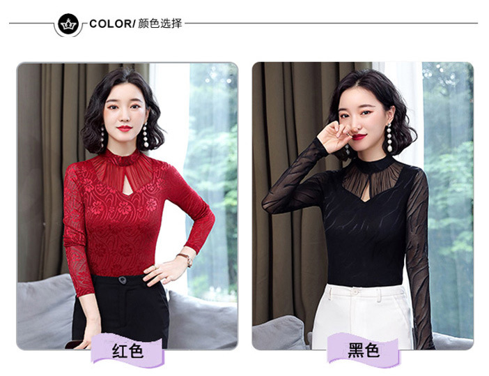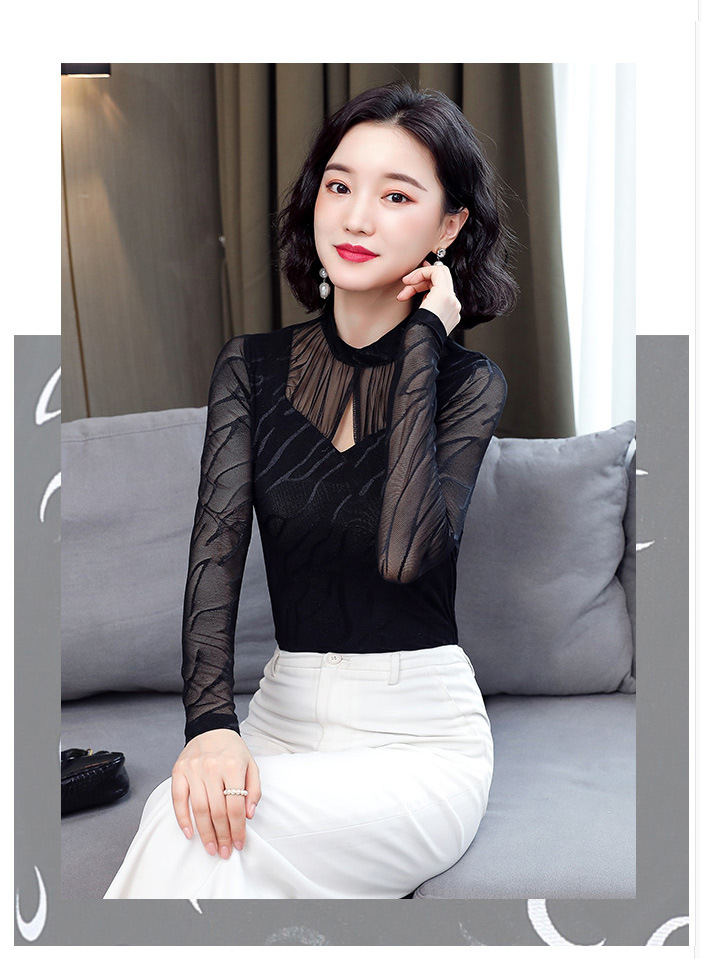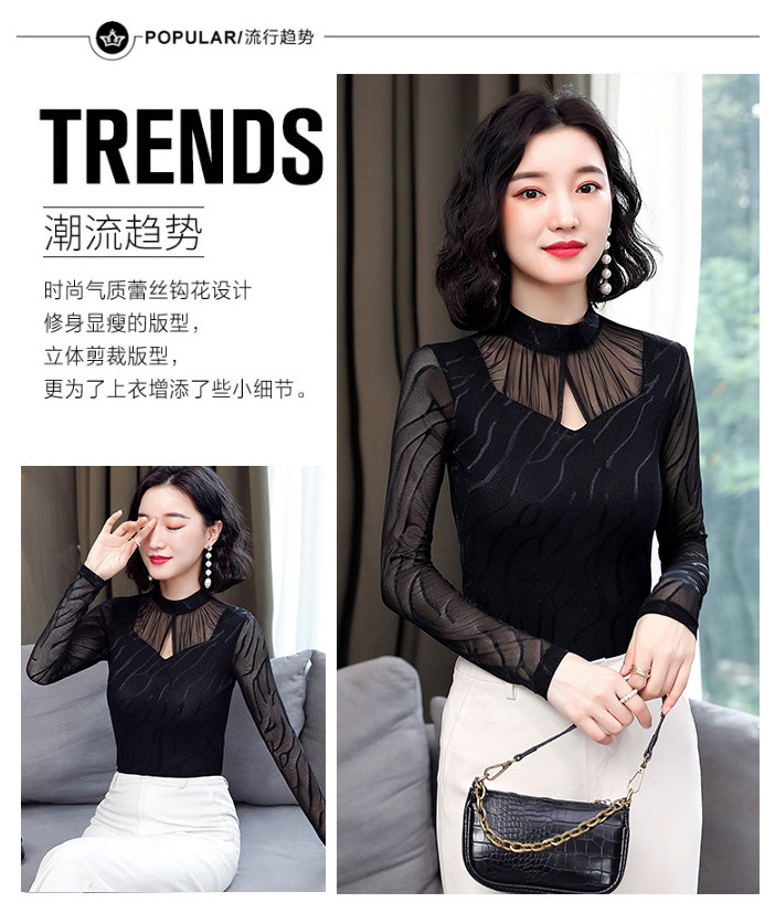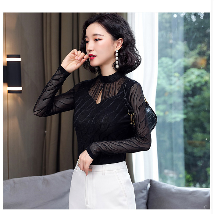 HM-2005蕾丝长袖打底衫女2020秋冬新款气质百搭女士修身网纱上衣