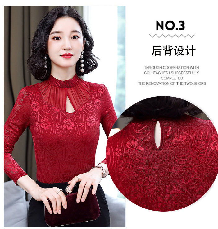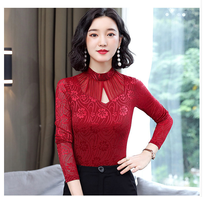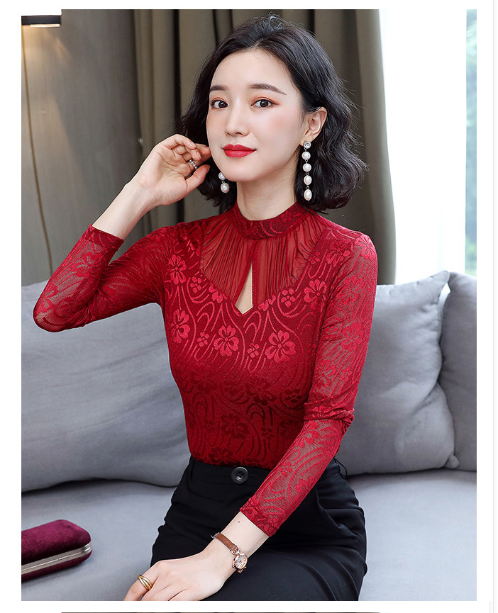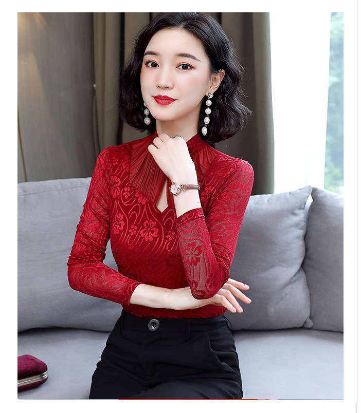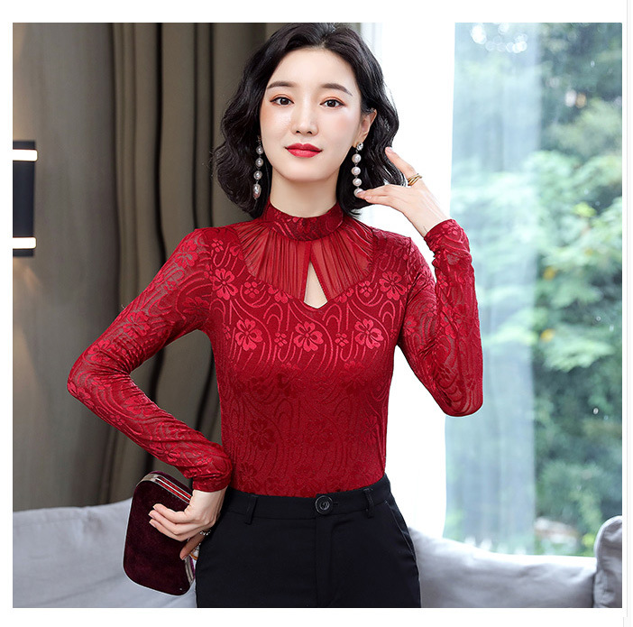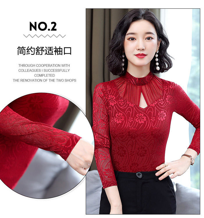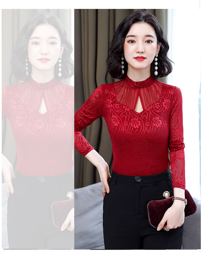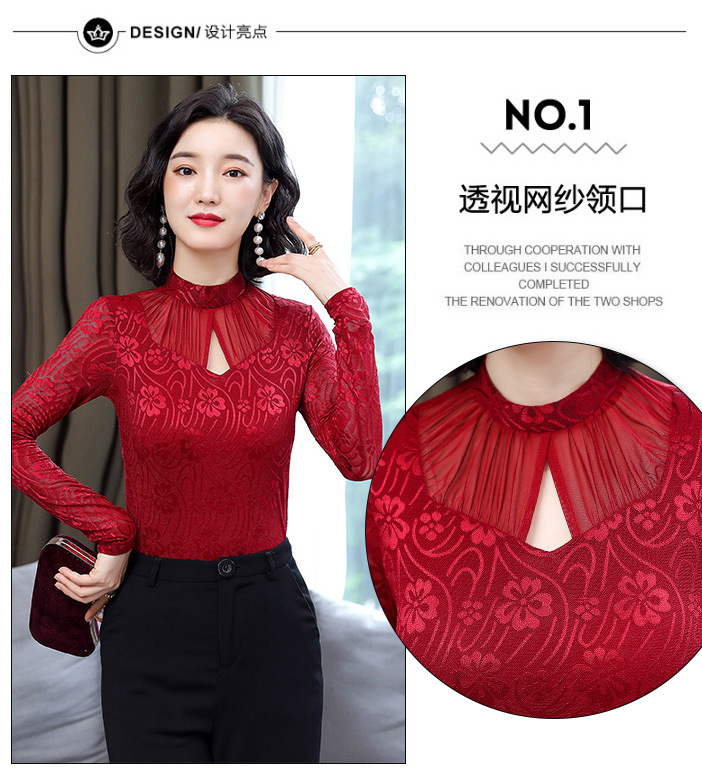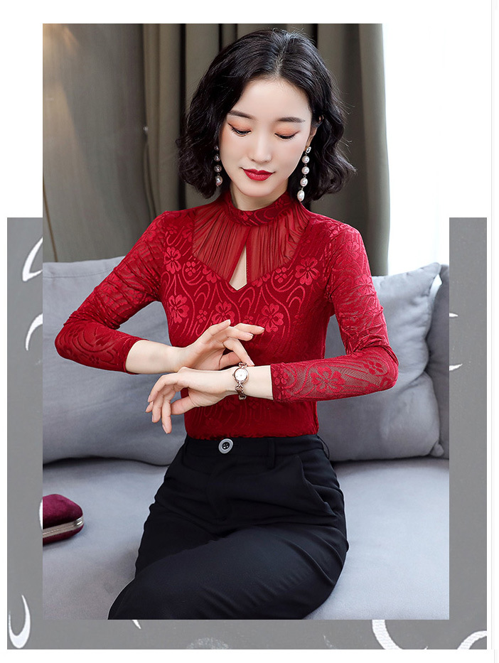 HM-2005蕾丝长袖打底衫女2020秋冬新款气质百搭女士修身网纱上衣
