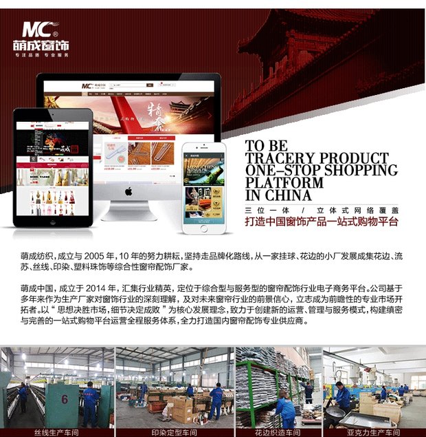 萌成窗饰旗舰店,窗饰行业互联网先驱,旨在为广大窗帘零售商提供更齐全的产品,更具有竞争力的价格,更优质的售后服务。 批发窗饰产品找萌成!
