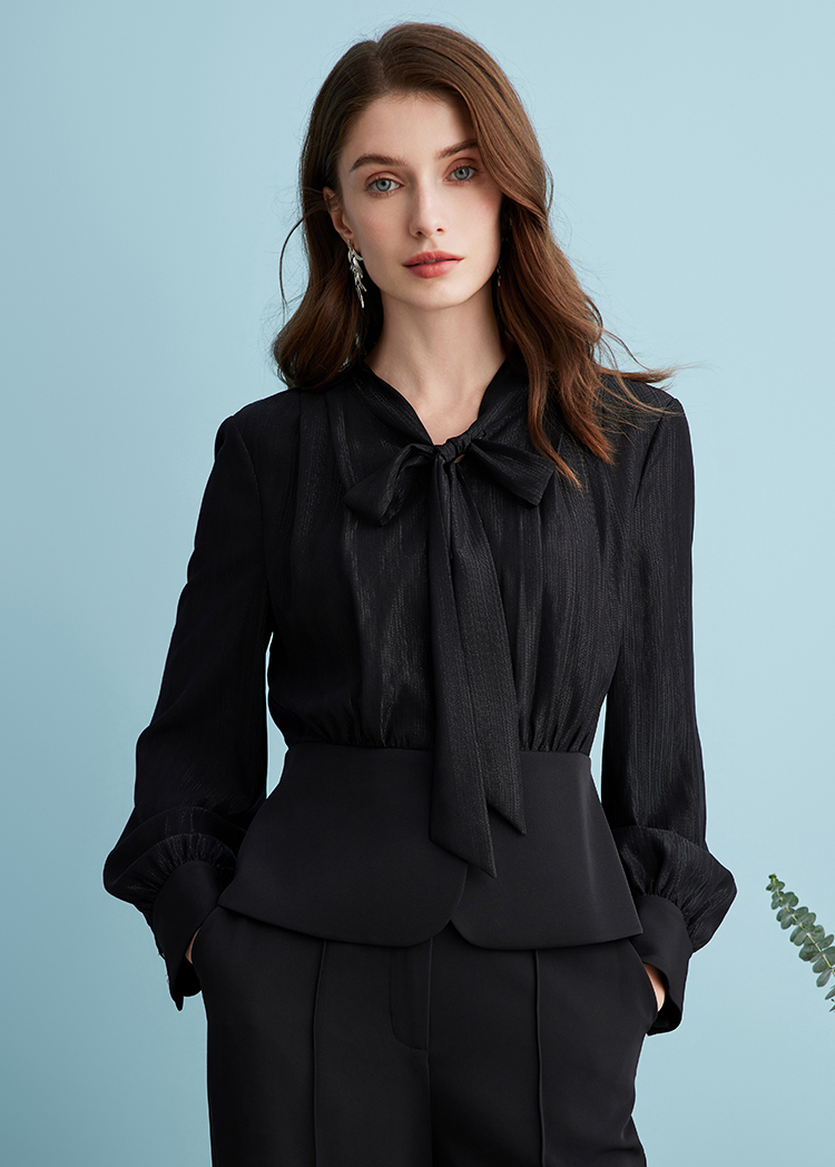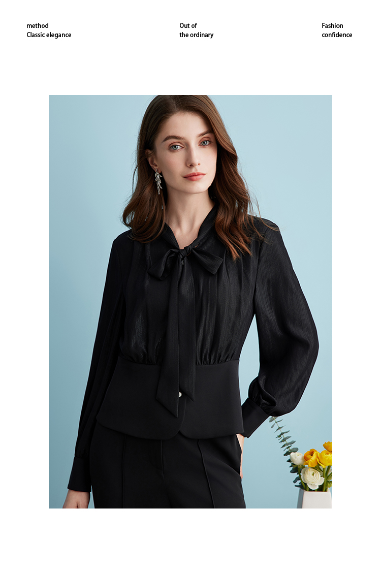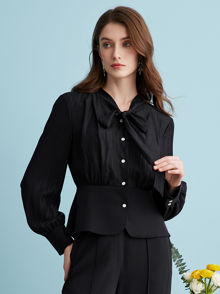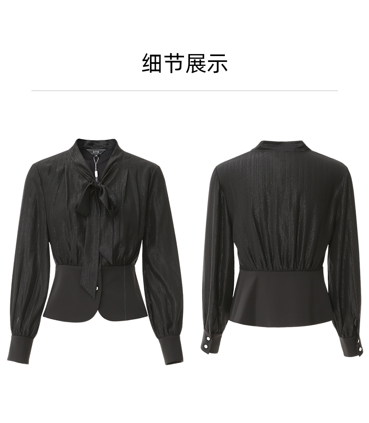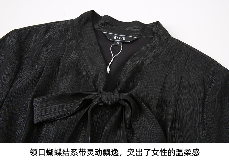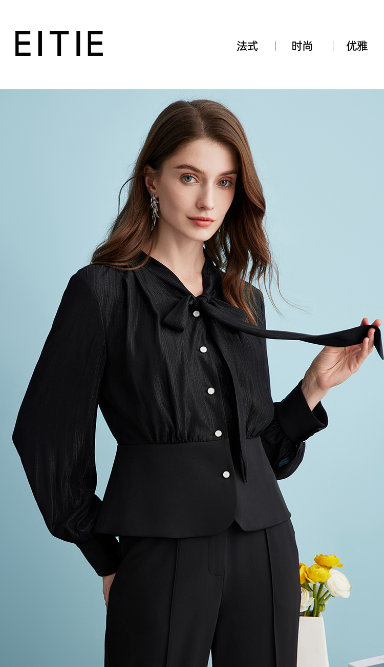 EITIE爱特爱春季新款温柔百搭显瘦飘带上衣A2409305
