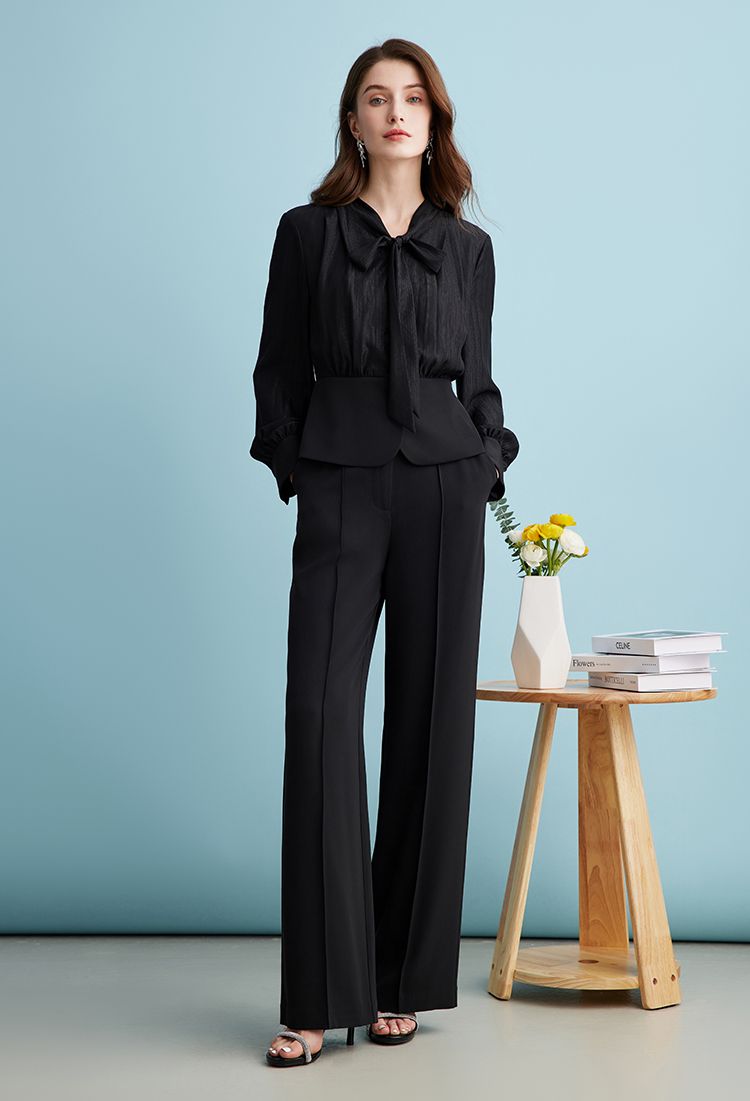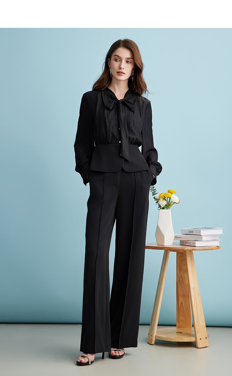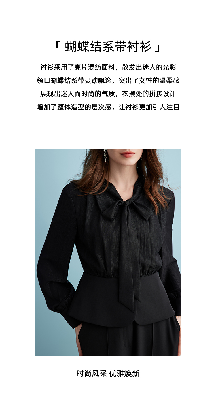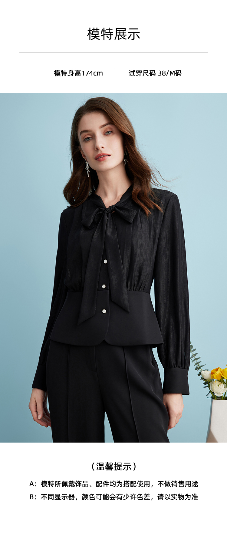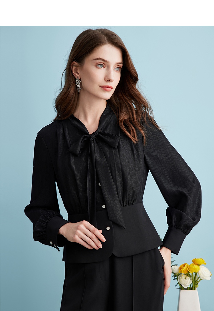 EITIE爱特爱春季新款温柔百搭显瘦飘带上衣A2409305