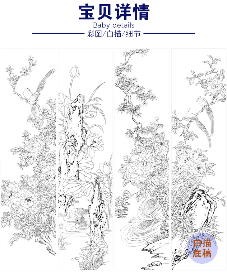 工笔花鸟白描底稿-花鸟四条屏-TP23