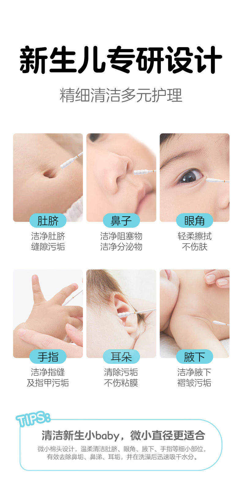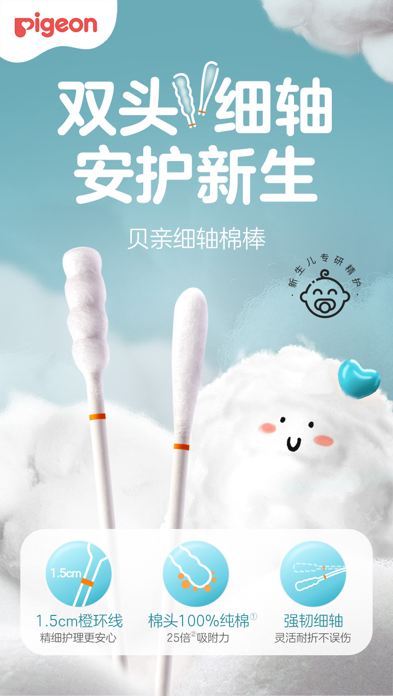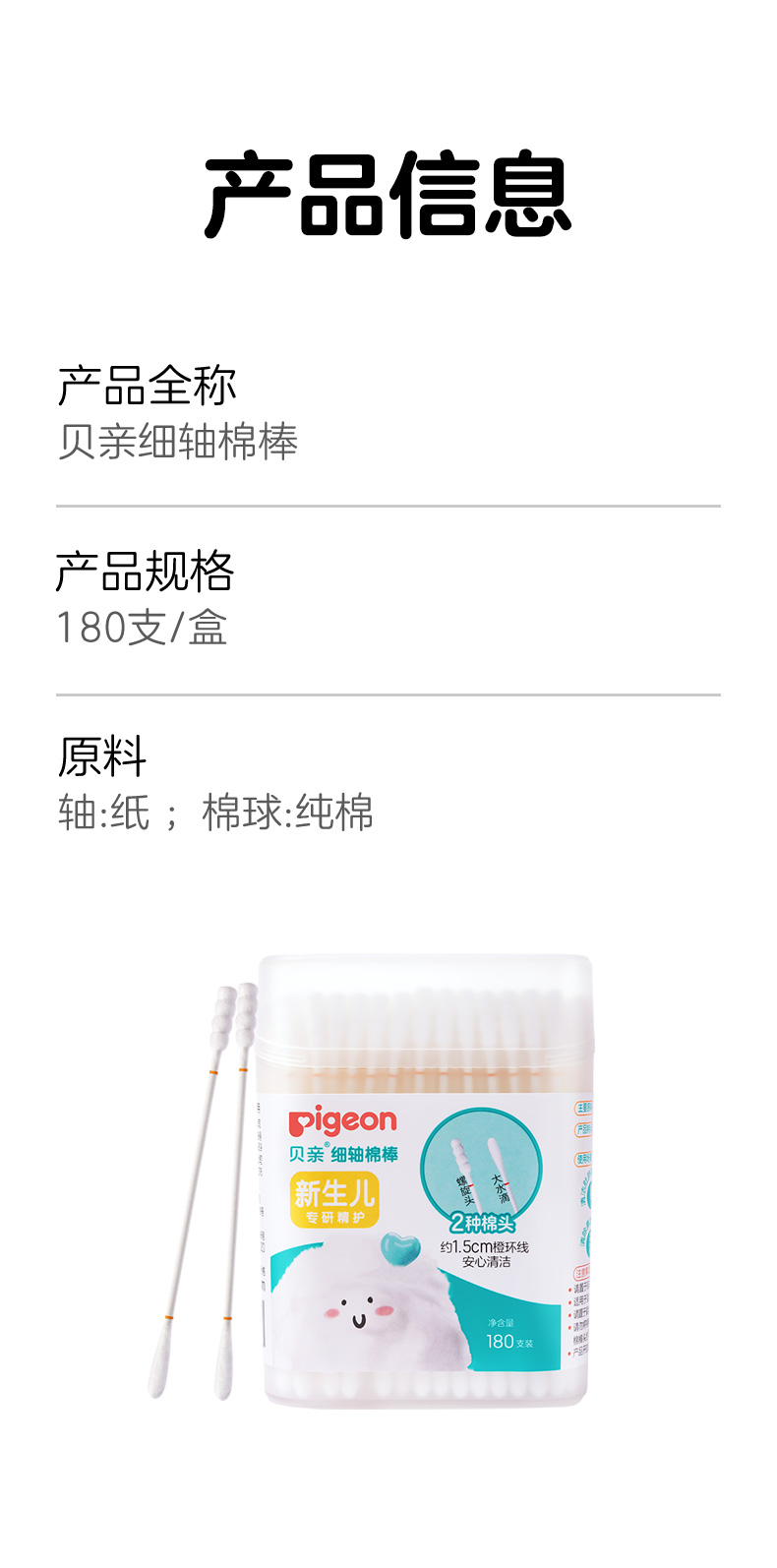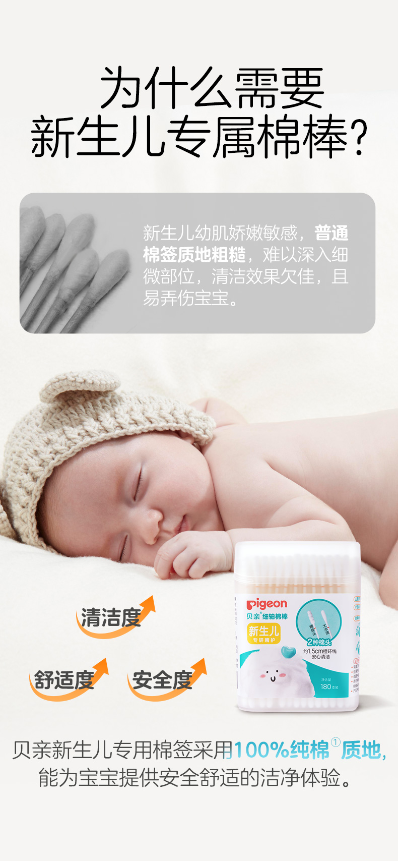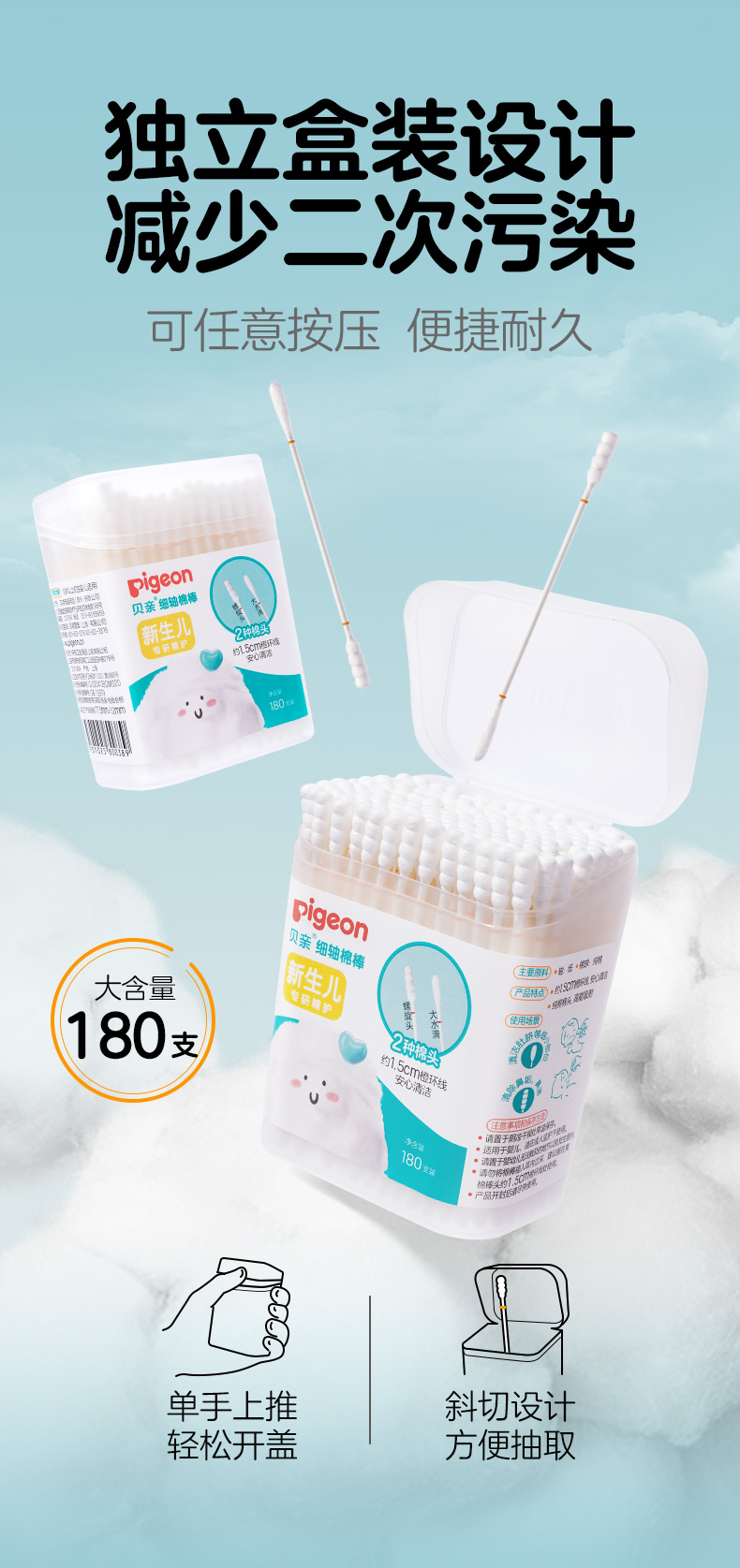 【孕味秒杀专属】 PIGEON/贝亲 婴儿无菌细轴棉棒棉签180支装