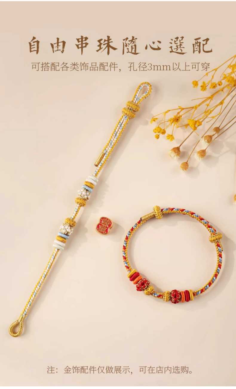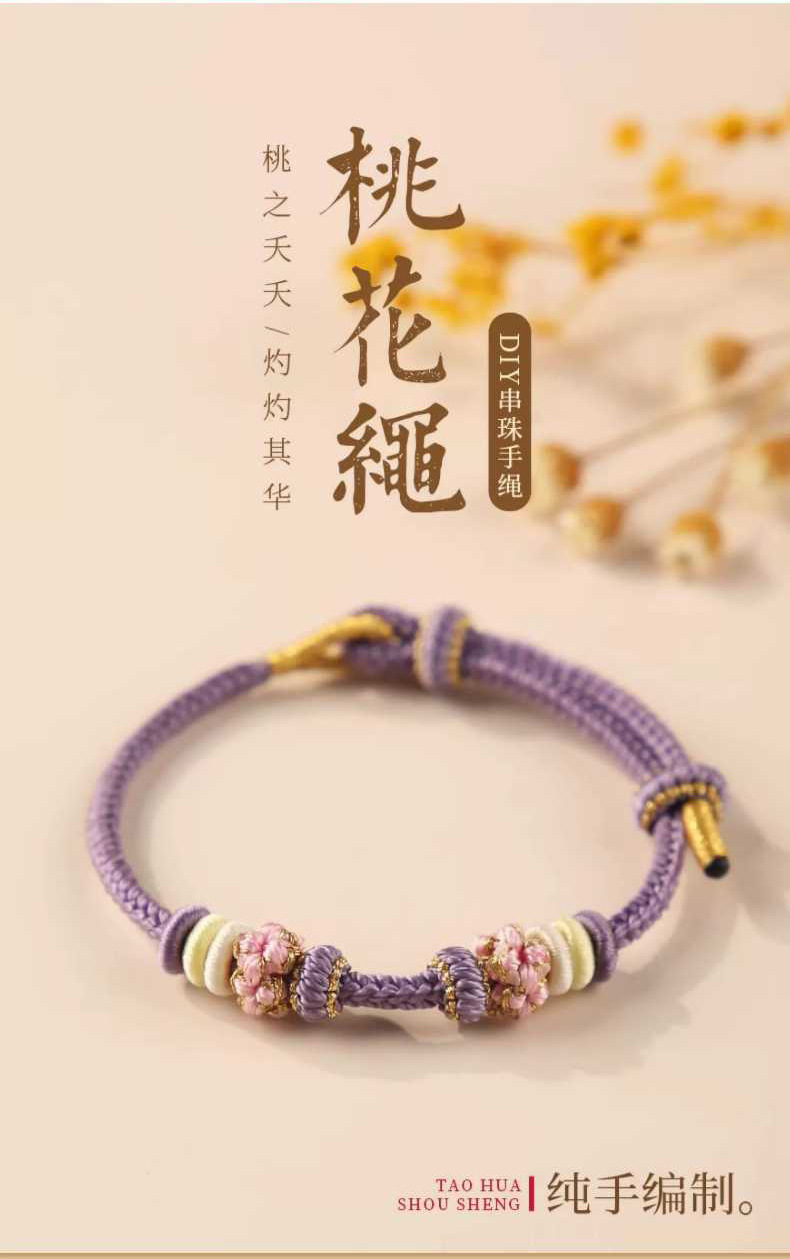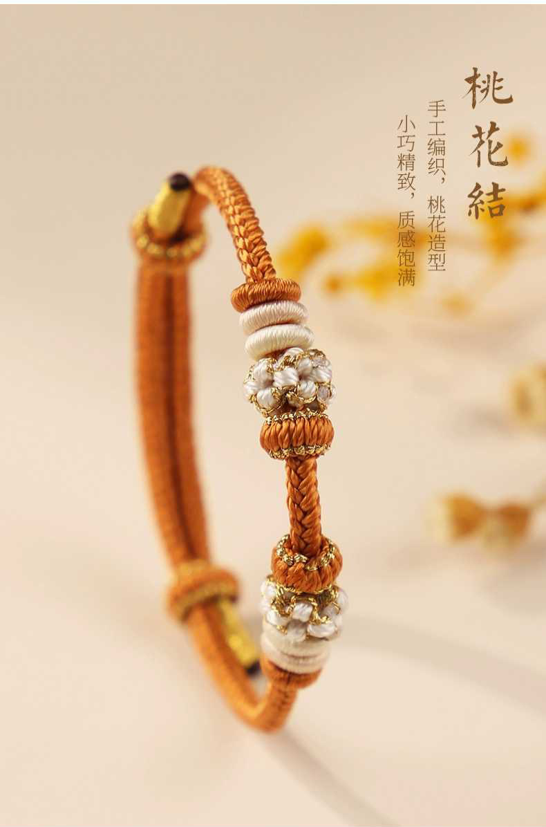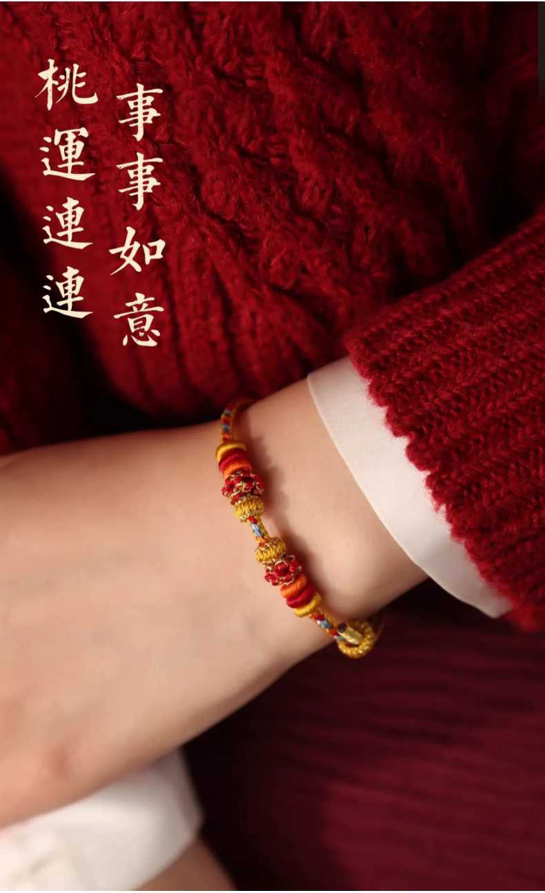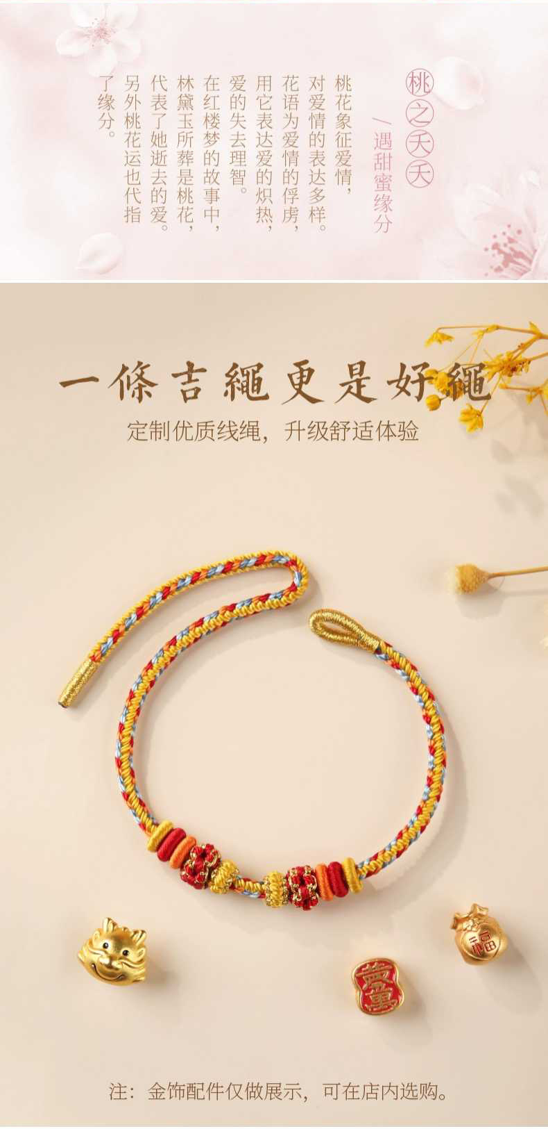 【桃之夭夭,自由串珠,随心搭配】diy手绳半成品可穿转运珠黄金 手工编绳桃花结手链 女款红绳编织绳-QQ