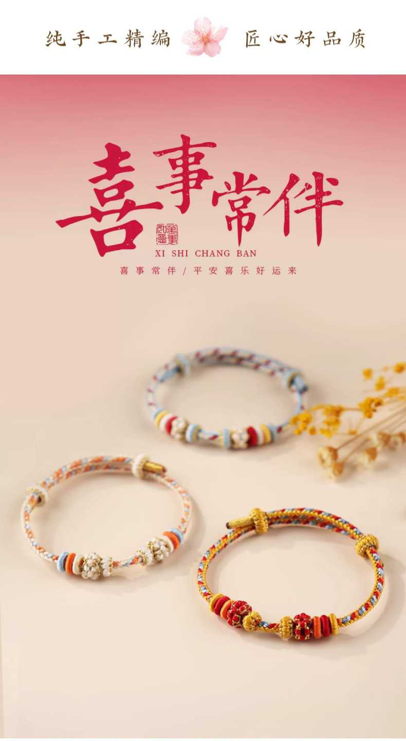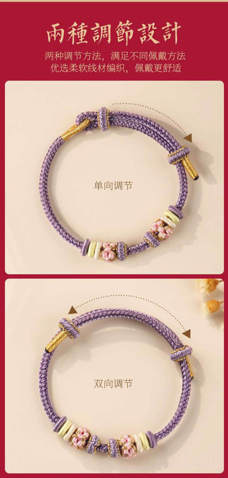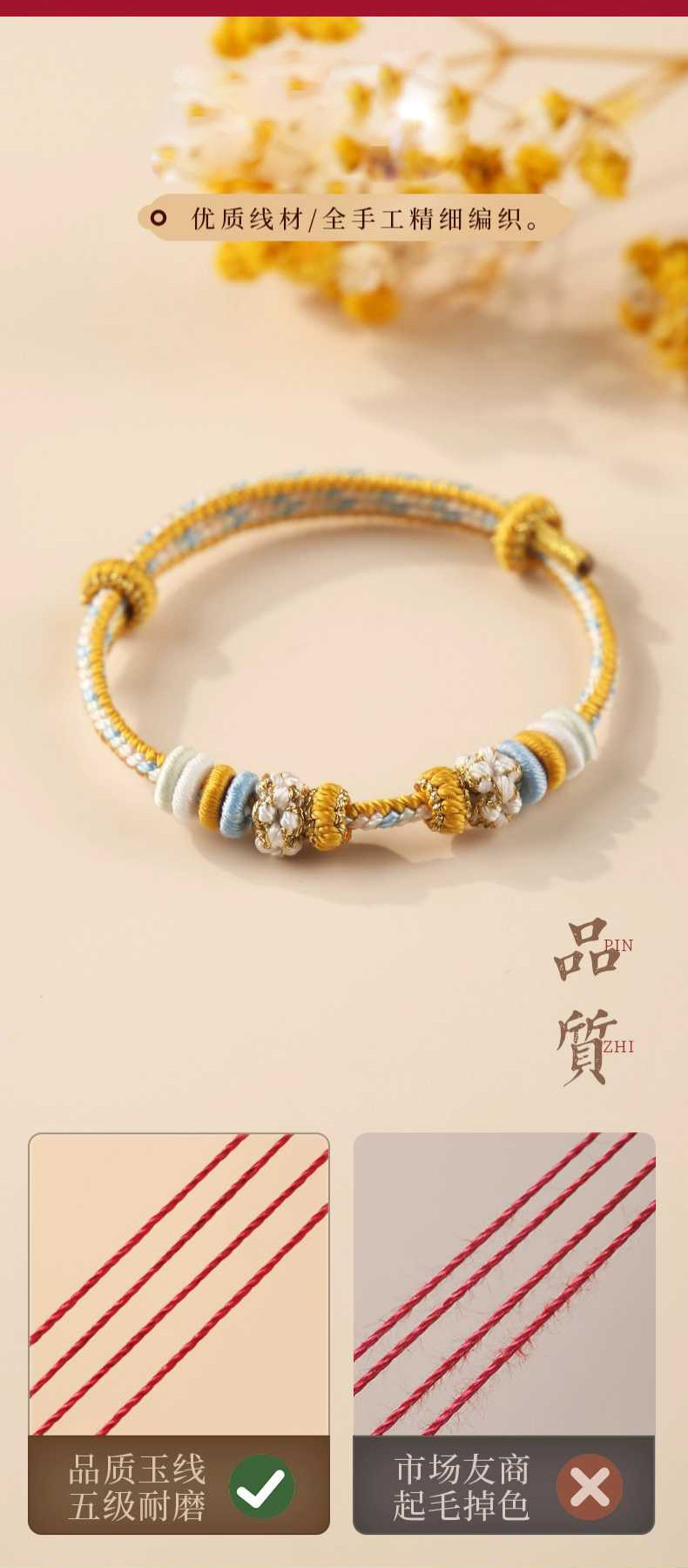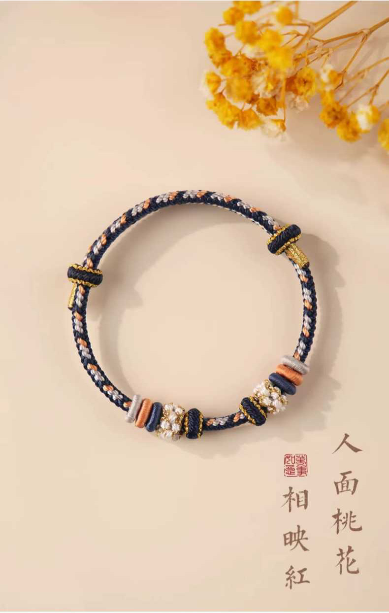 【桃之夭夭,自由串珠,随心搭配】diy手绳半成品可穿转运珠黄金 手工编绳桃花结手链 女款红绳编织绳-QQ