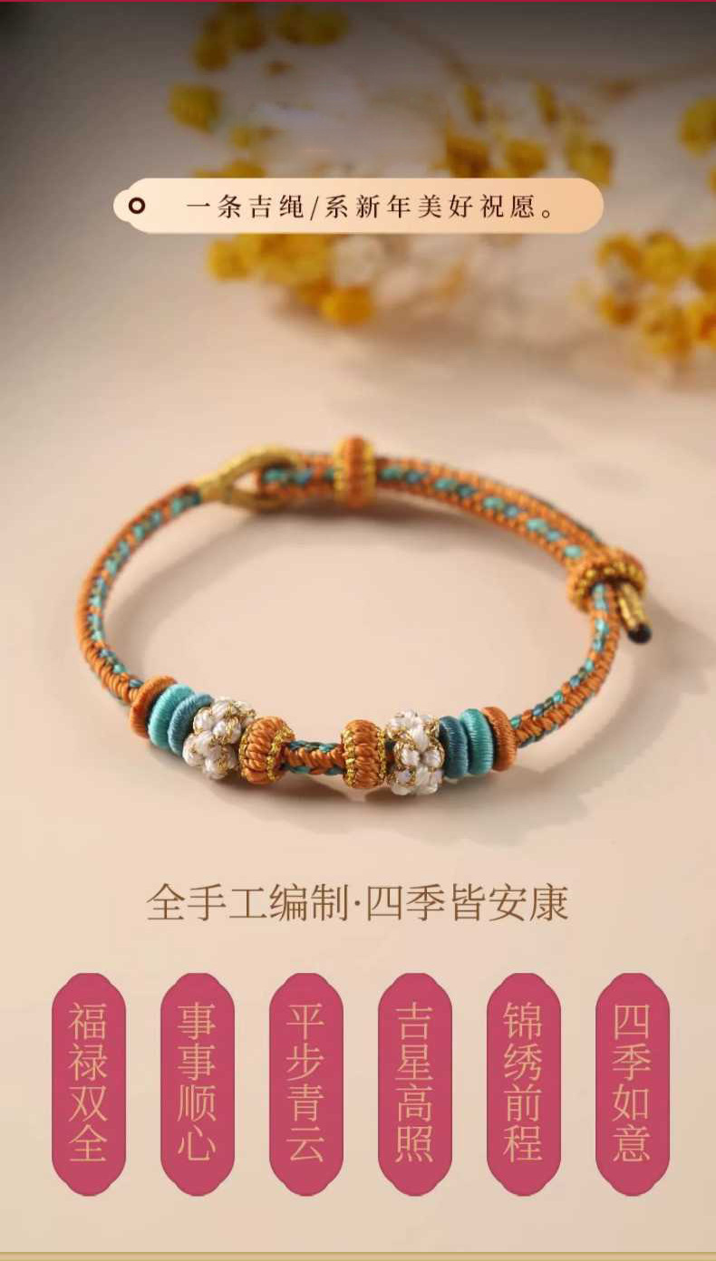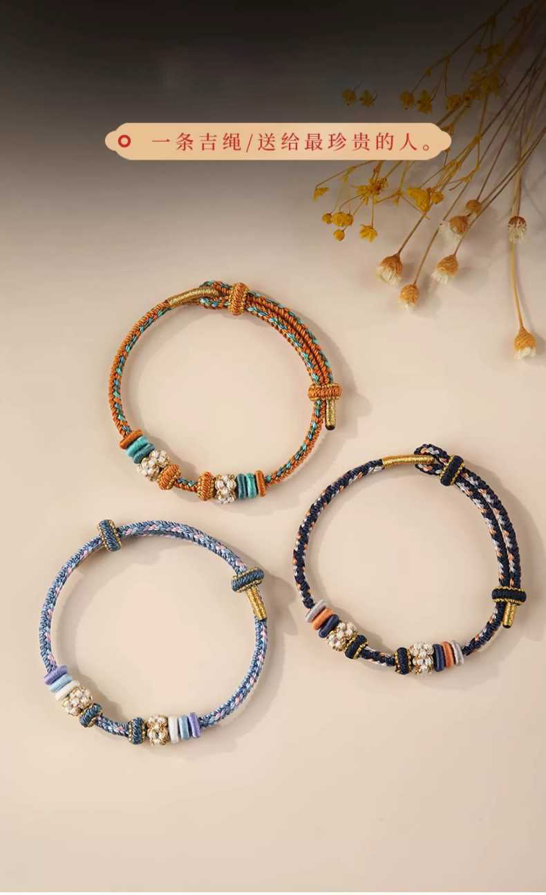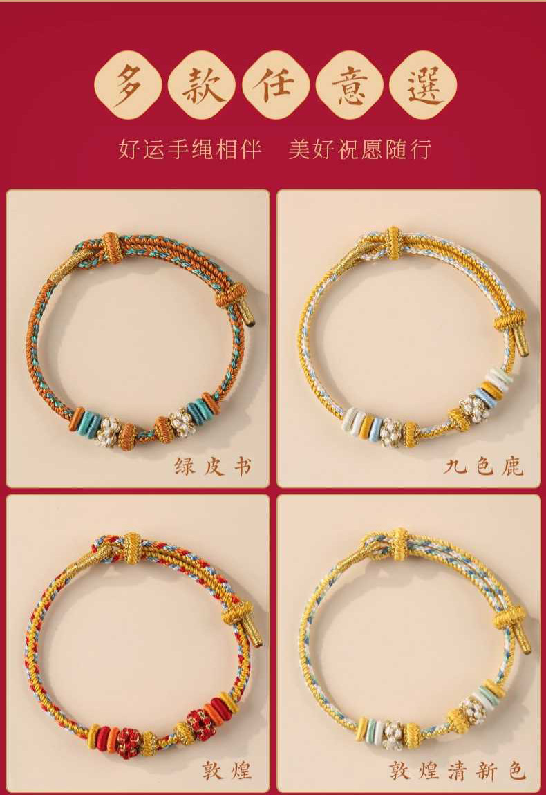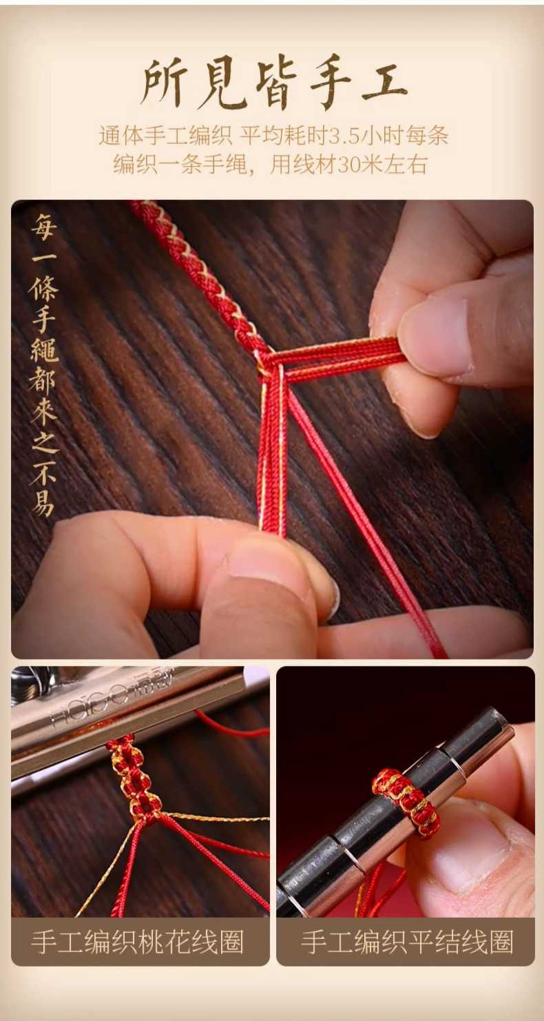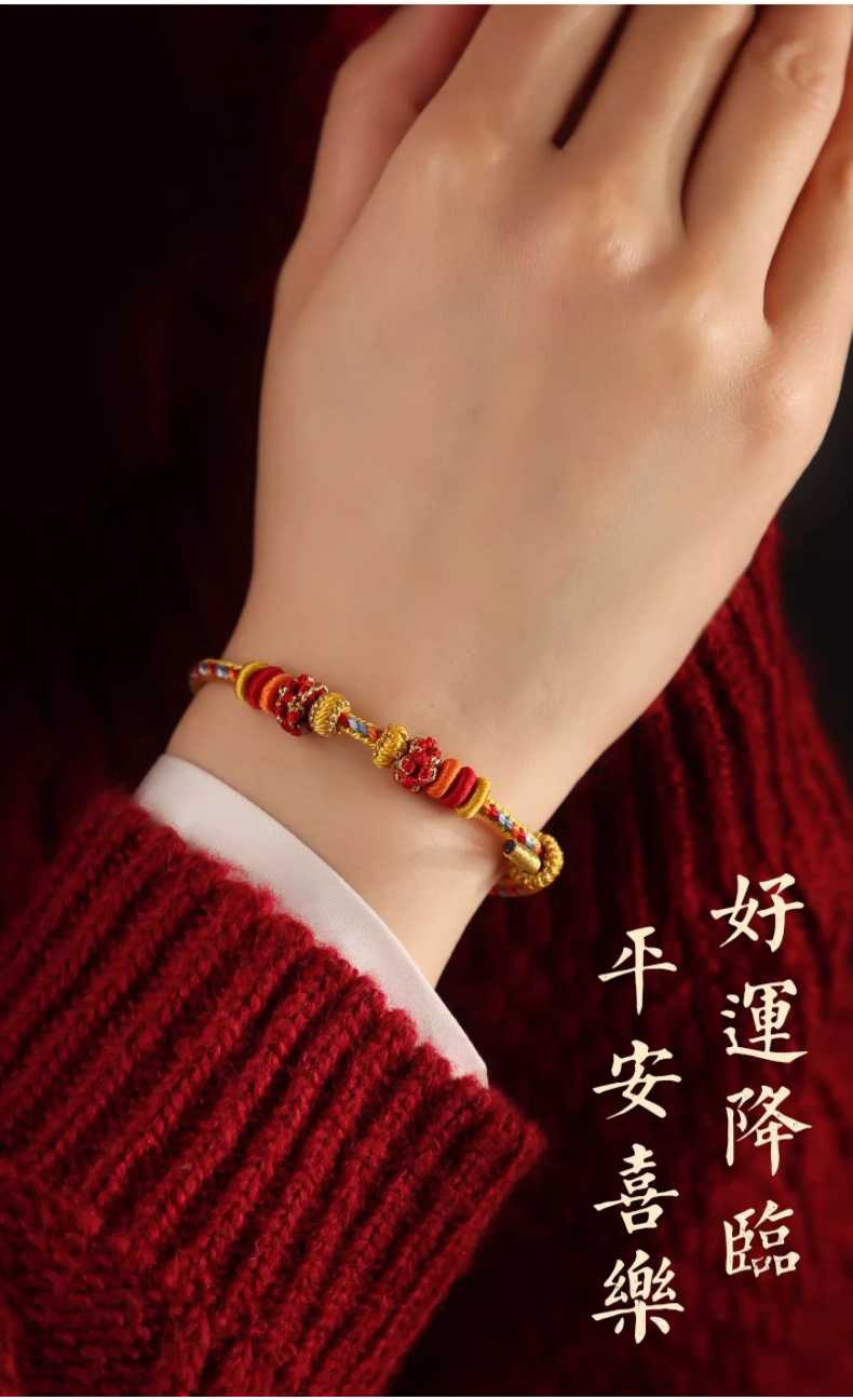 【桃之夭夭,自由串珠,随心搭配】diy手绳半成品可穿转运珠黄金 手工编绳桃花结手链 女款红绳编织绳-QQ