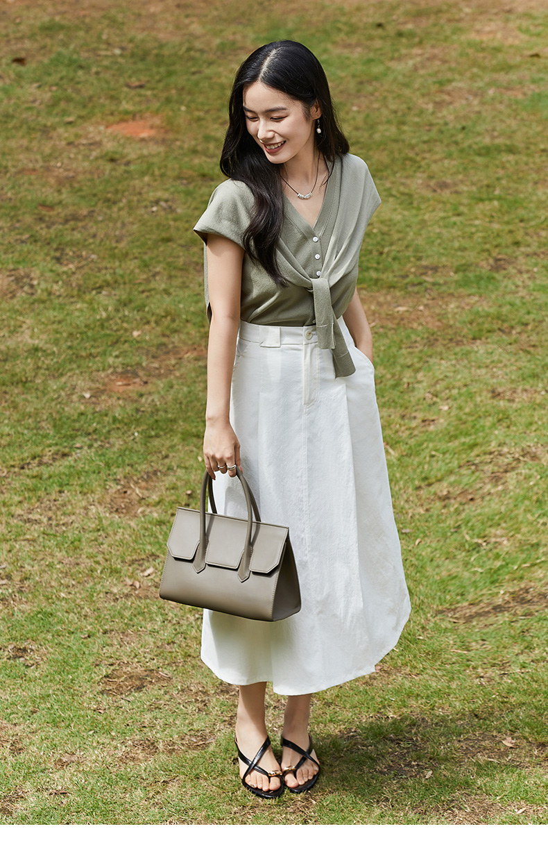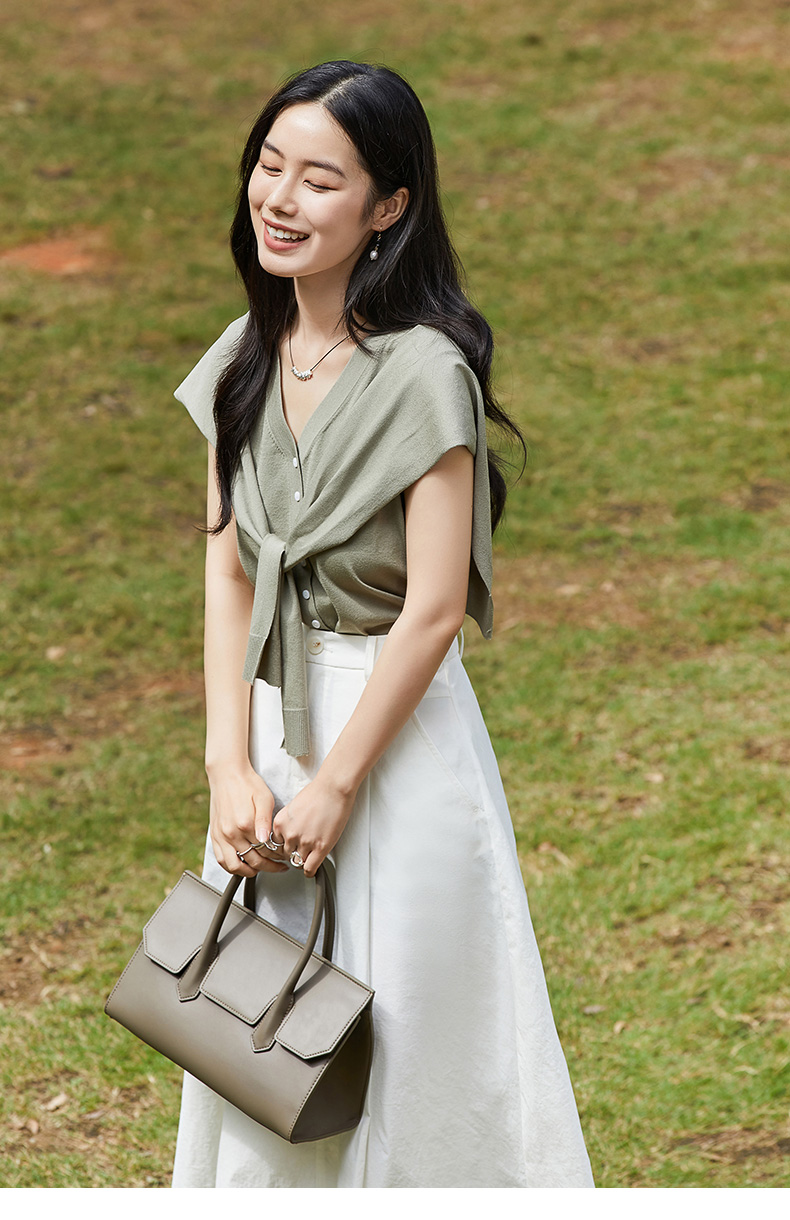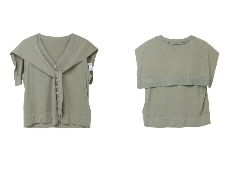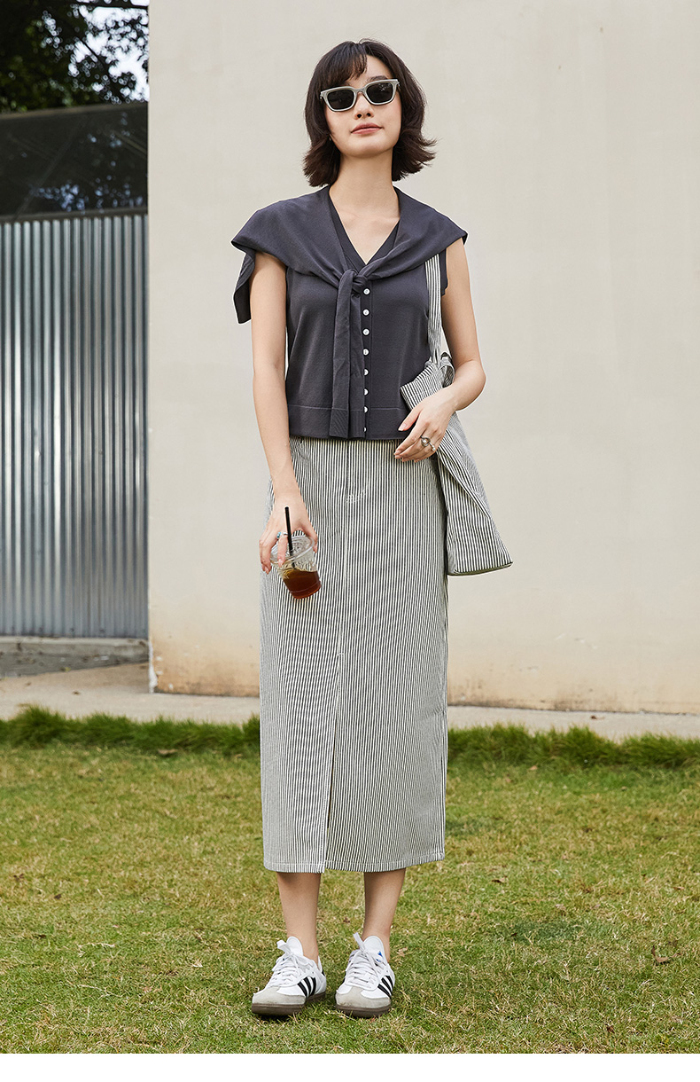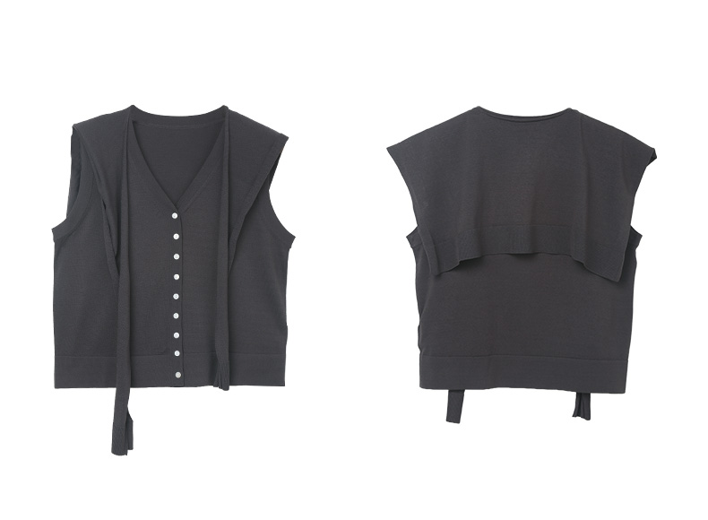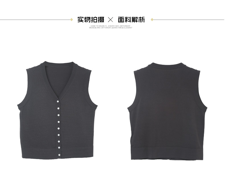 松弛感拉满!深灰色 V 领单排扣海军领系带针织马甲 夏季宽松显瘦通勤叠穿背心