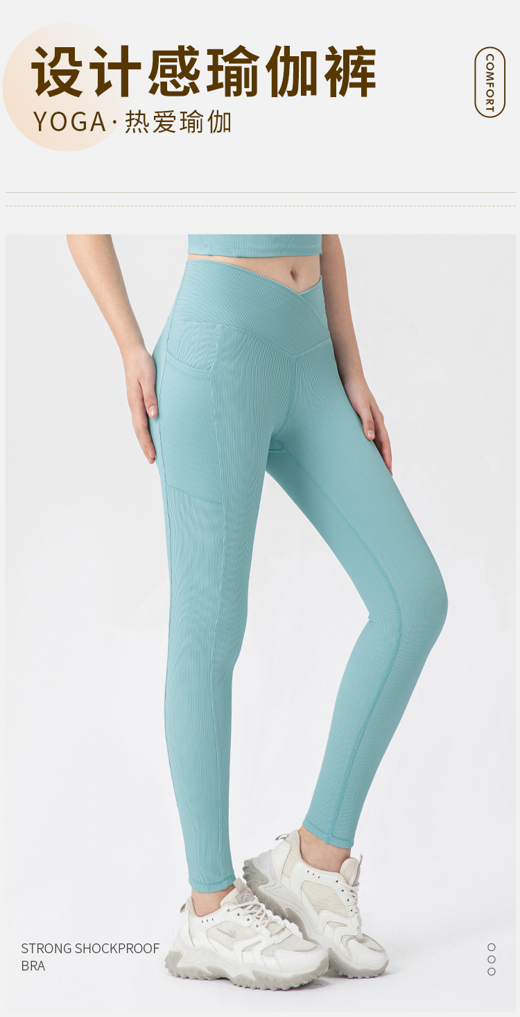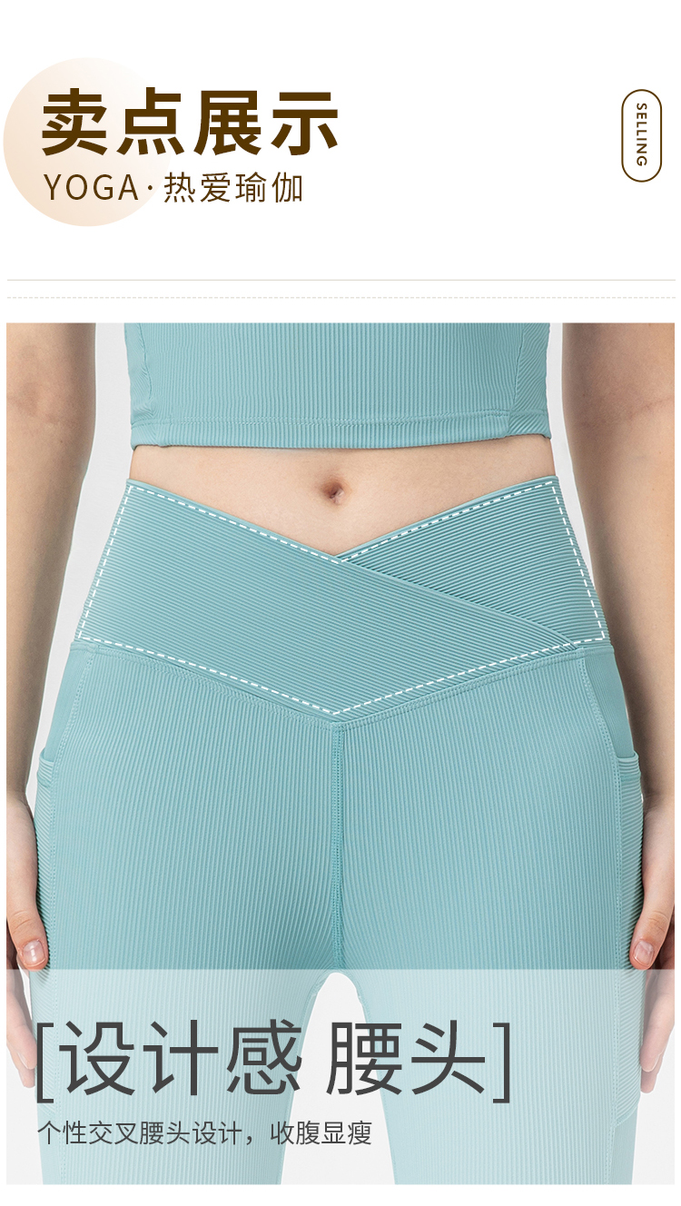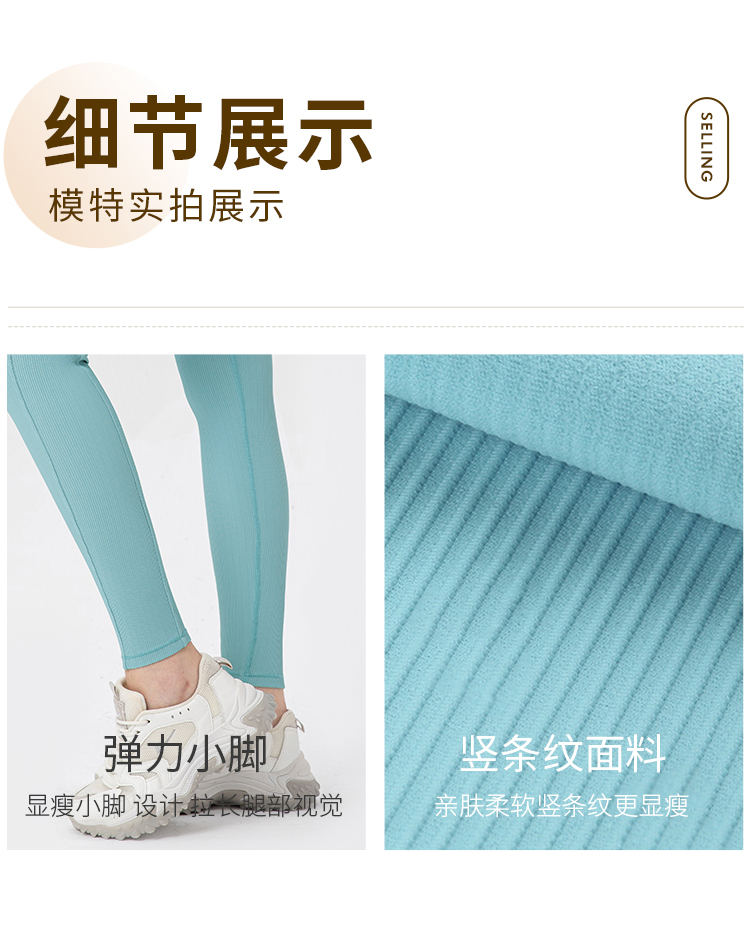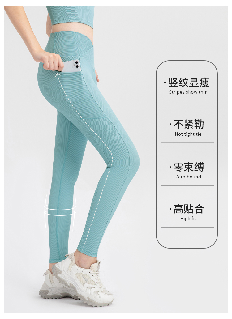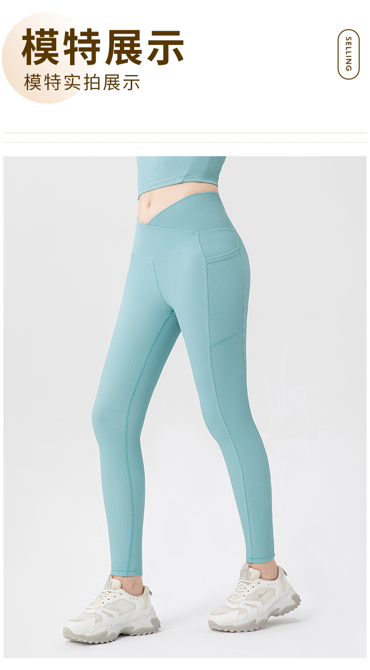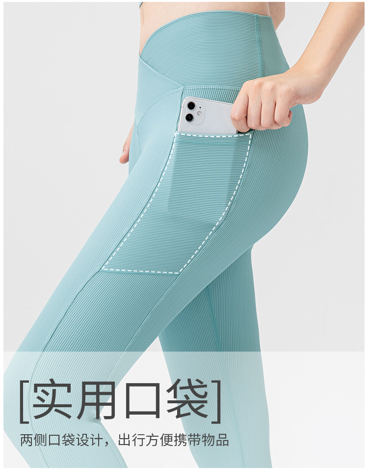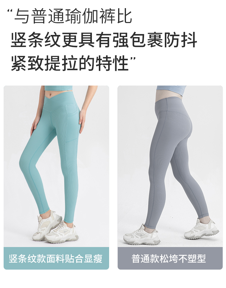 跃牌【欲动春风】系列坑条纹显瘦高腰紧身交叉健身跑步运动长裤22377此款为欧码,建议拍小一码!