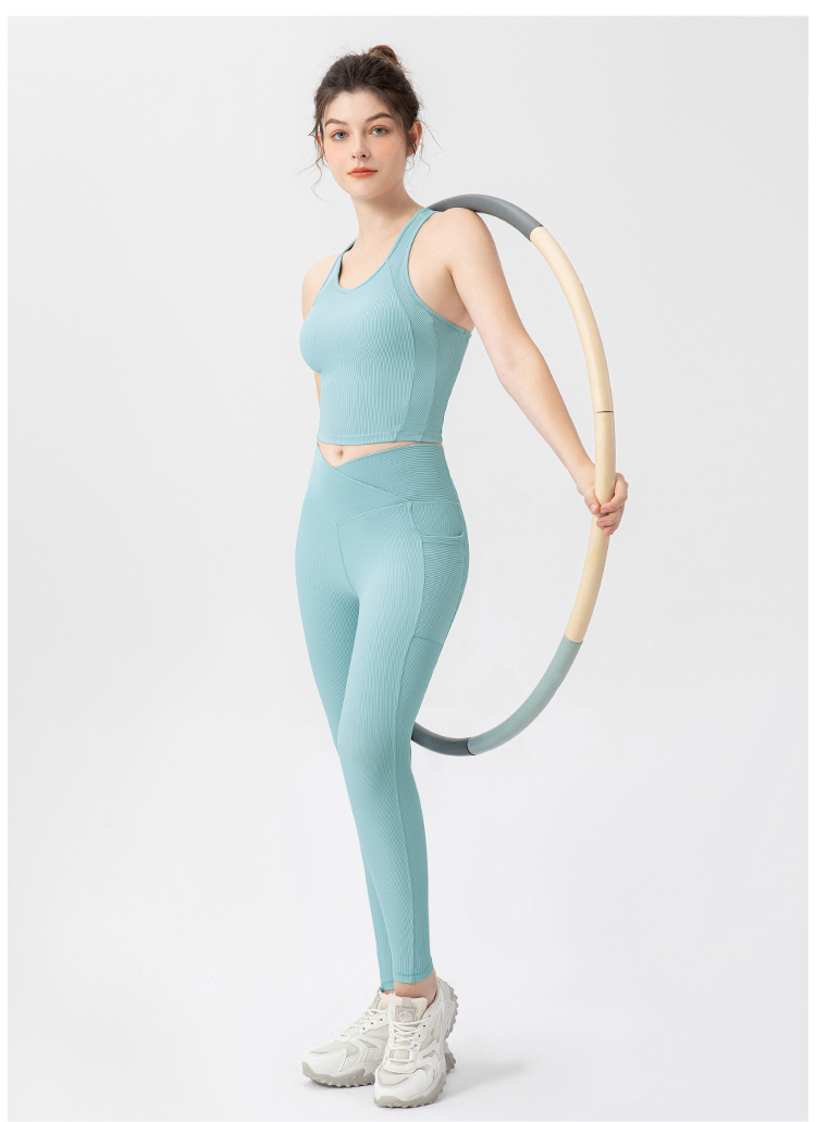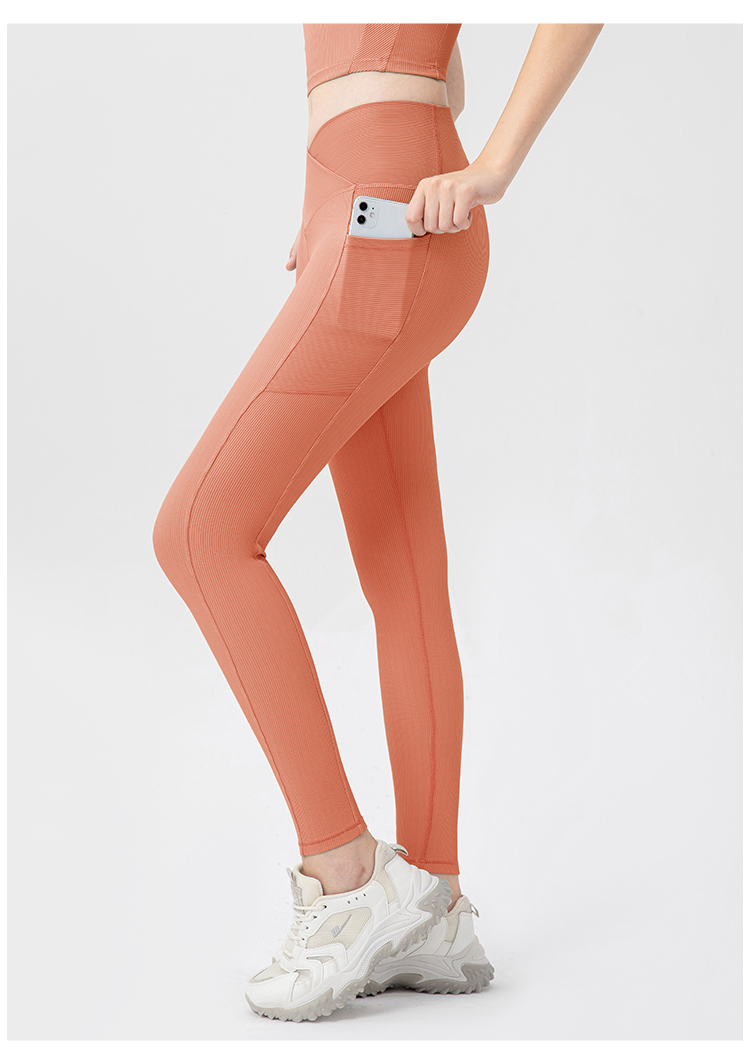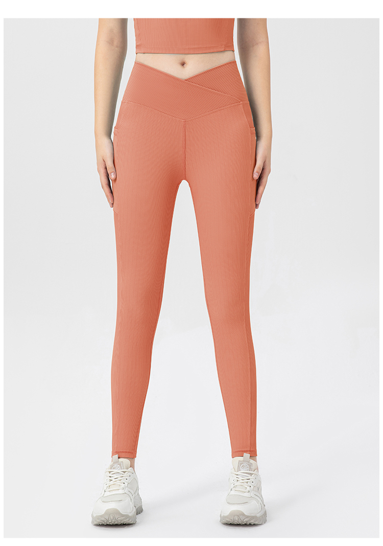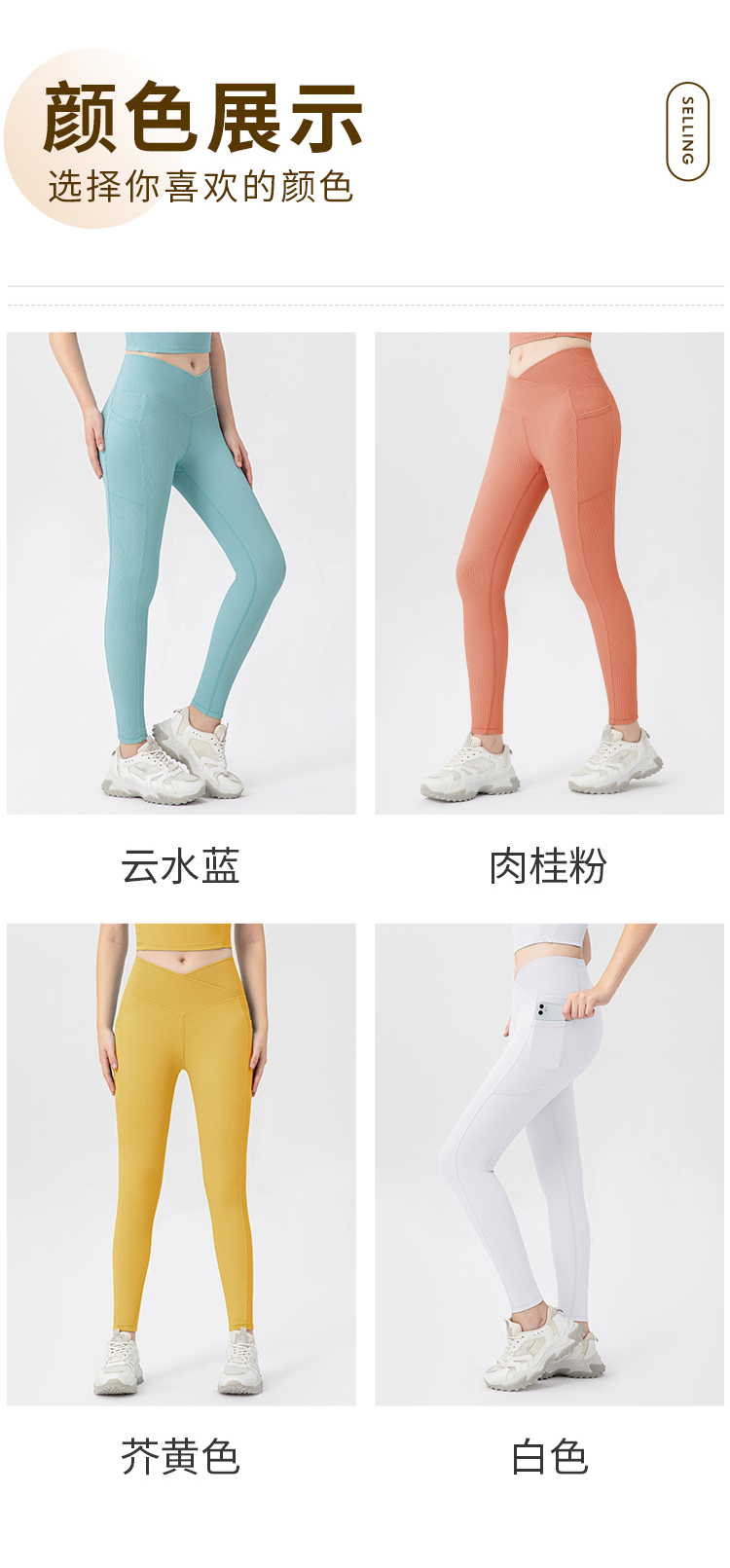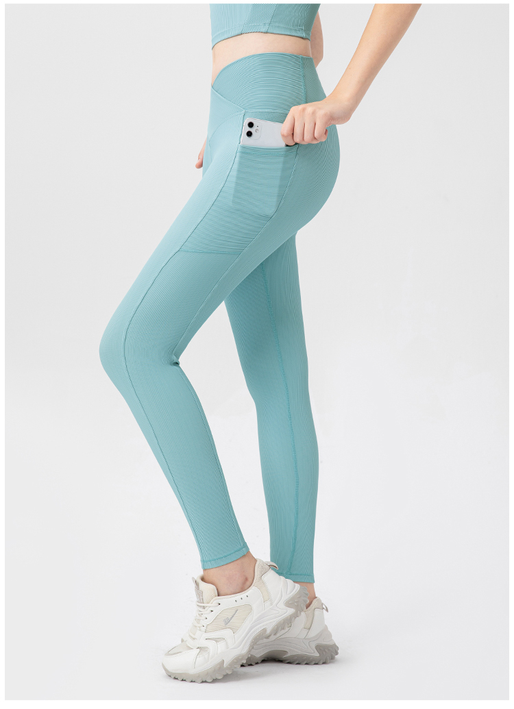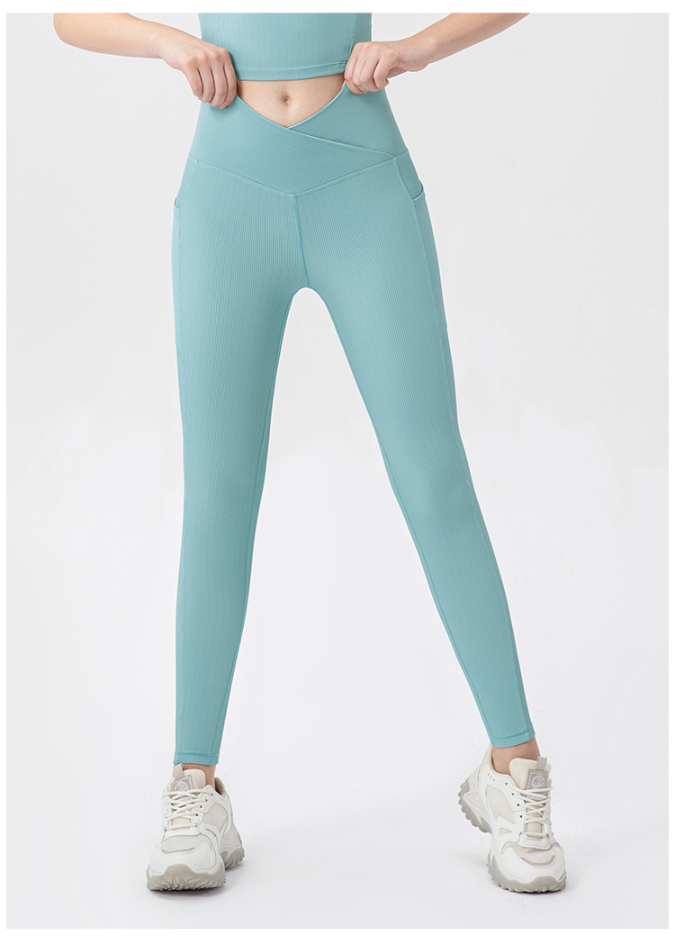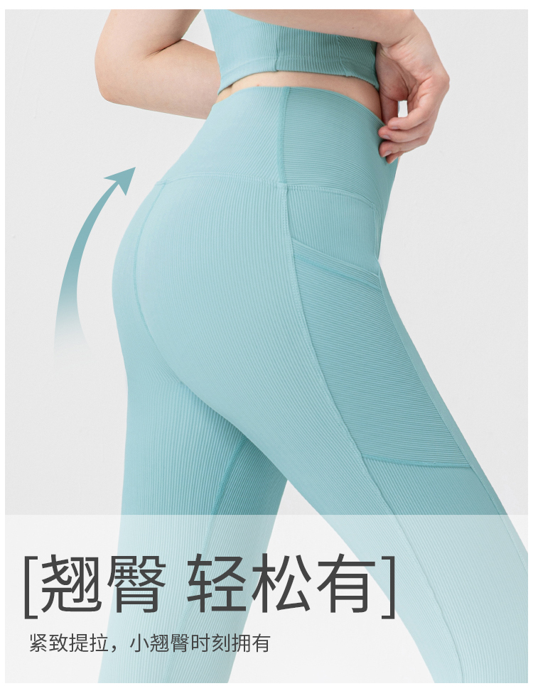 跃牌【欲动春风】系列坑条纹显瘦高腰紧身交叉健身跑步运动长裤22377此款为欧码,建议拍小一码!