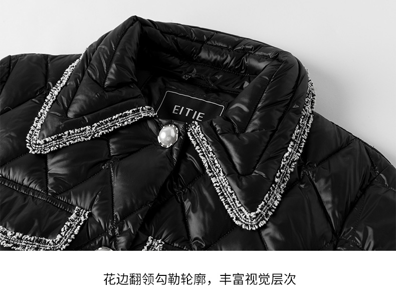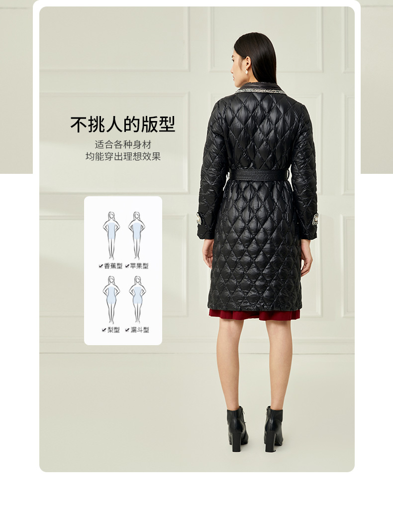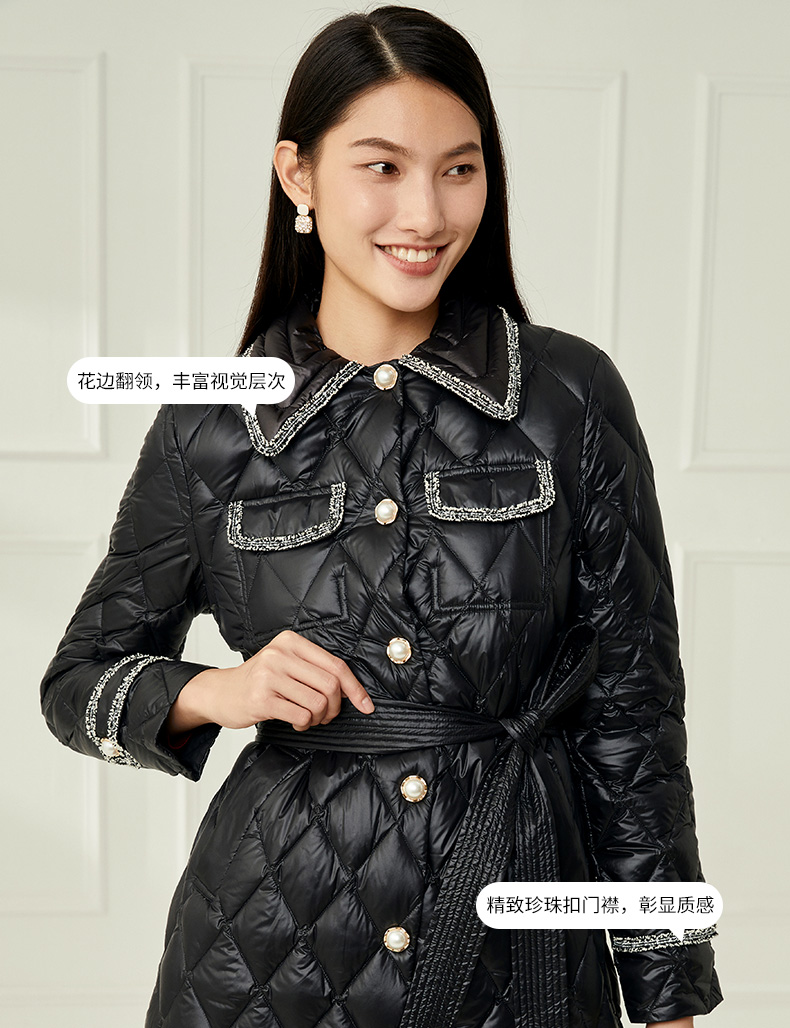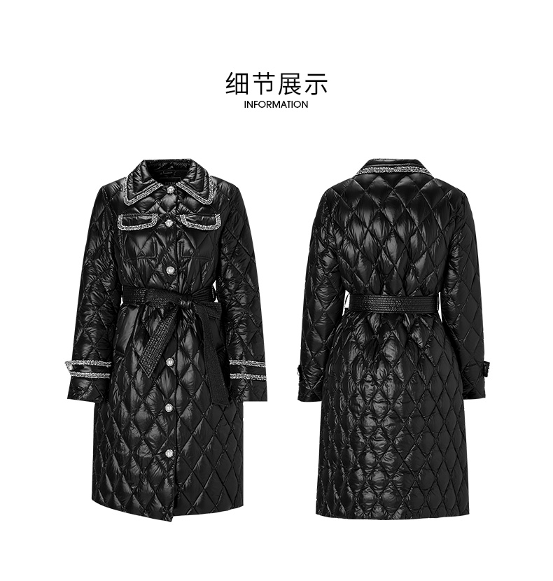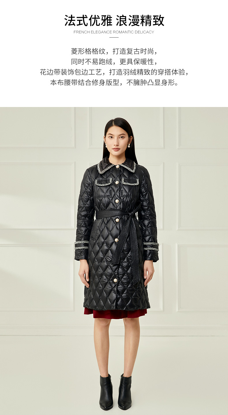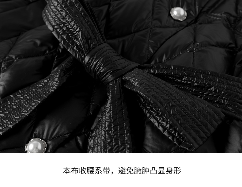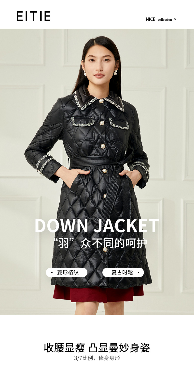 EITIE爱特爱冬季新款百搭轻薄收腰系带白鸭绒羽绒服女中长款外套6811503