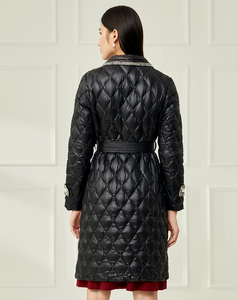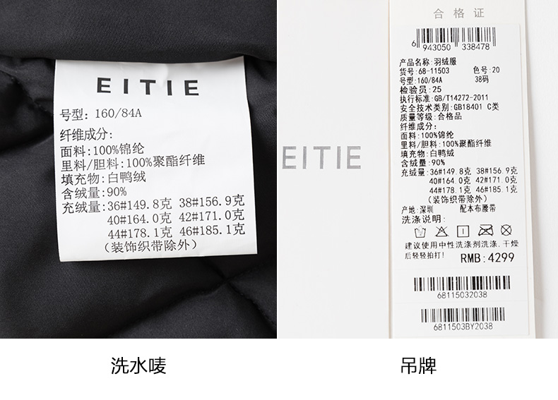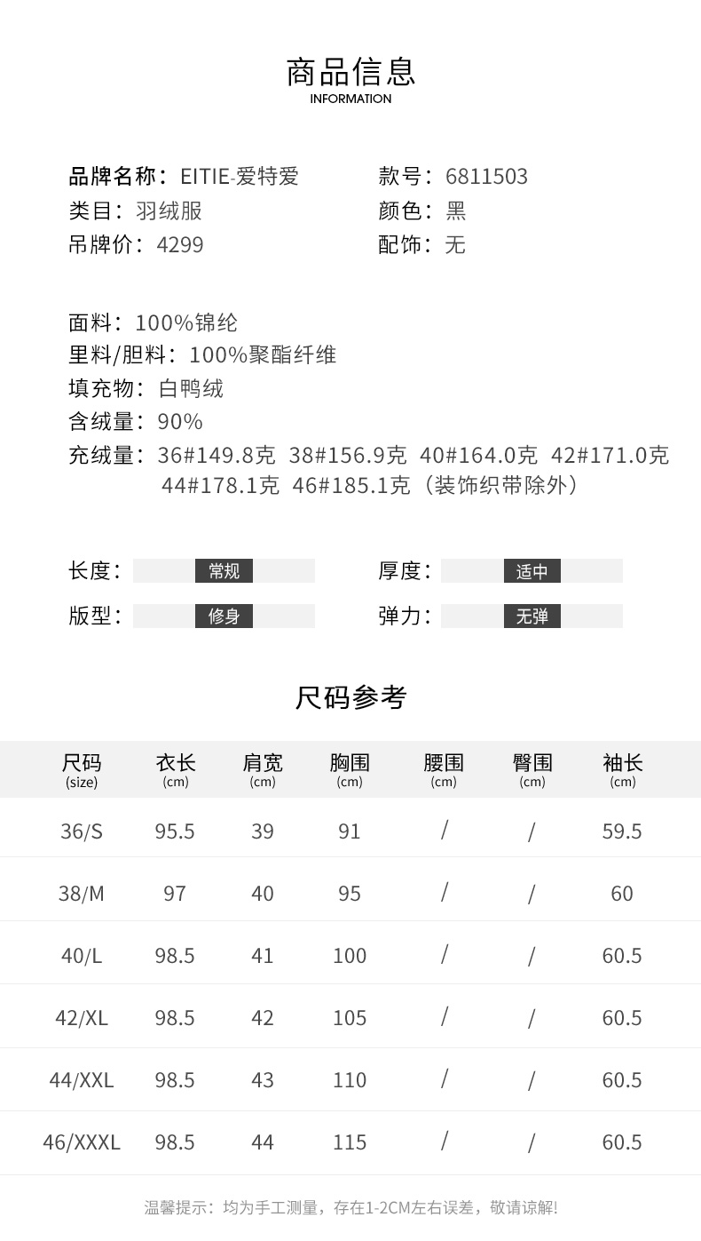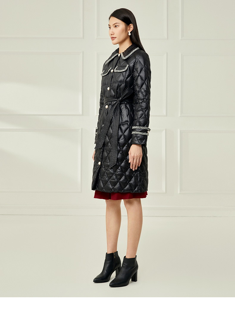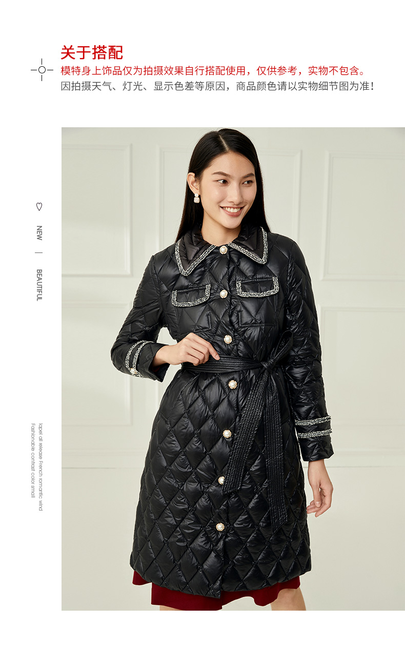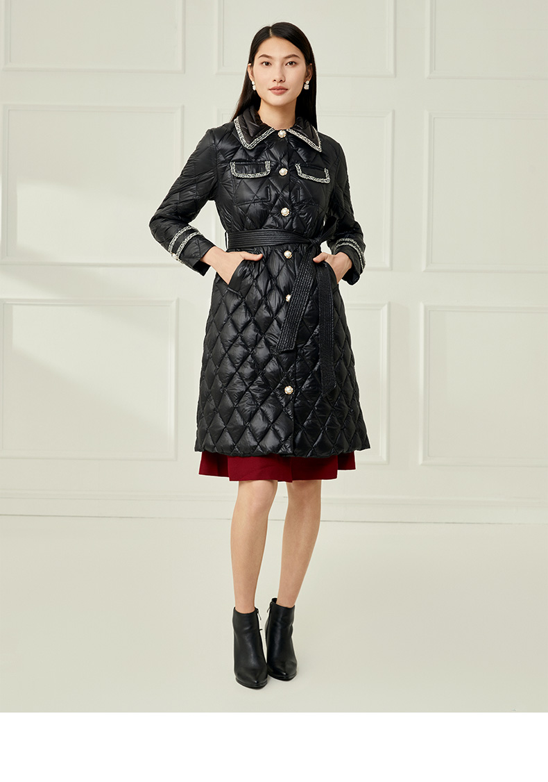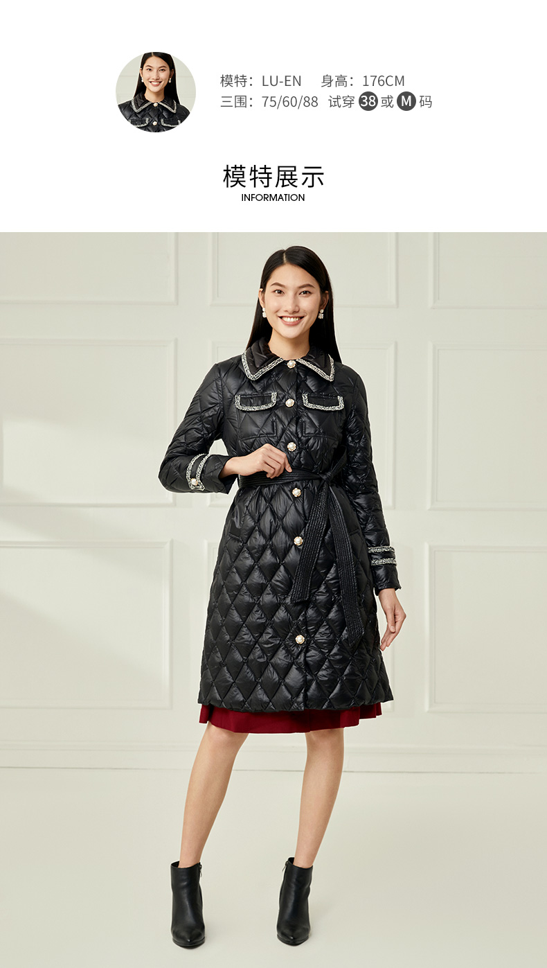 EITIE爱特爱冬季新款百搭轻薄收腰系带白鸭绒羽绒服女中长款外套6811503