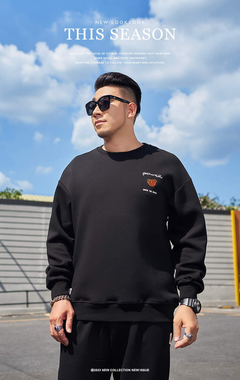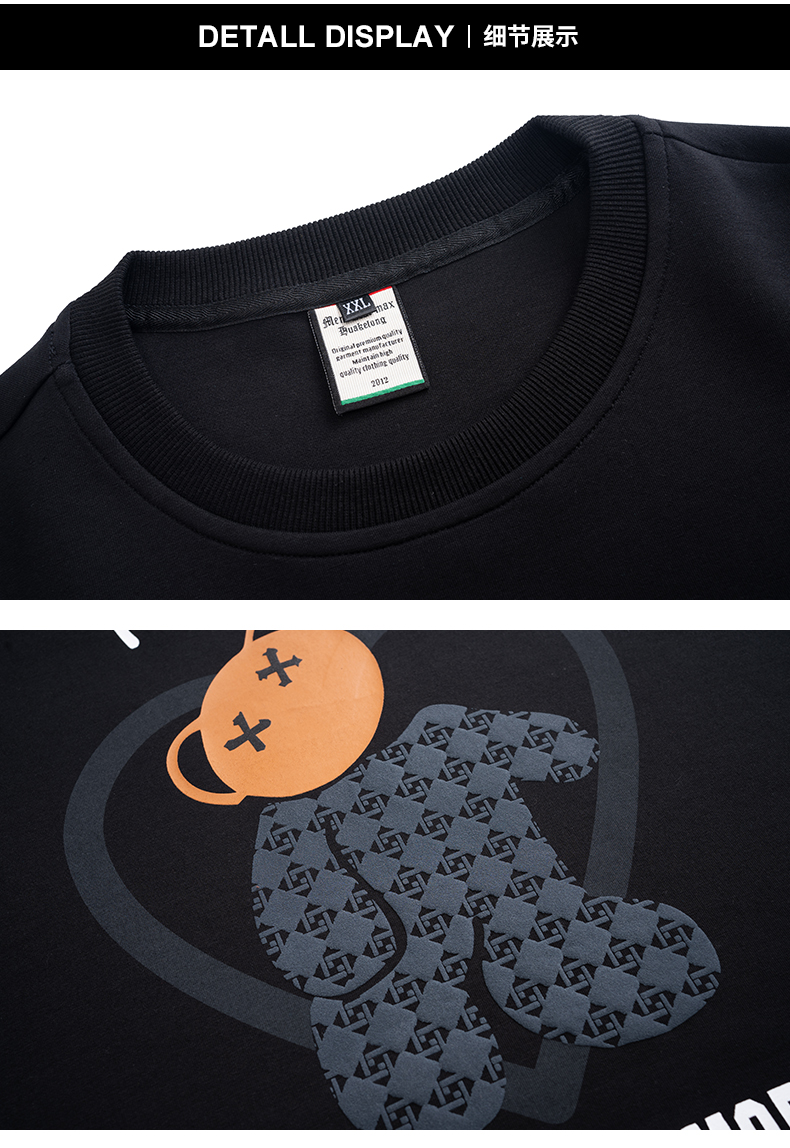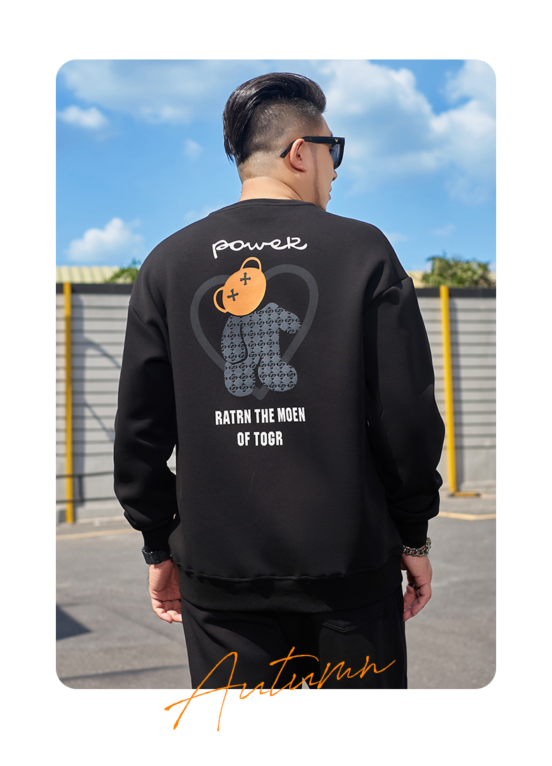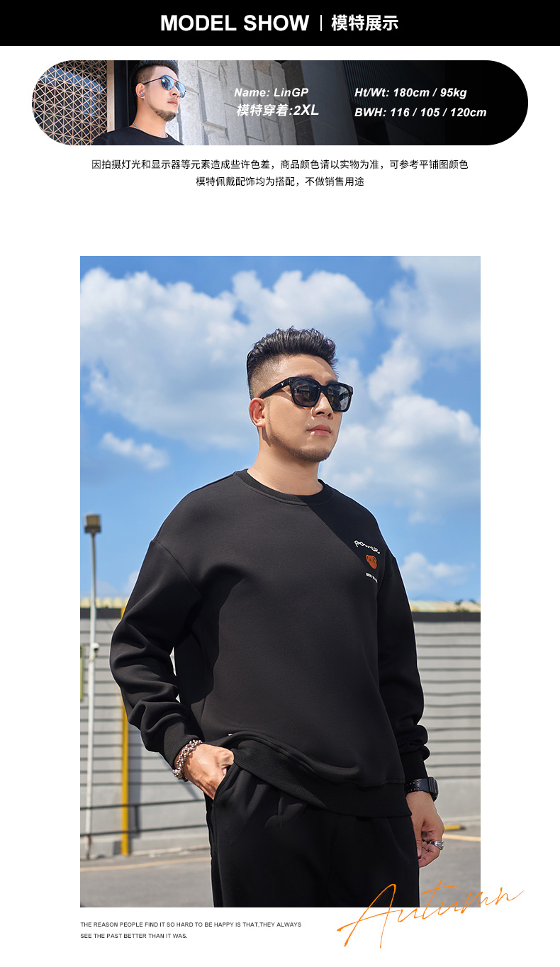【新款DMH】大依优型大码圆领印花卫衣长袖弹力加肥加大胖子上衣男士T恤肥佬打底男装