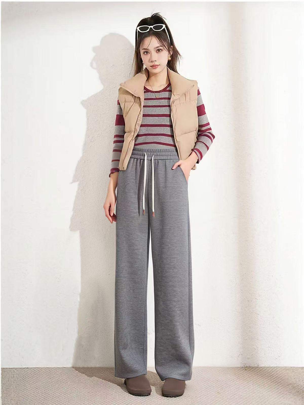 (NO退)613 4-3 春季气质显瘦休闲百搭阔腿直筒裤-喜出
