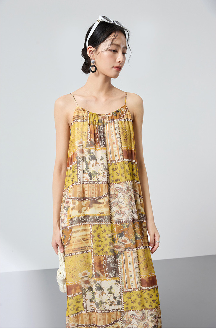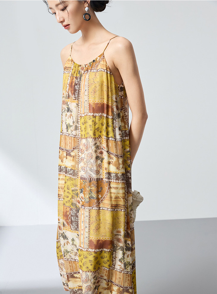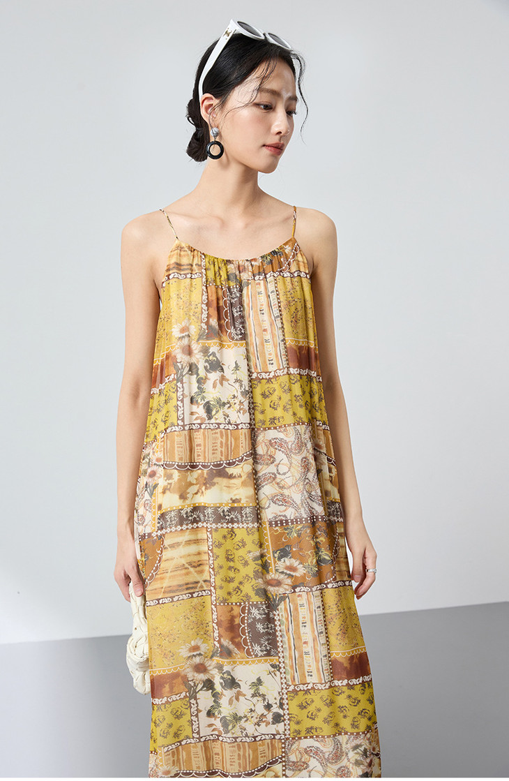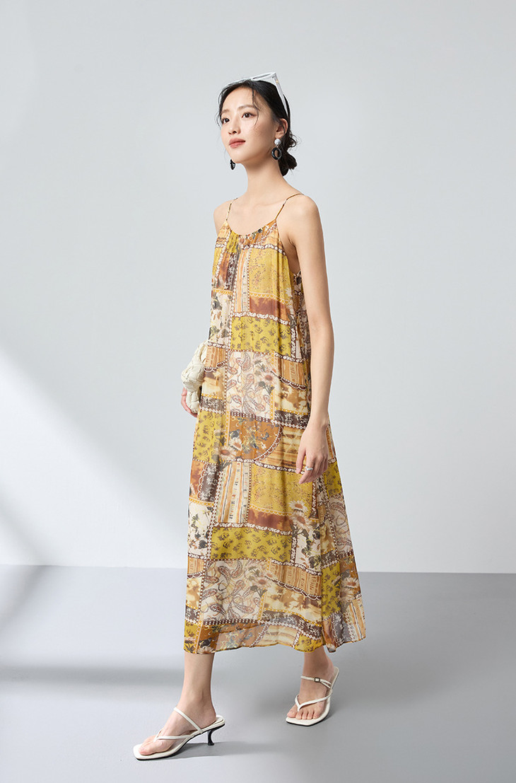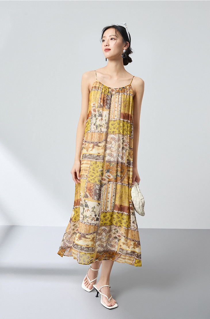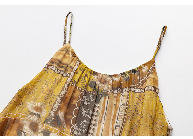 100%桑蚕丝波西米亚度假真丝裙,吊带显瘦民族风连衣SM-1682591631