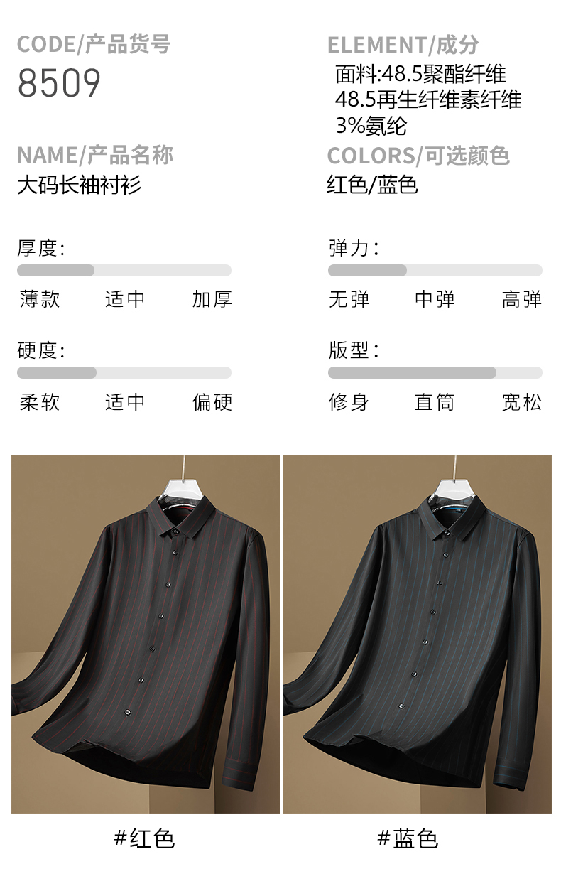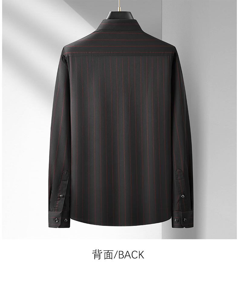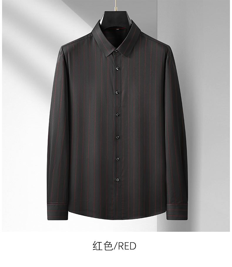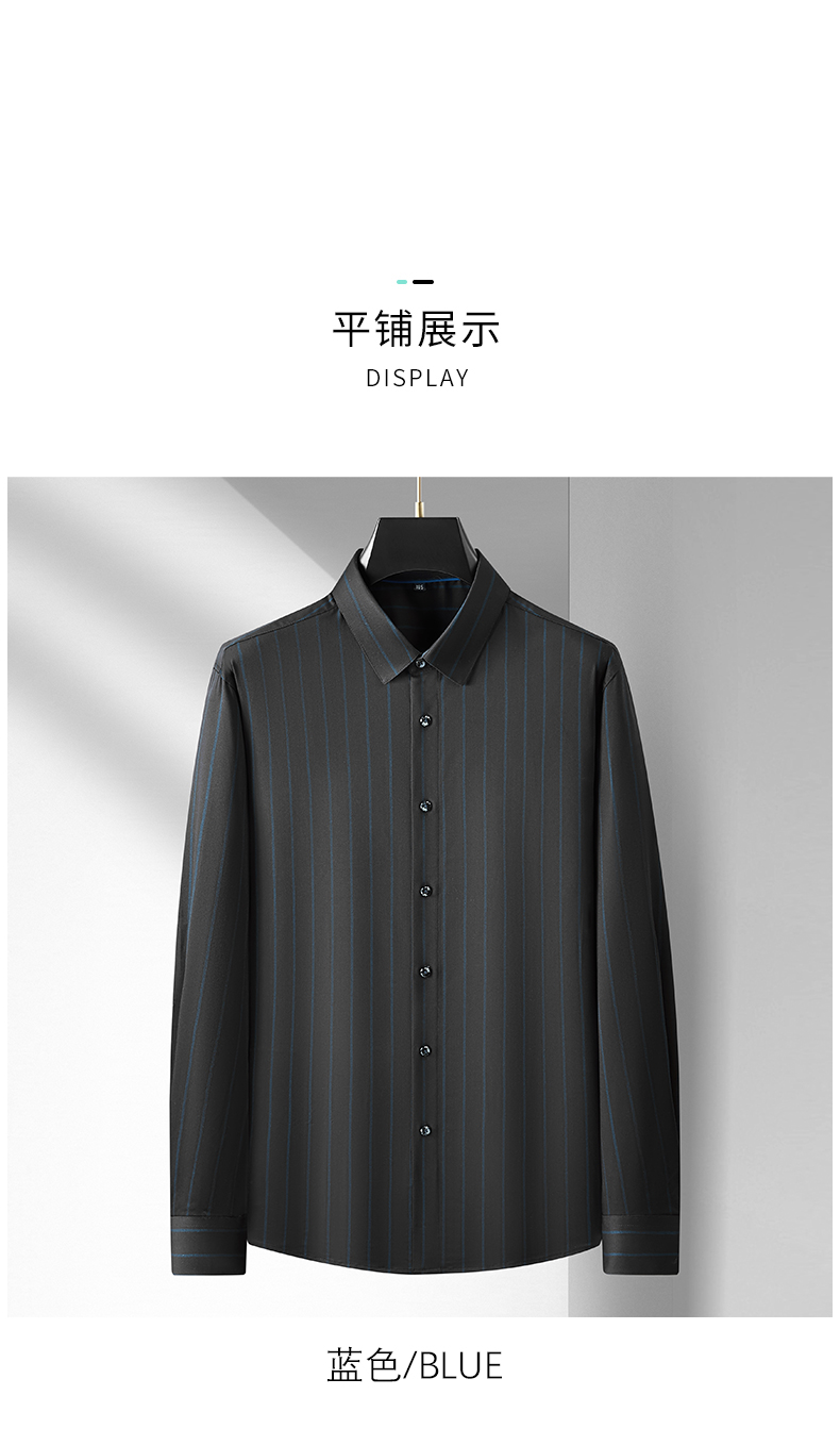【弹力】【新款DM】大依优型竖条纹长袖衬衫男宽松加肥加大码男士休闲商务衬衣上衣胖子