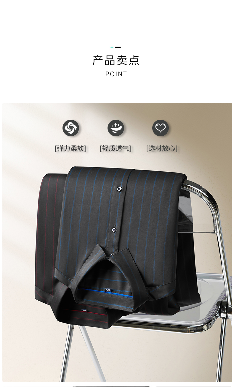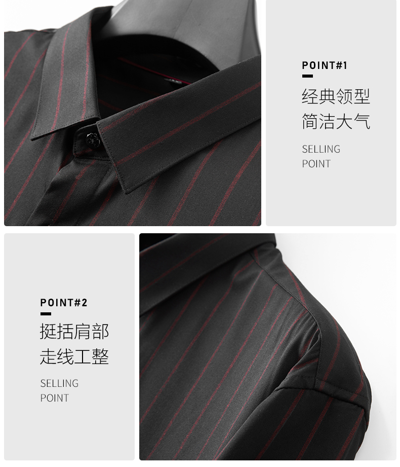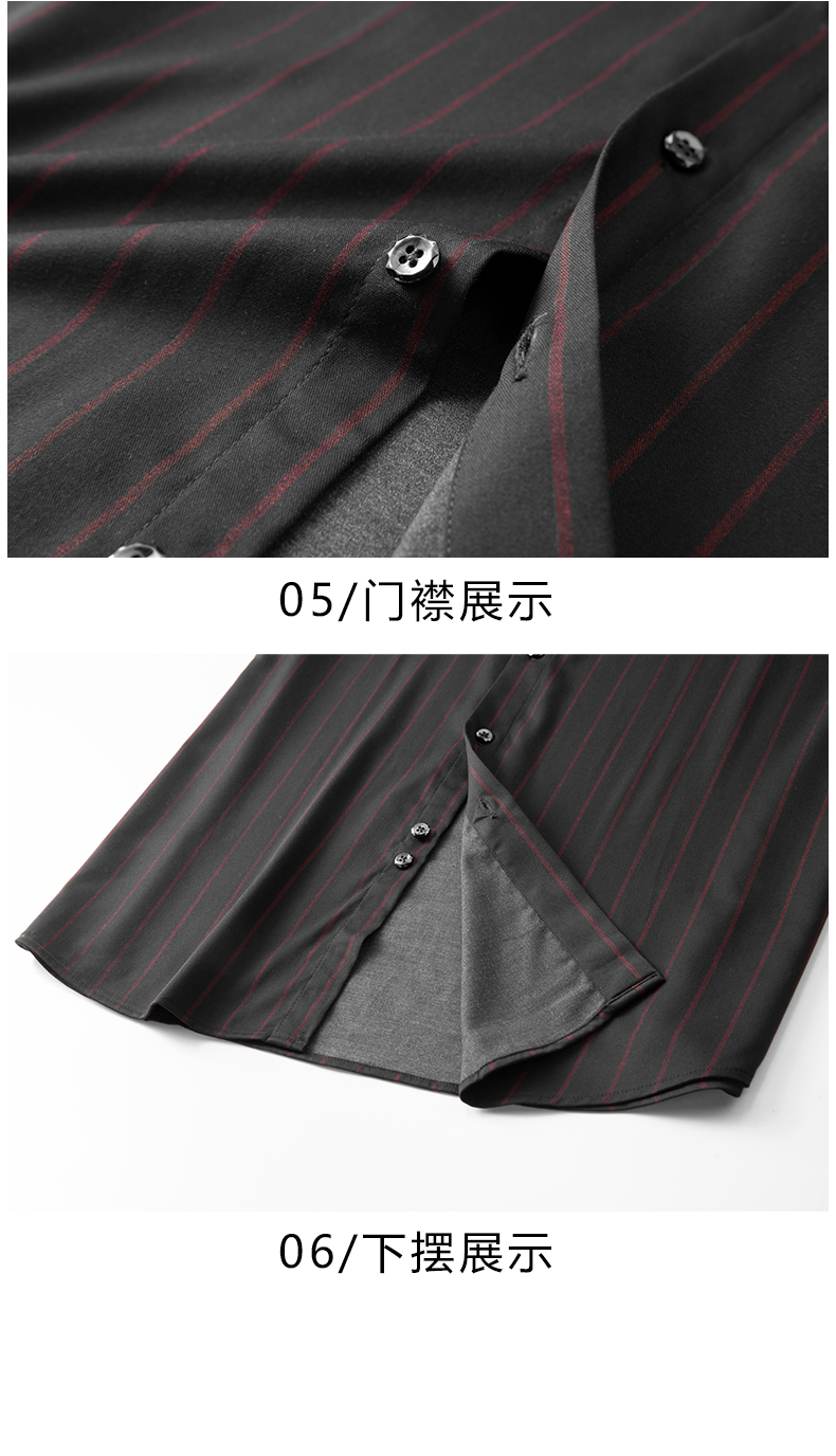 【弹力】【新款DM】大依优型竖条纹长袖衬衫男宽松加肥加大码男士休闲商务衬衣上衣胖子