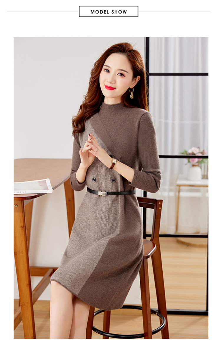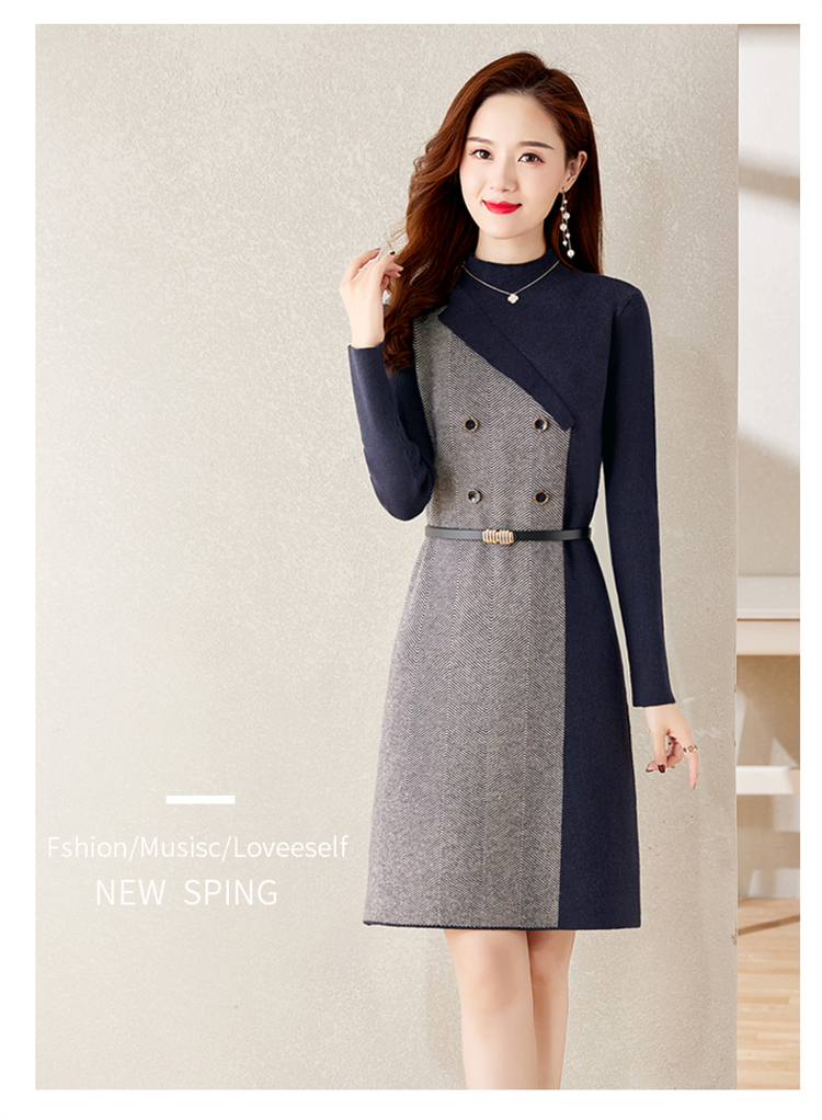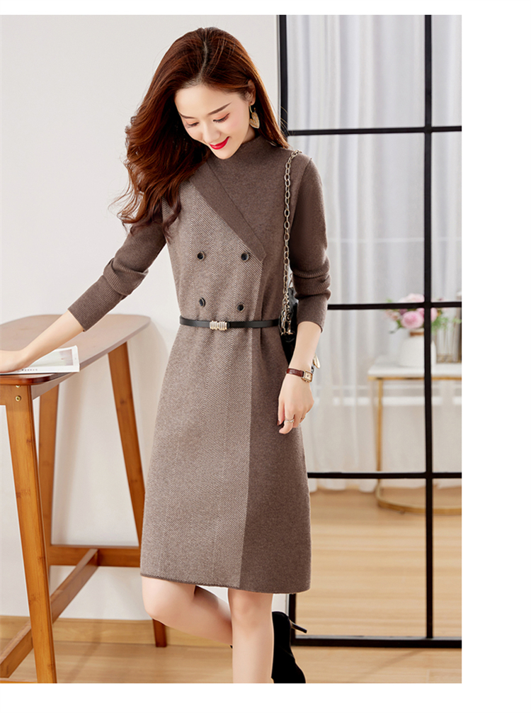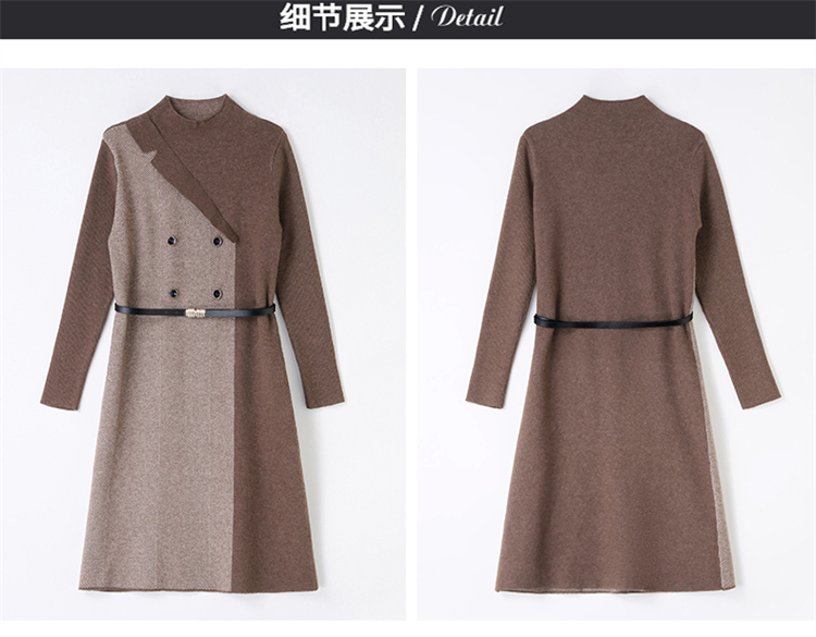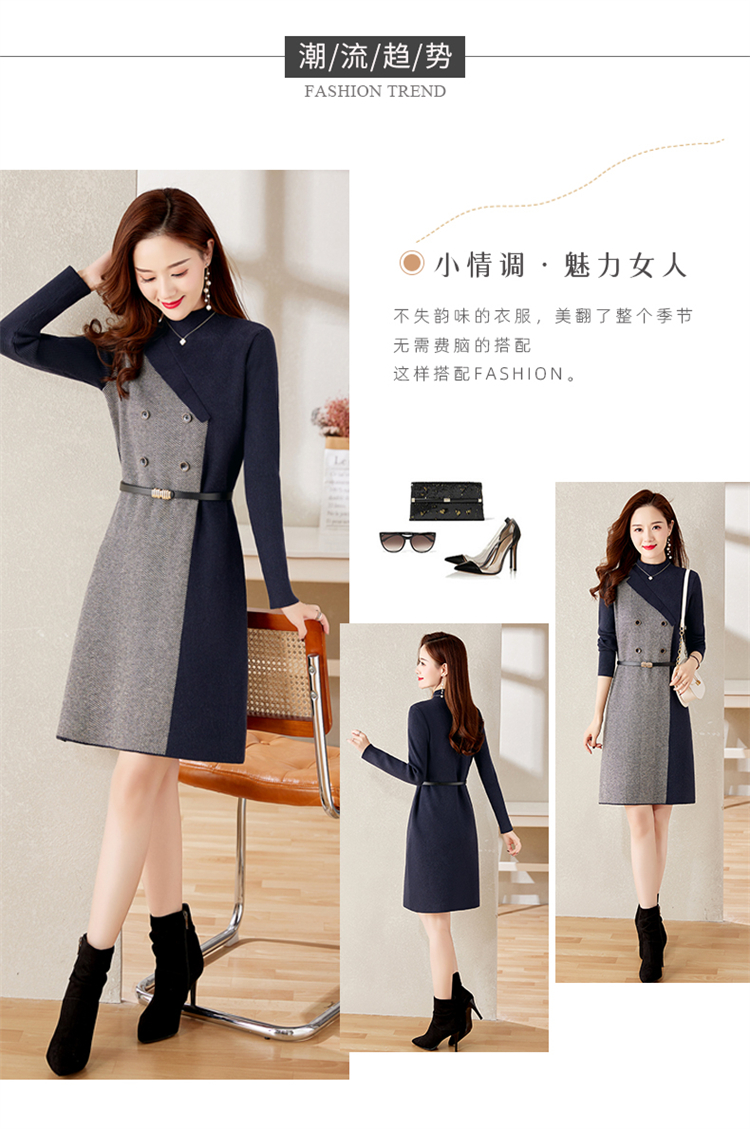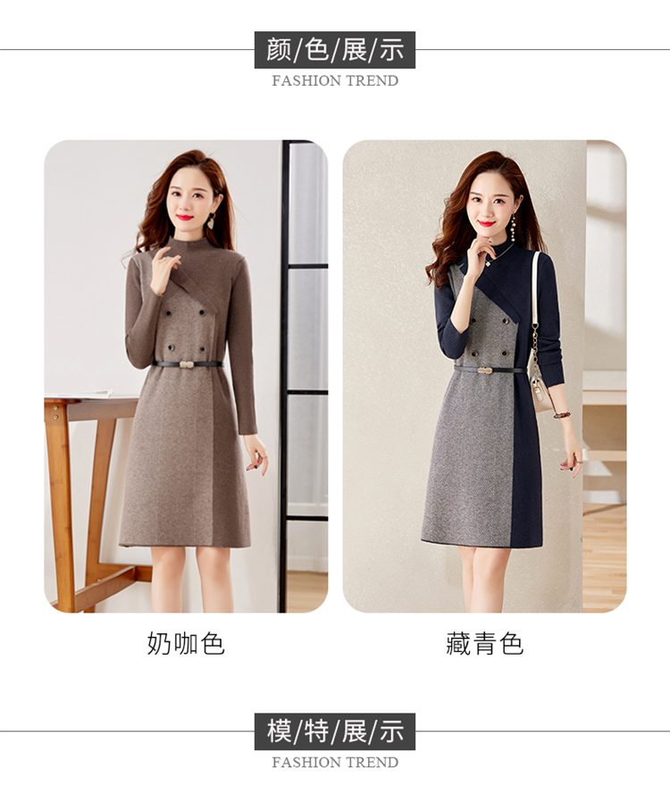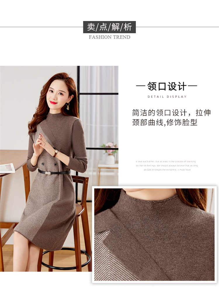 冬季新款,遮肉显瘦不规则拼色洋气半高领针织连衣裙女HR-YBER2321