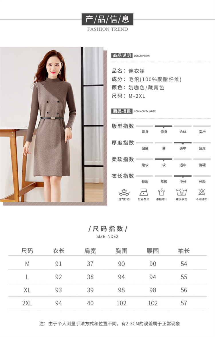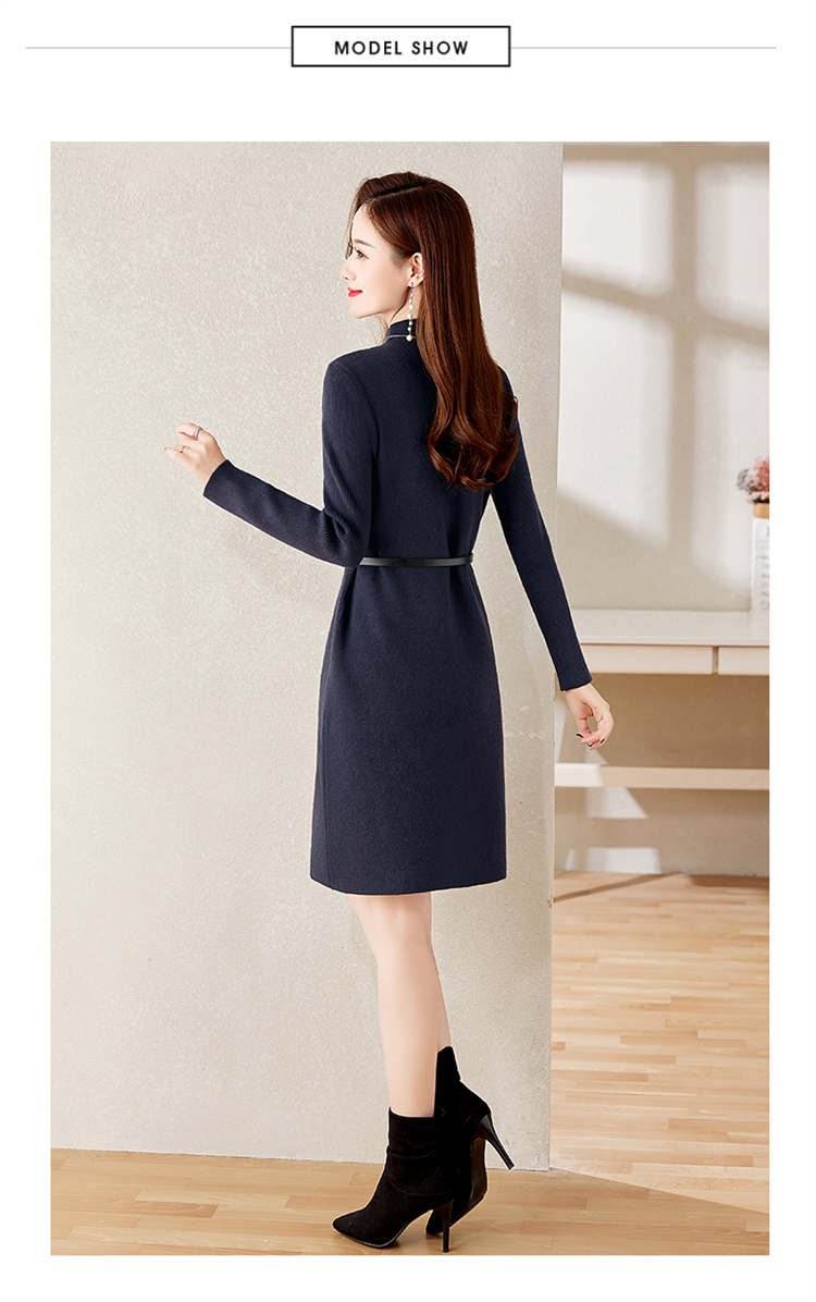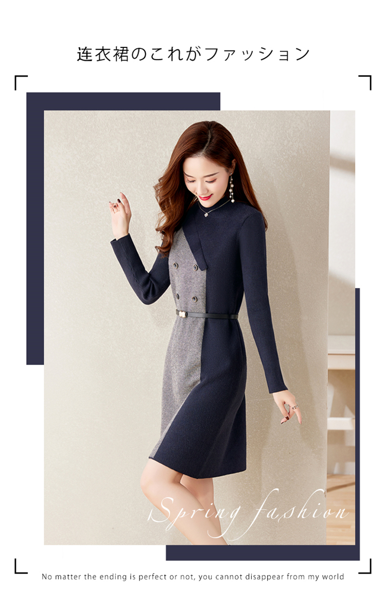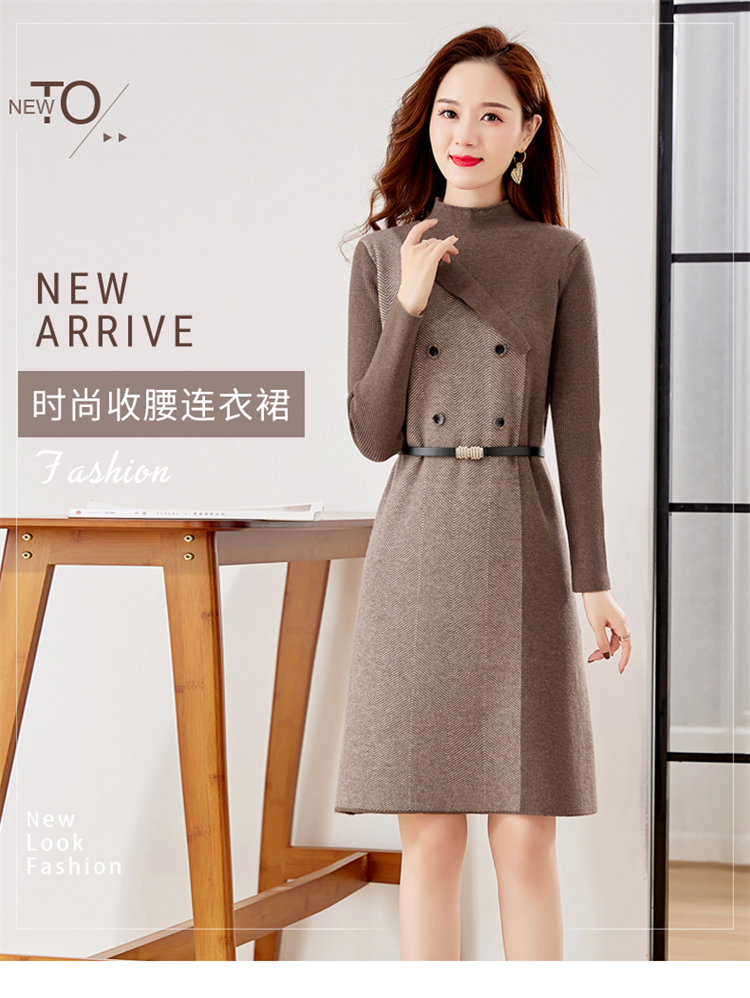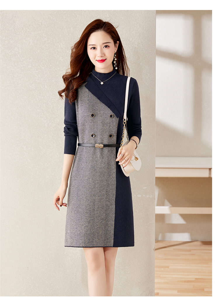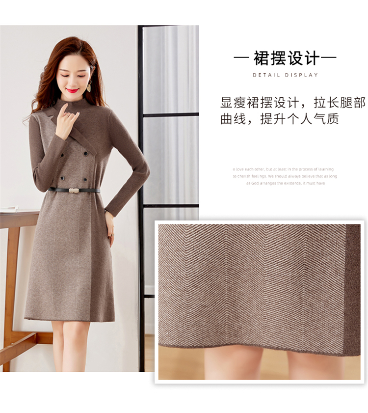 冬季新款,遮肉显瘦不规则拼色洋气半高领针织连衣裙女HR-YBER2321