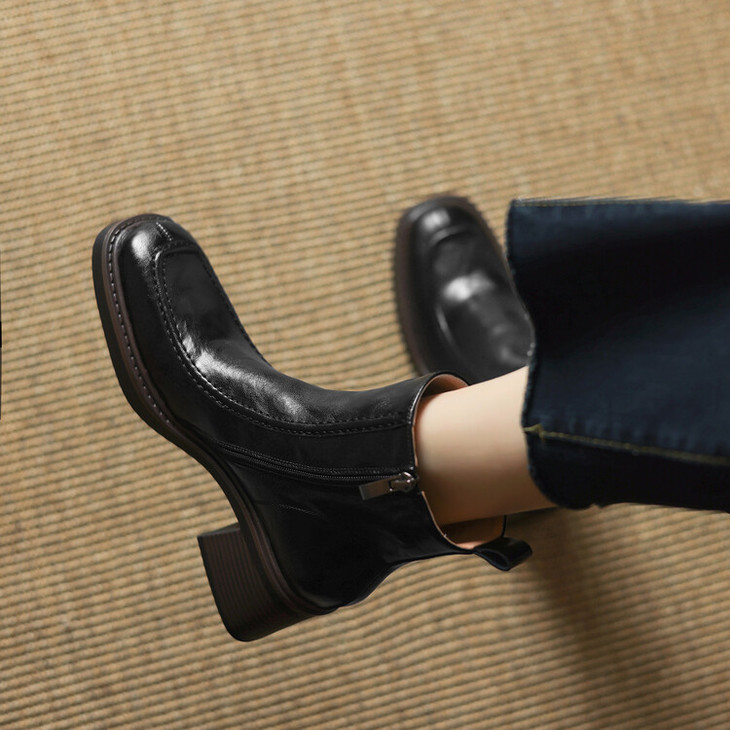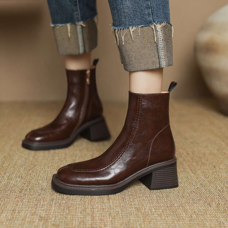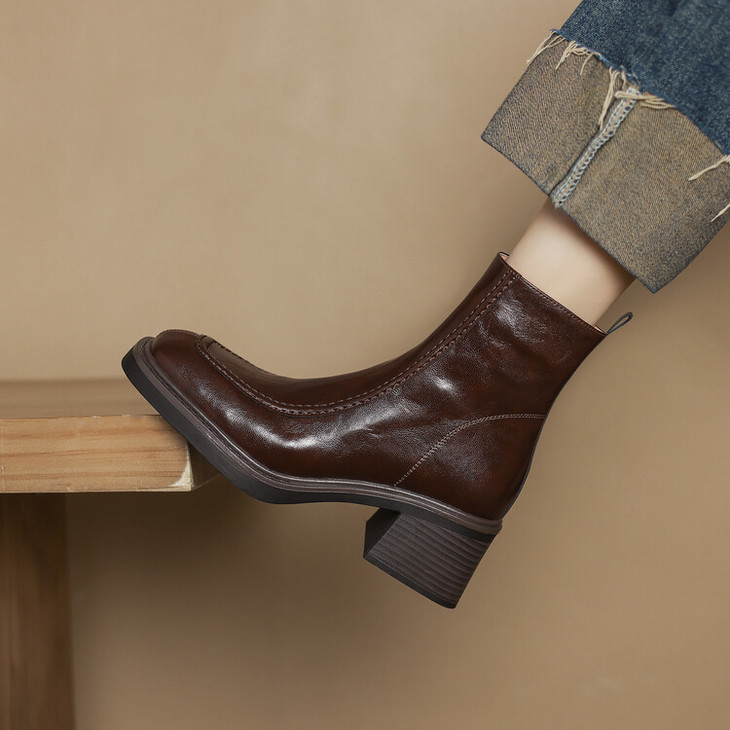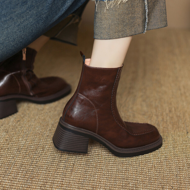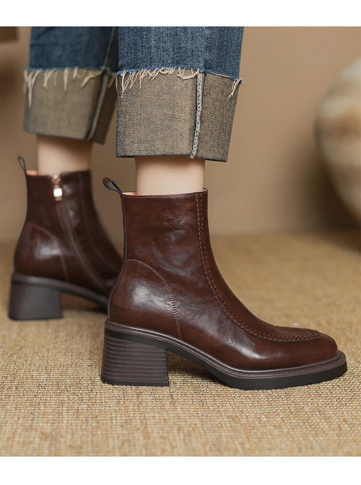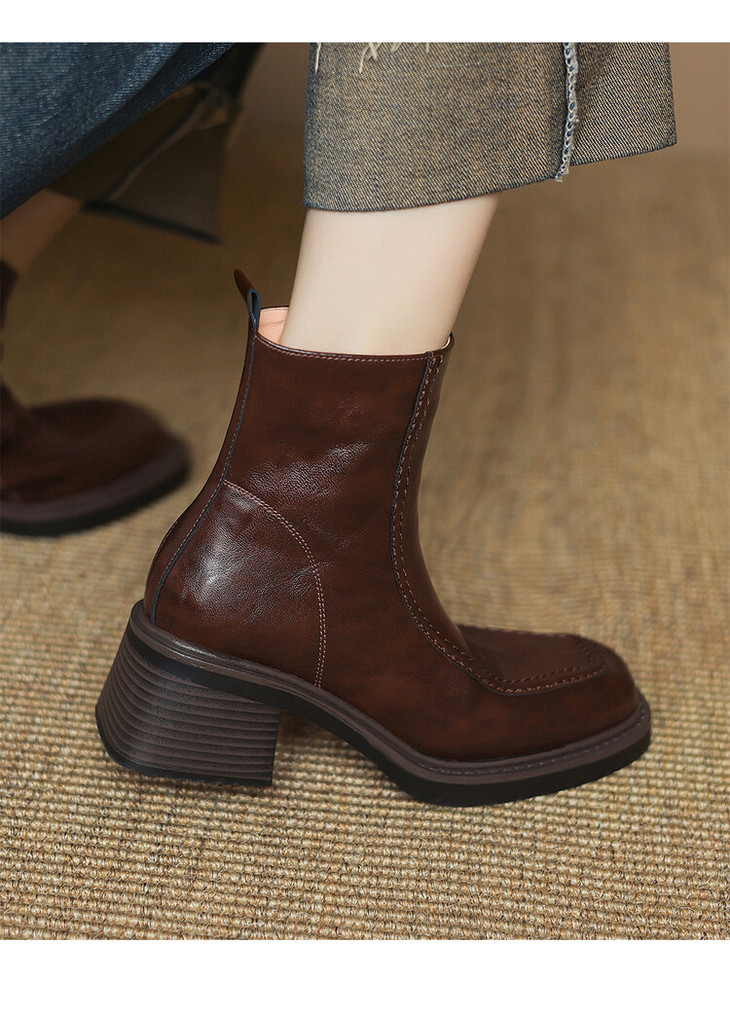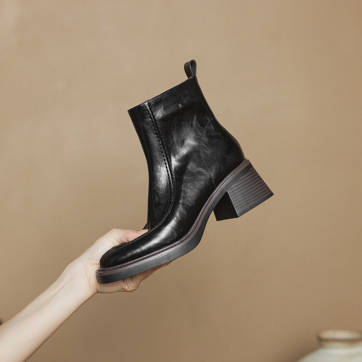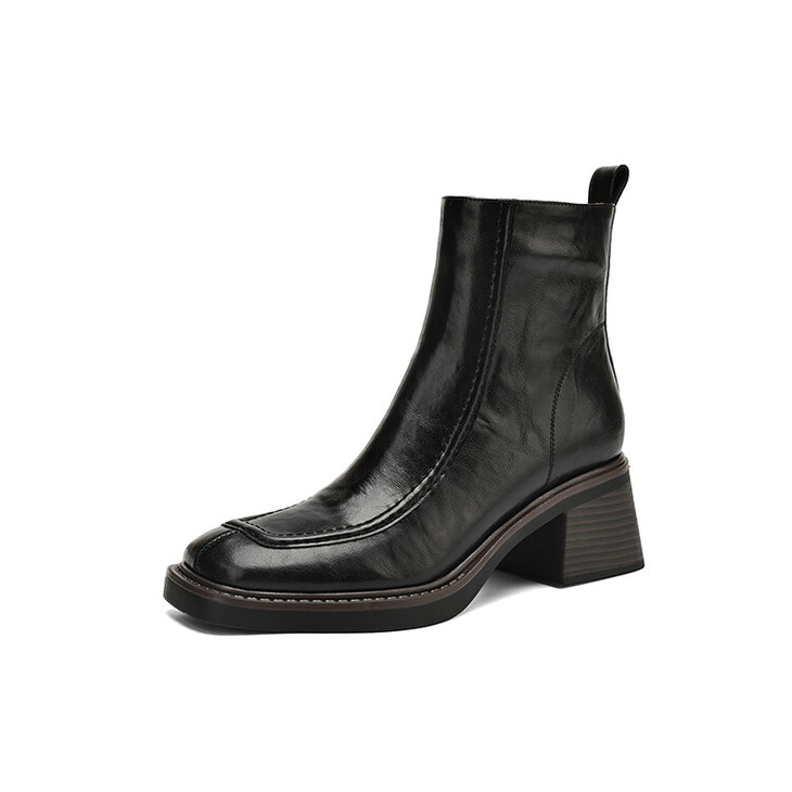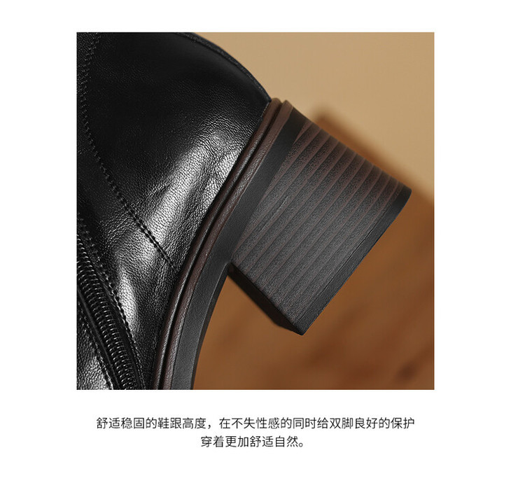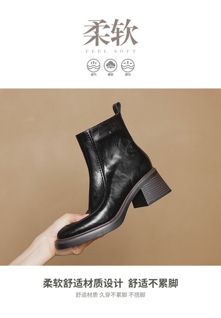 【预售5天】法式复古粗跟短靴女秋冬新款圆头高跟靴子显瘦马丁靴单靴LD&6975