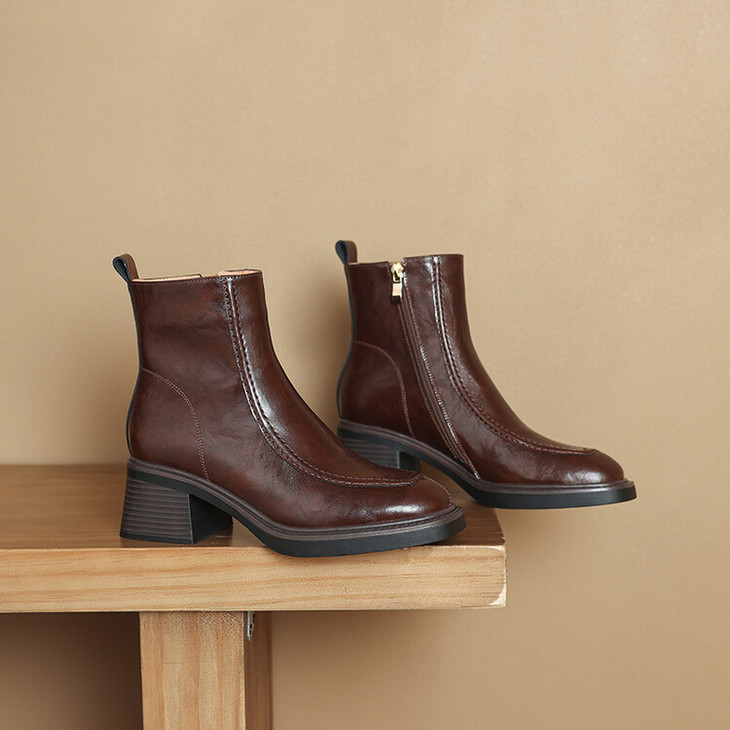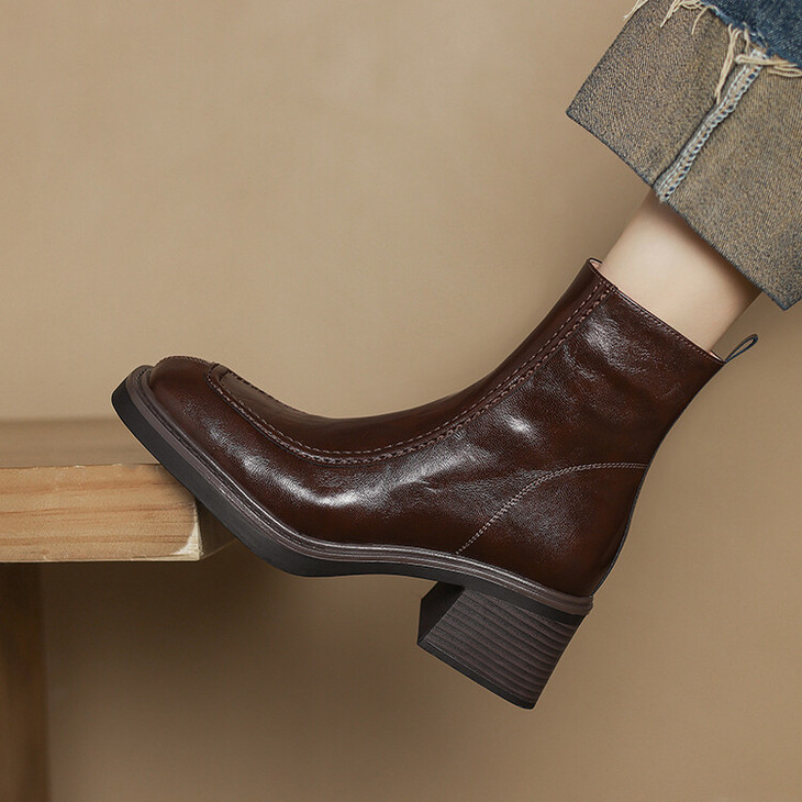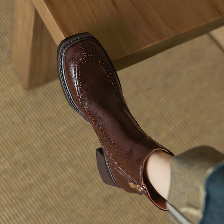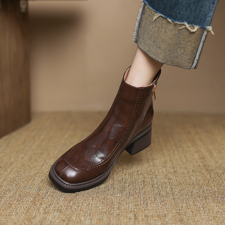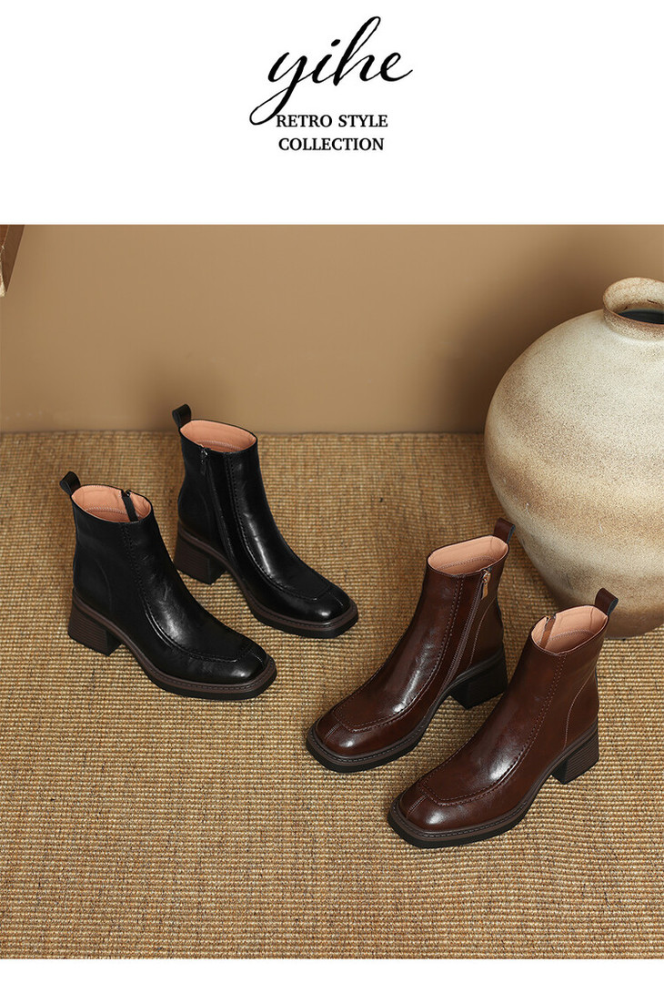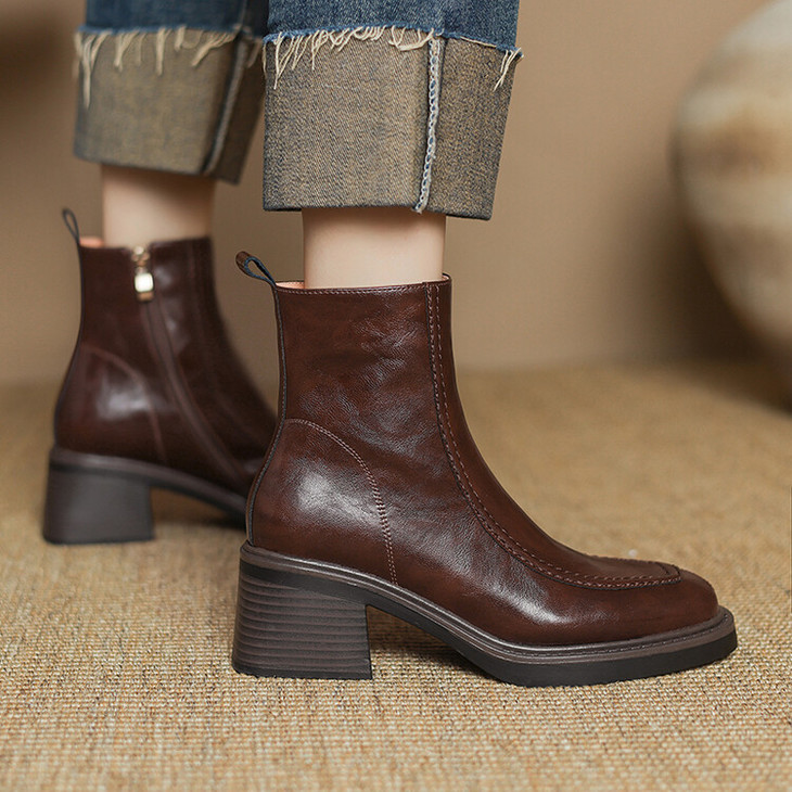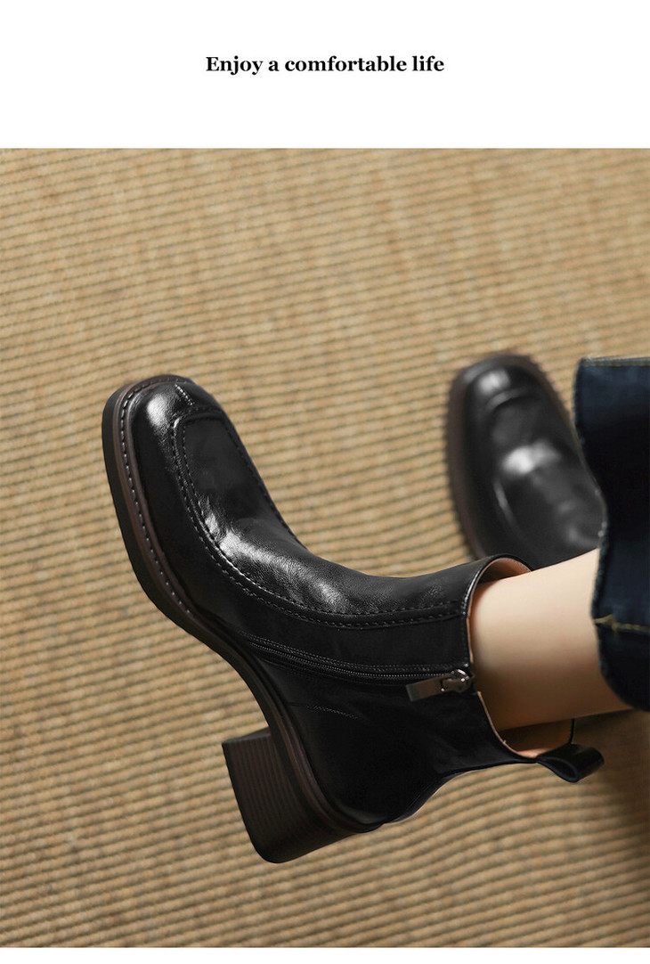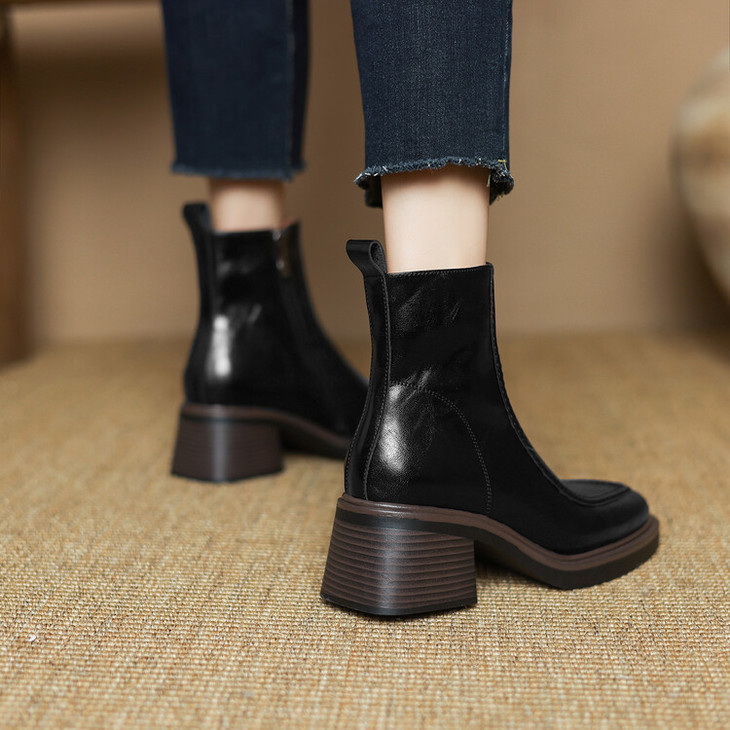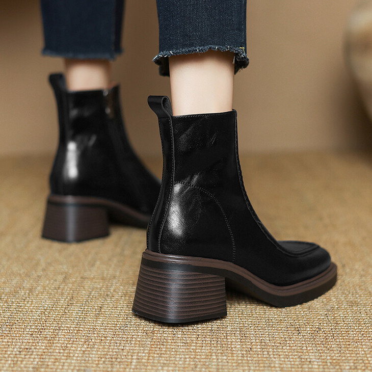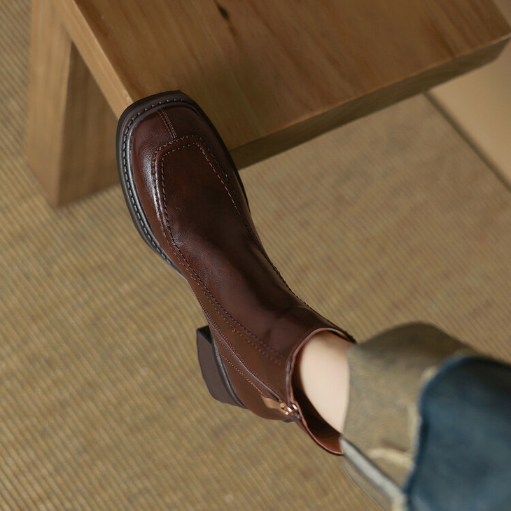 【预售5天】法式复古粗跟短靴女秋冬新款圆头高跟靴子显瘦马丁靴单靴LD&6975