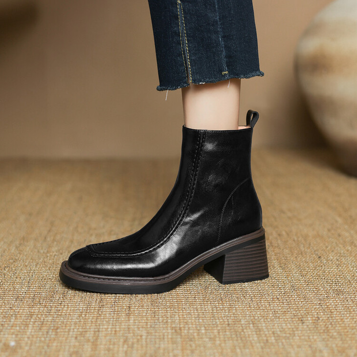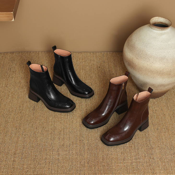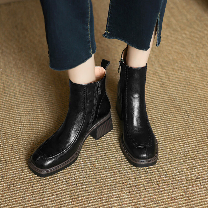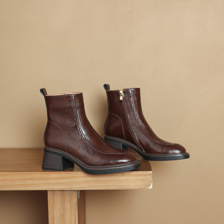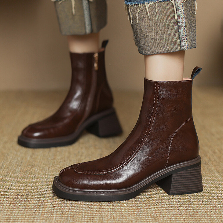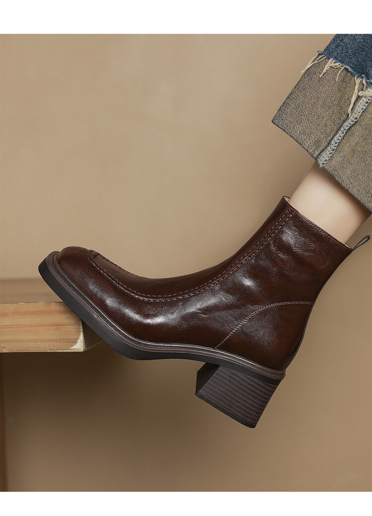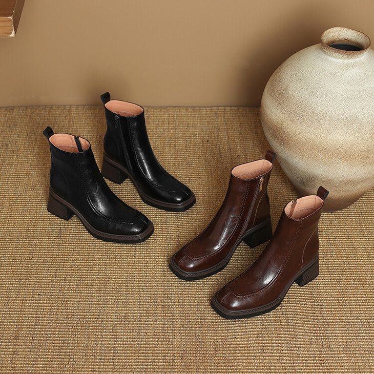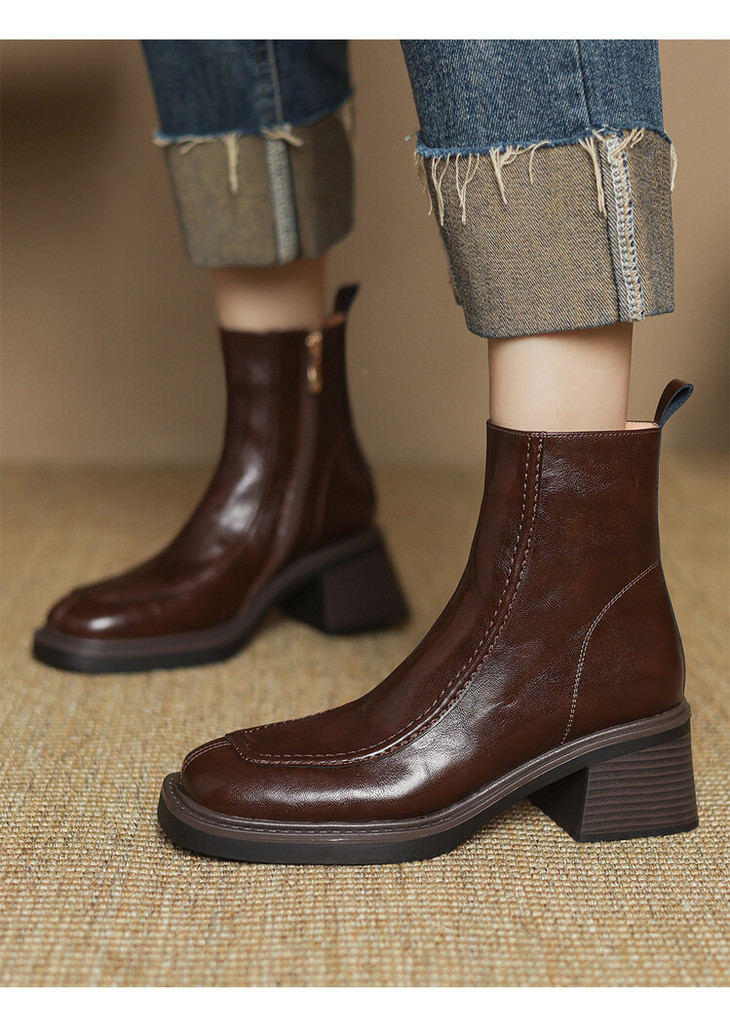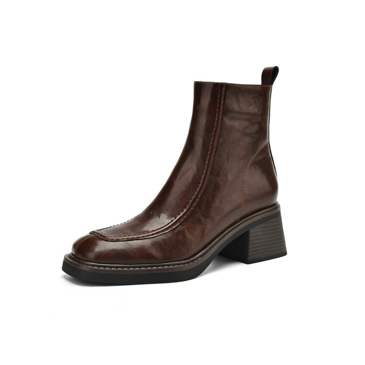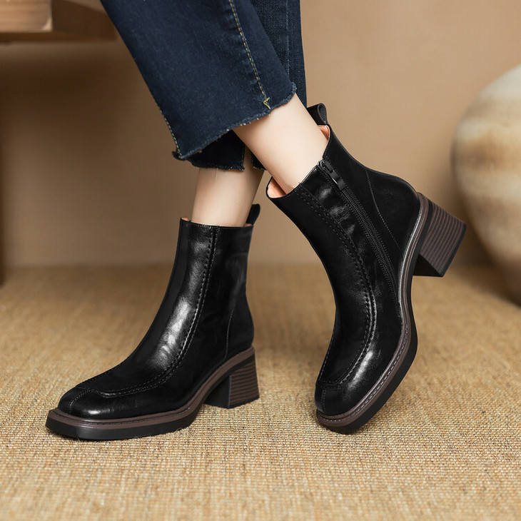 【预售5天】法式复古粗跟短靴女秋冬新款圆头高跟靴子显瘦马丁靴单靴LD&6975
