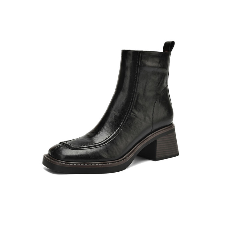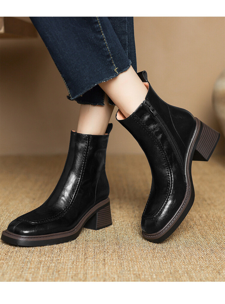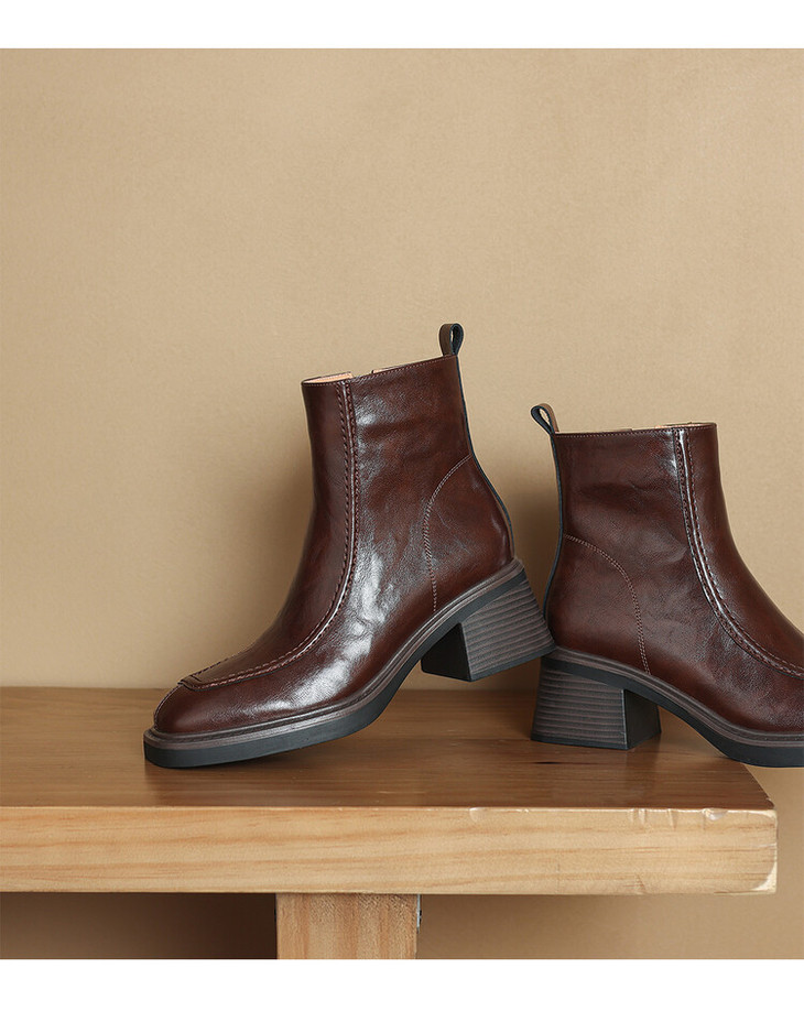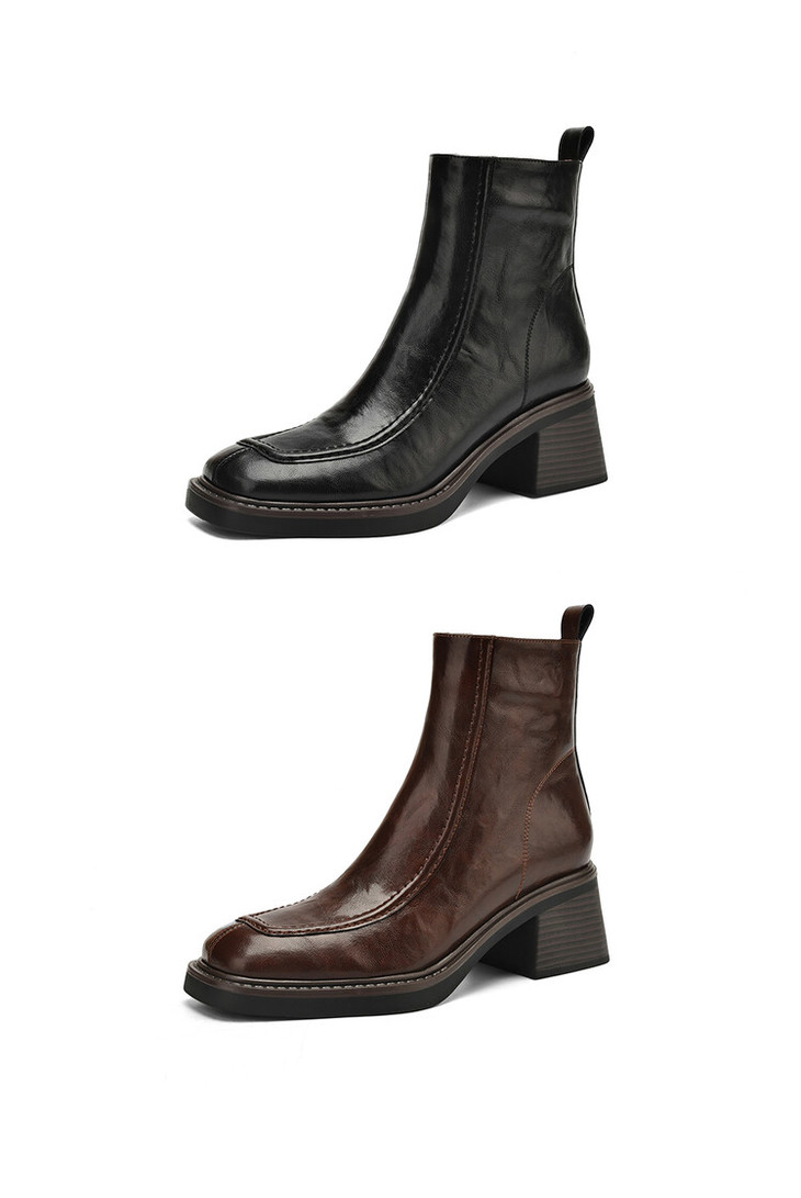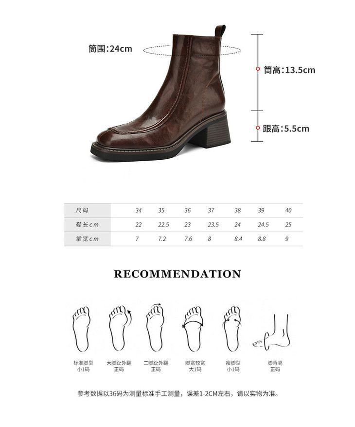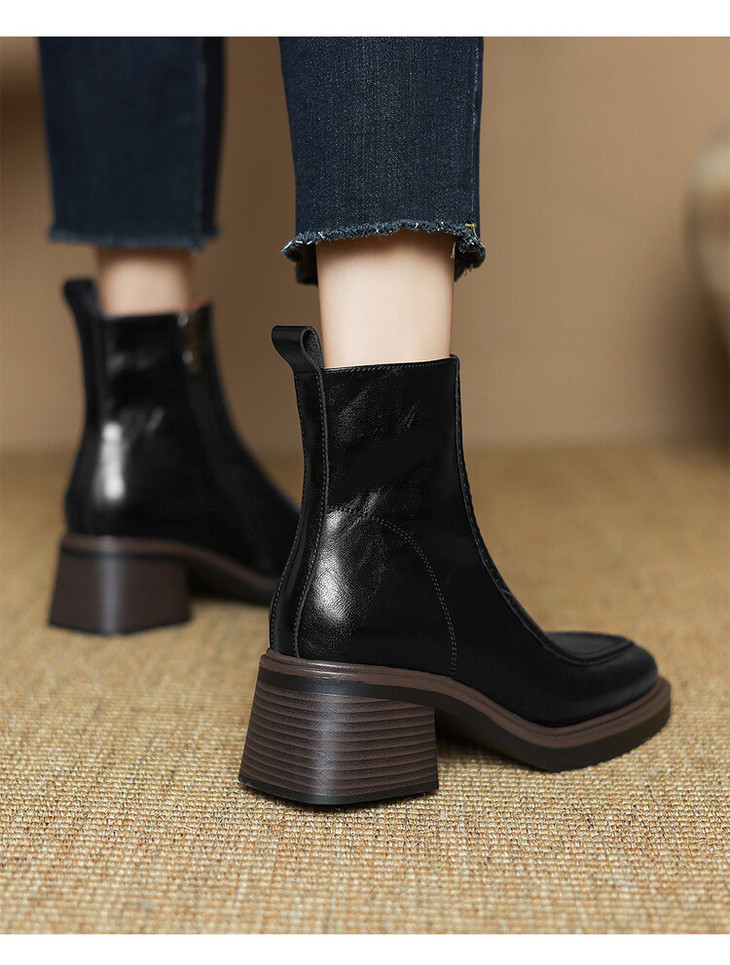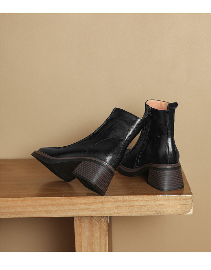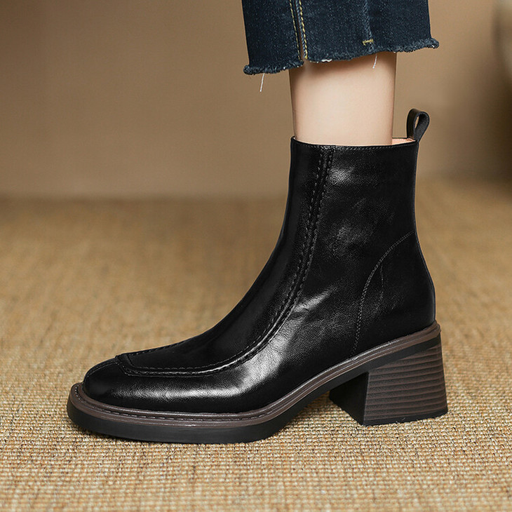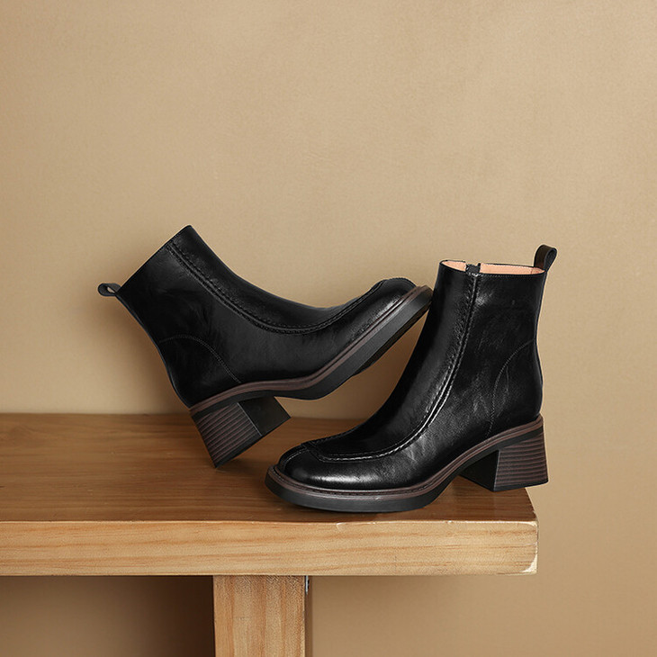 【预售5天】法式复古粗跟短靴女秋冬新款圆头高跟靴子显瘦马丁靴单靴LD&6975