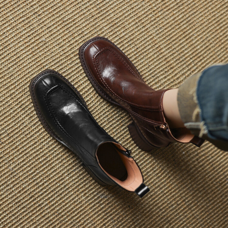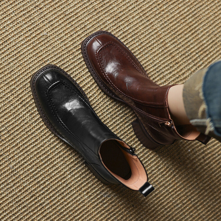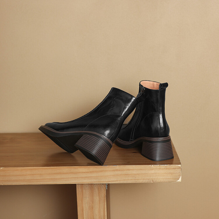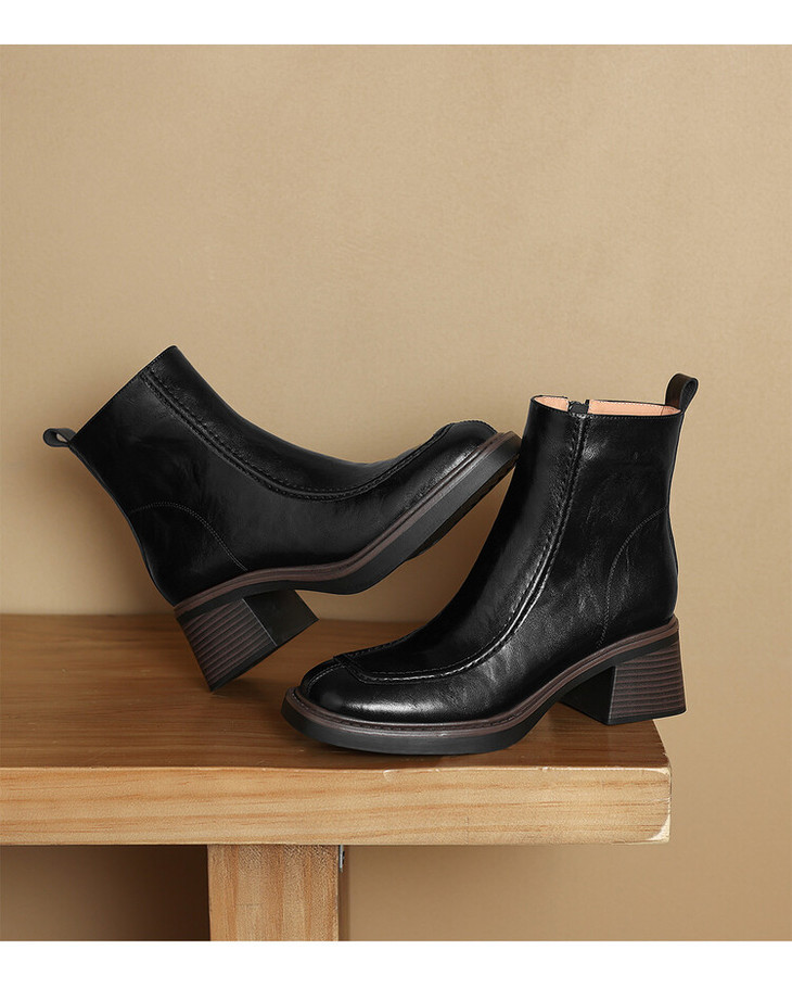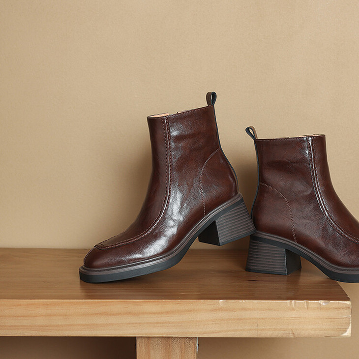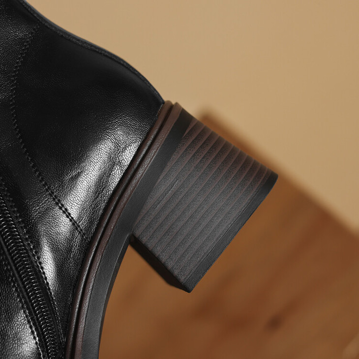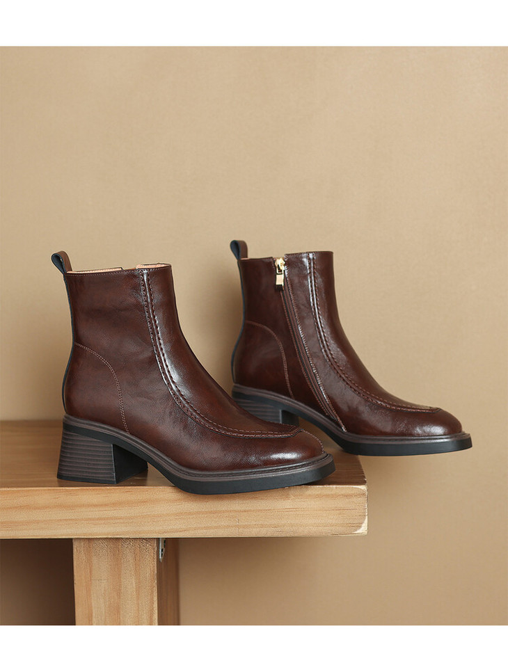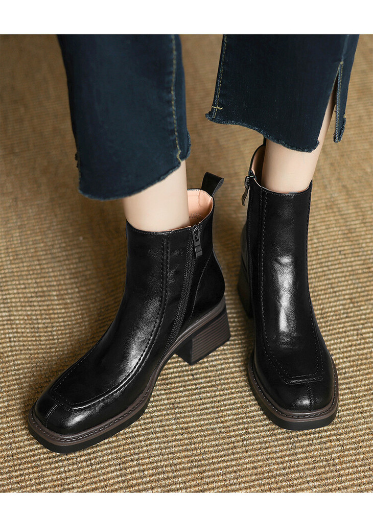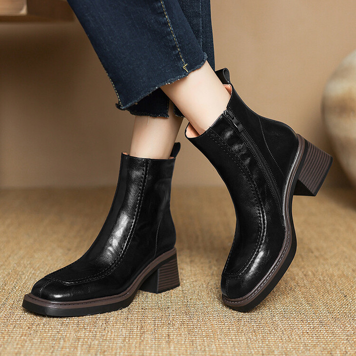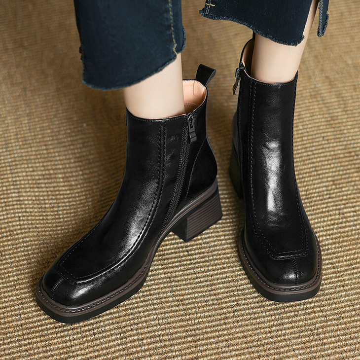 【预售5天】法式复古粗跟短靴女秋冬新款圆头高跟靴子显瘦马丁靴单靴LD&6975