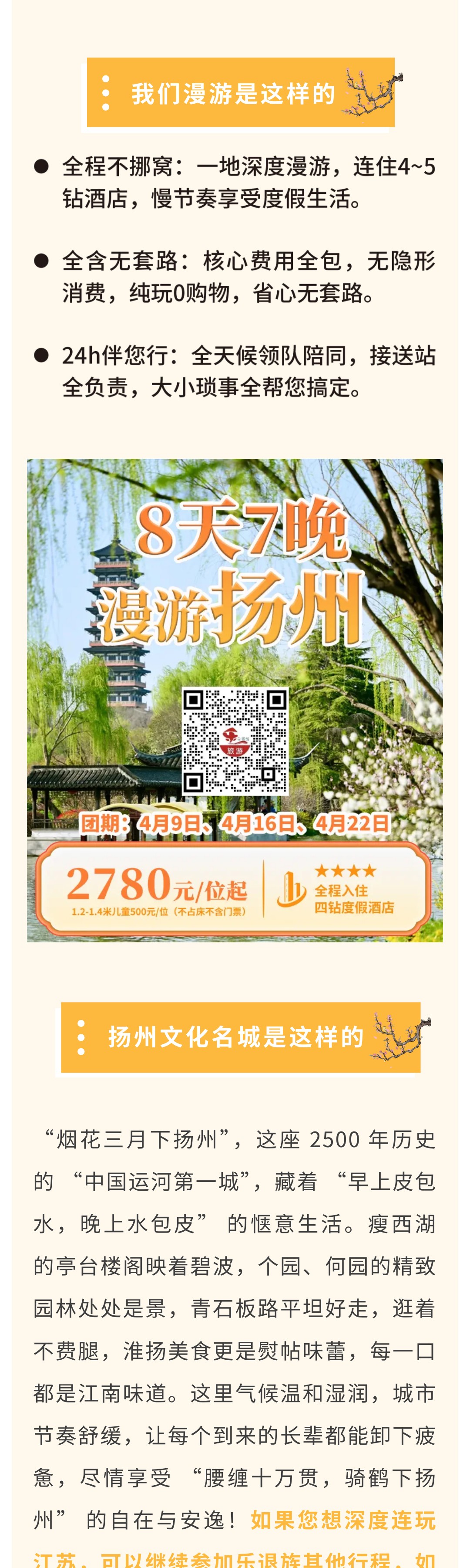 边玩边养老丨漫游扬州,看花海游古巷,玩转江南四城,赏春日江南好风光!