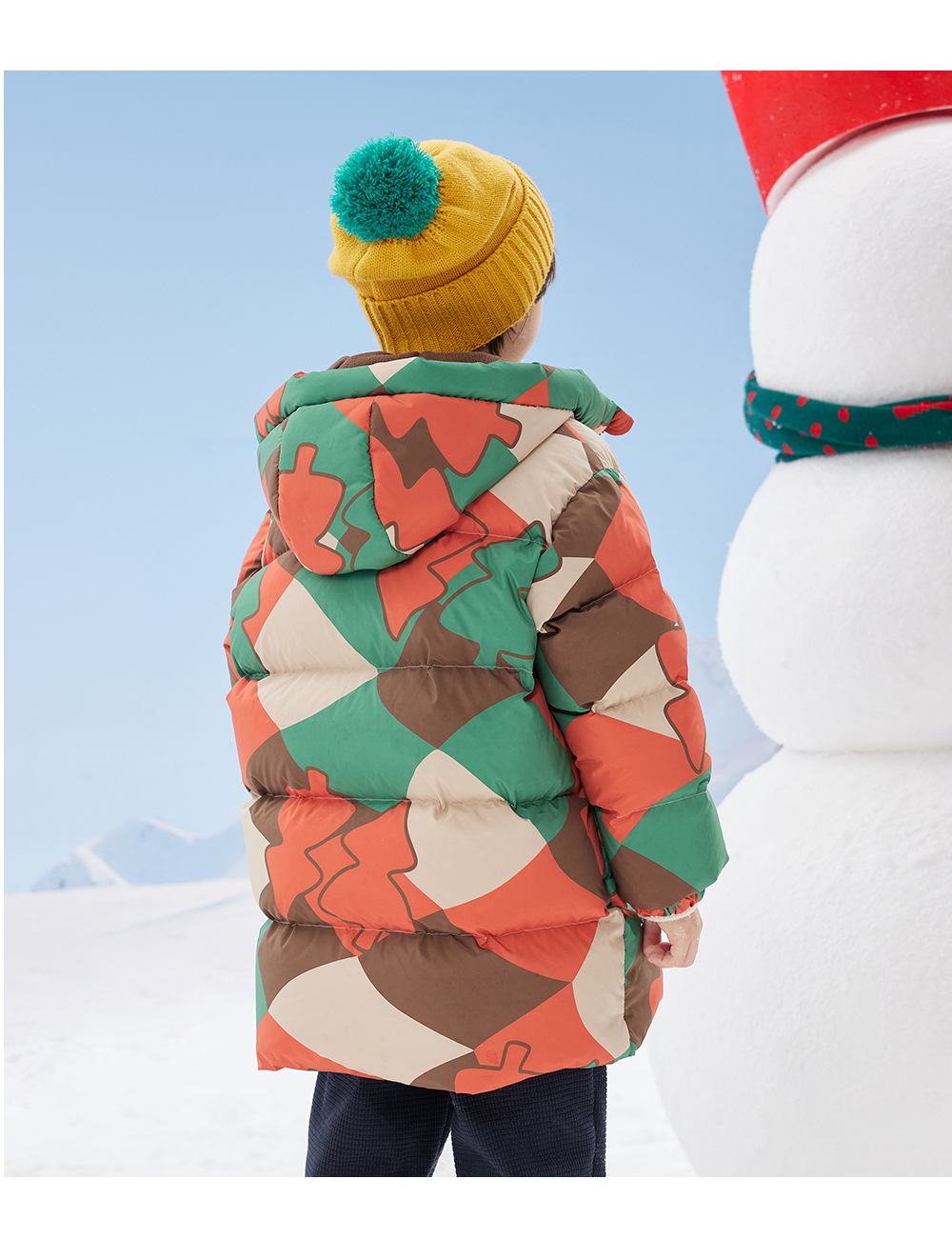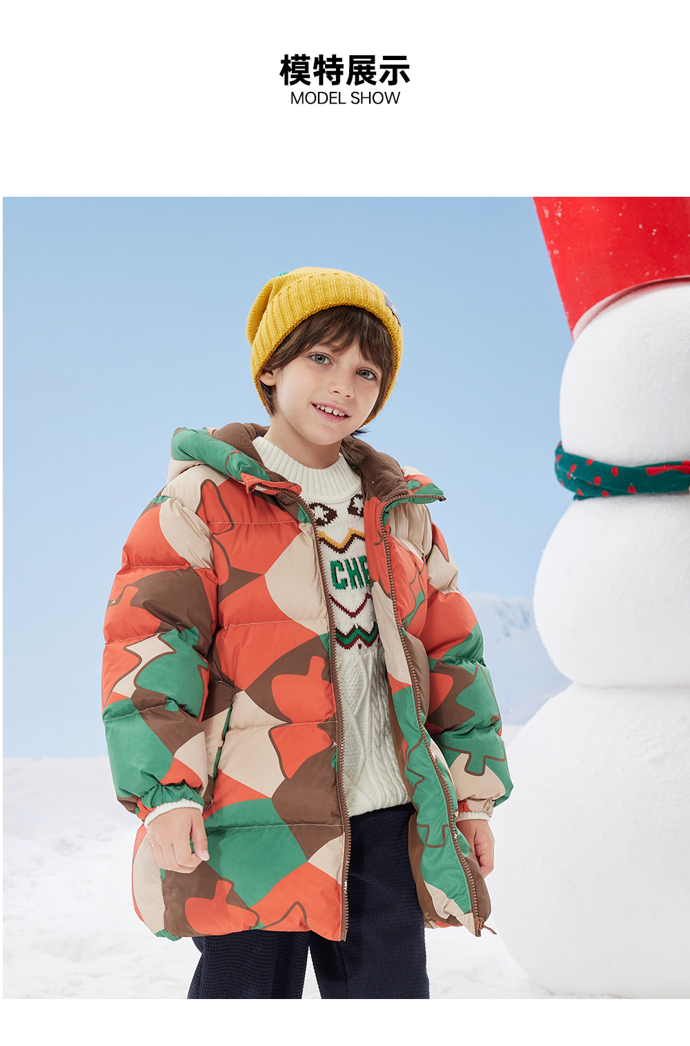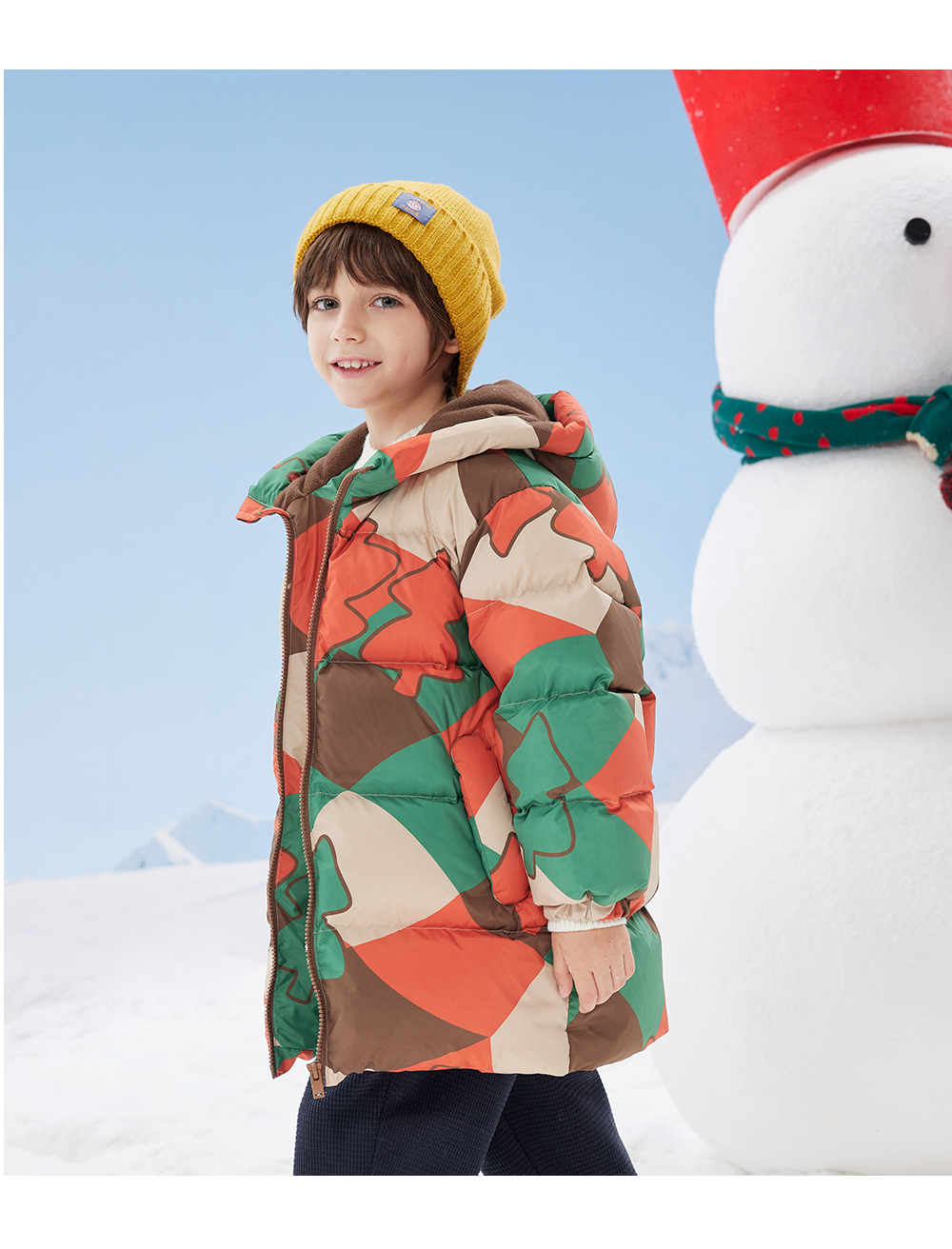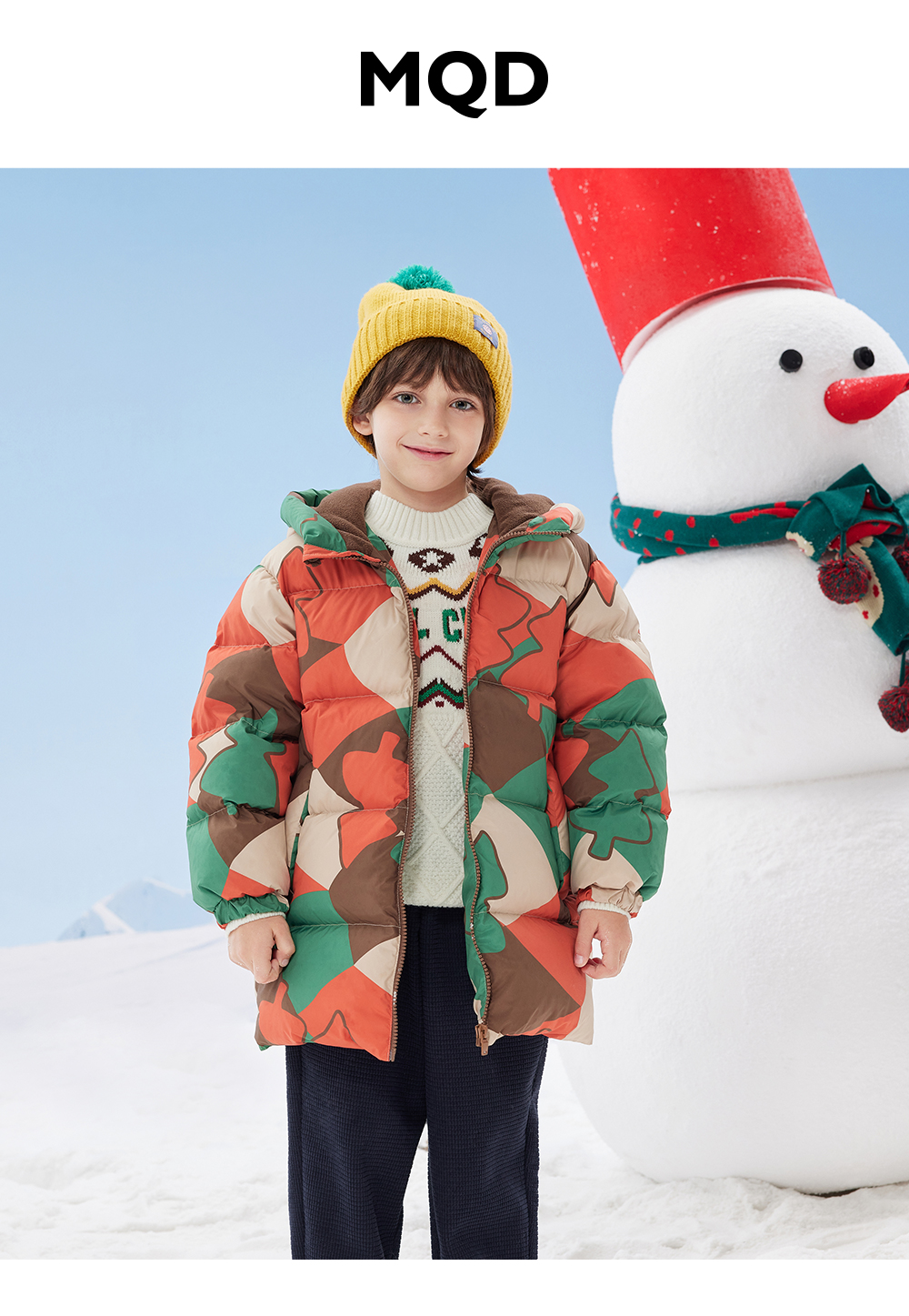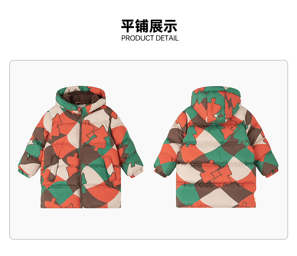 【秒1】【MQD】男童冬季满印趣味艺术花版连帽羽绒服