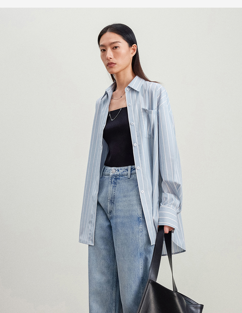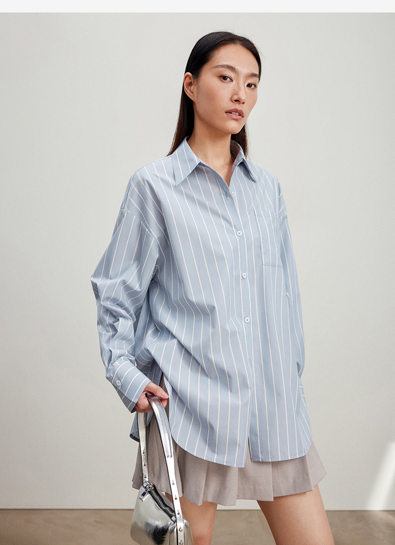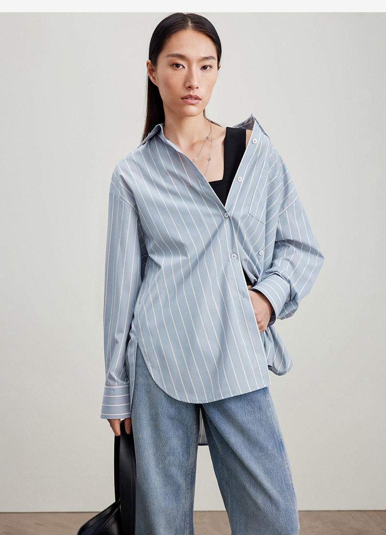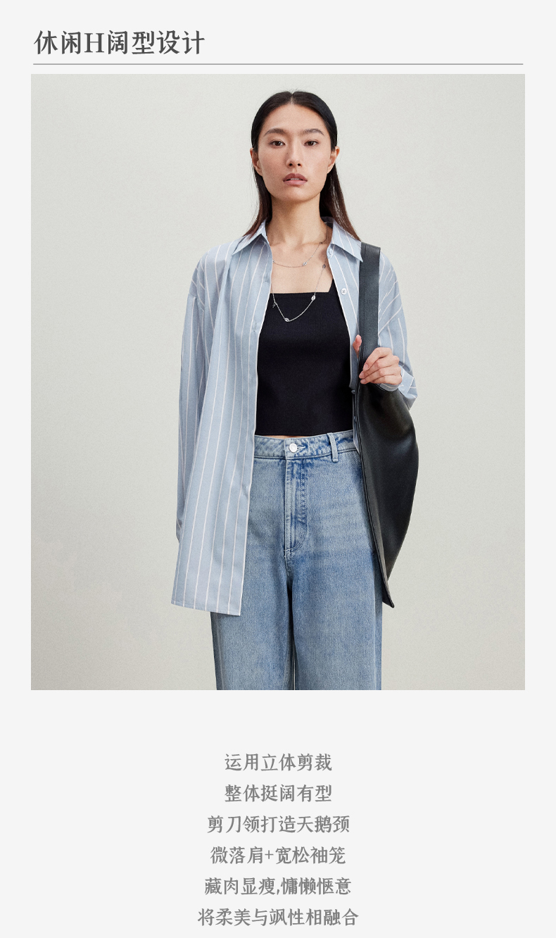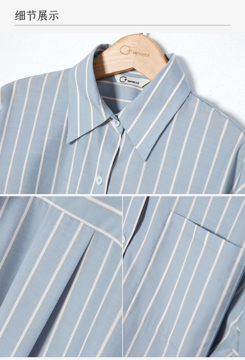 西嘉C+IMPRESS/西嘉Clean fit风铜氨丝色织条纹衬衫女多穿法早春上衣CS2401019
