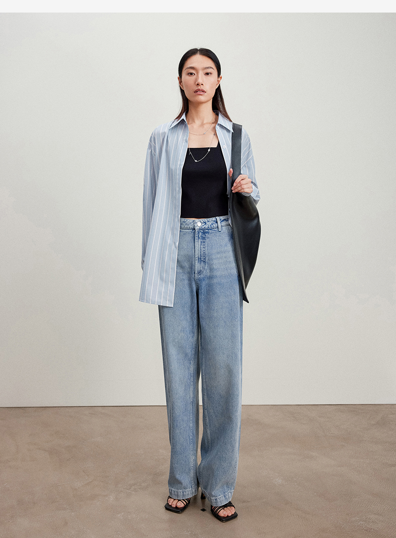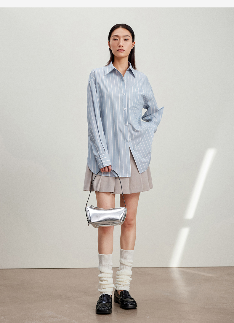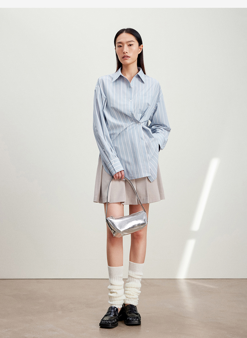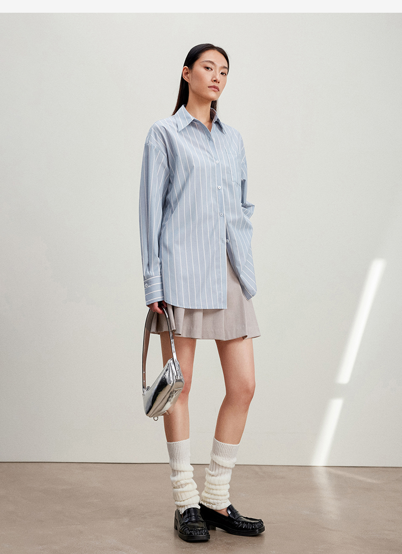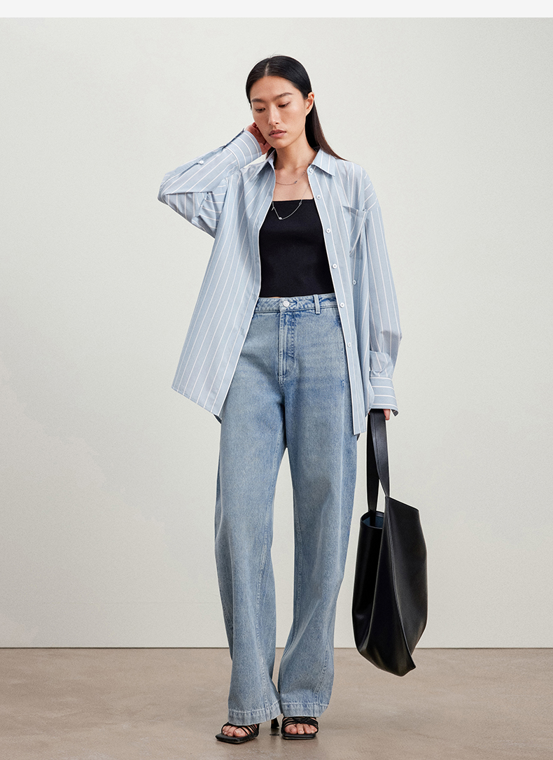 西嘉C+IMPRESS/西嘉Clean fit风铜氨丝色织条纹衬衫女多穿法早春上衣CS2401019
