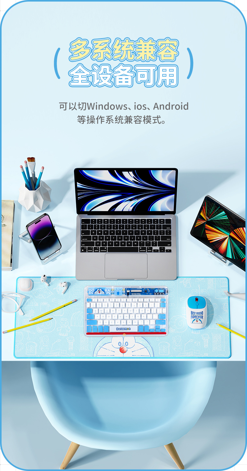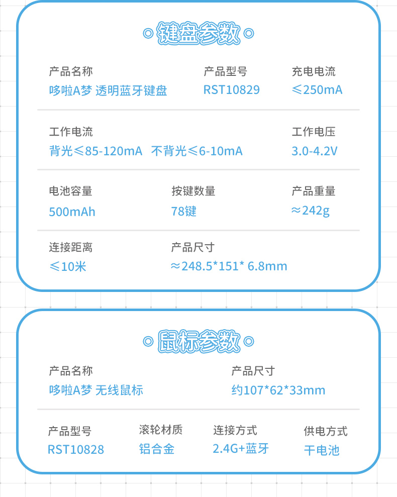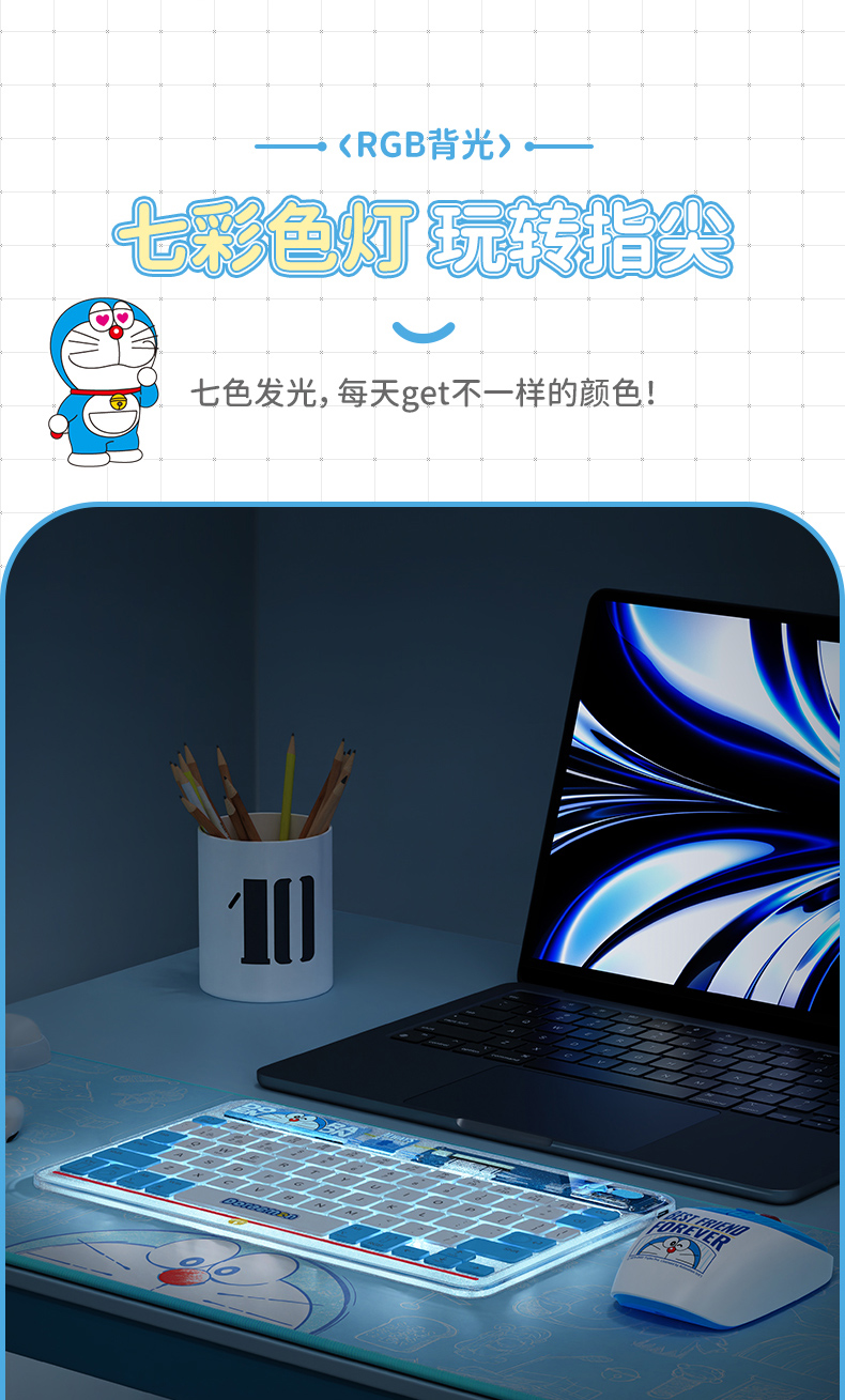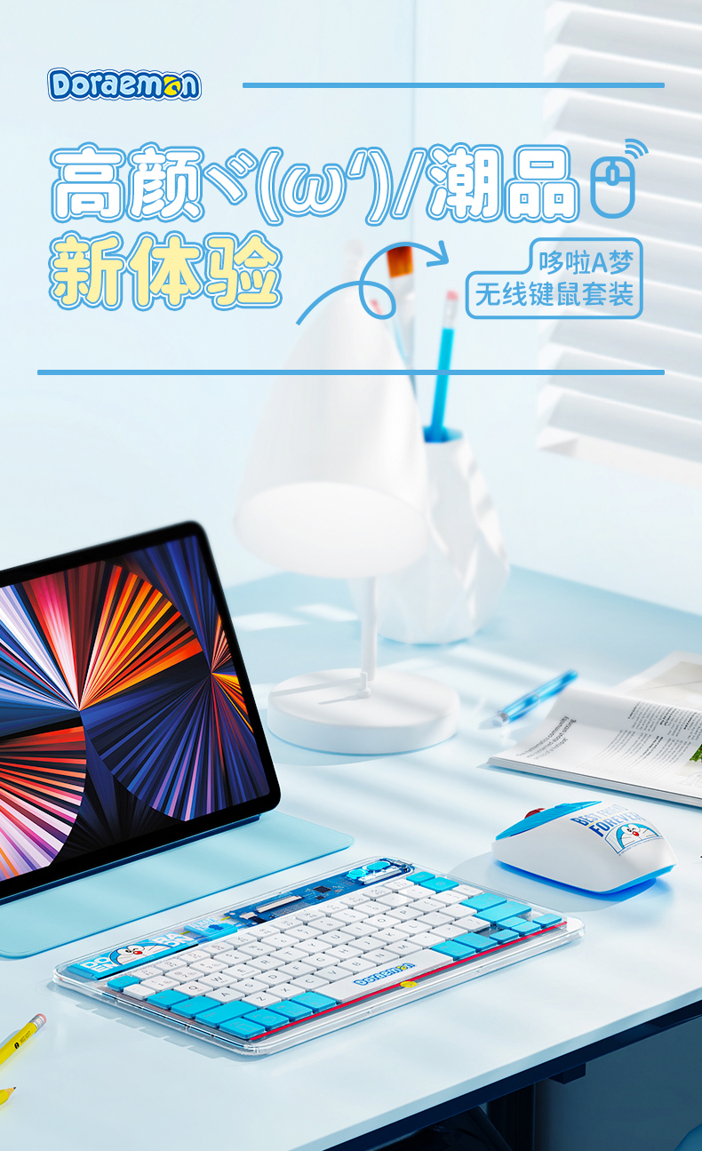 ROCK-哆啦A梦生活系列-无线蓝牙鼠标键盘套装