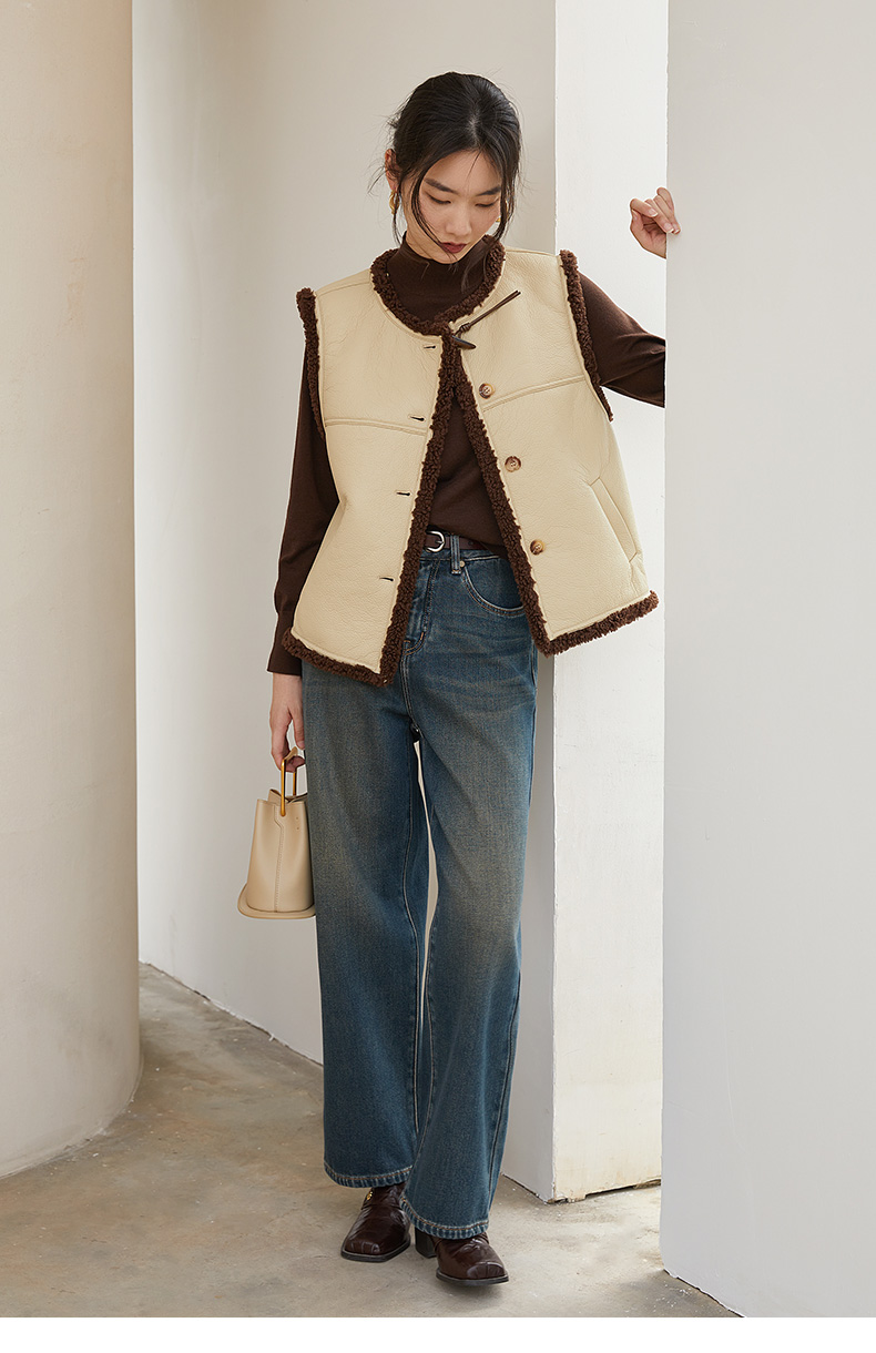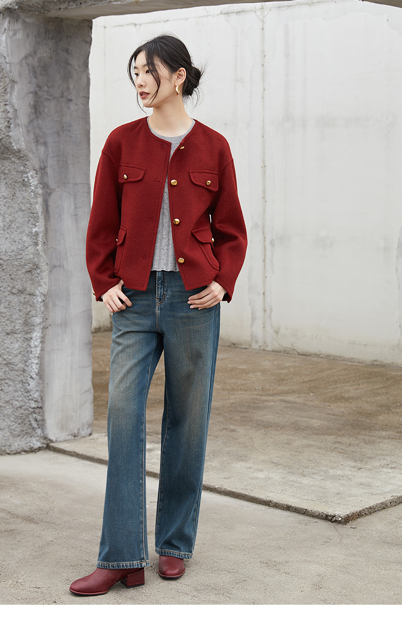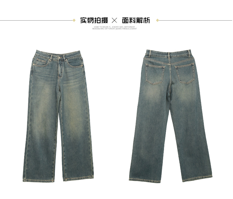 复古蓝高腰阔腿牛仔裤 秋冬做旧显瘦直筒宽松垂感牛仔长裤