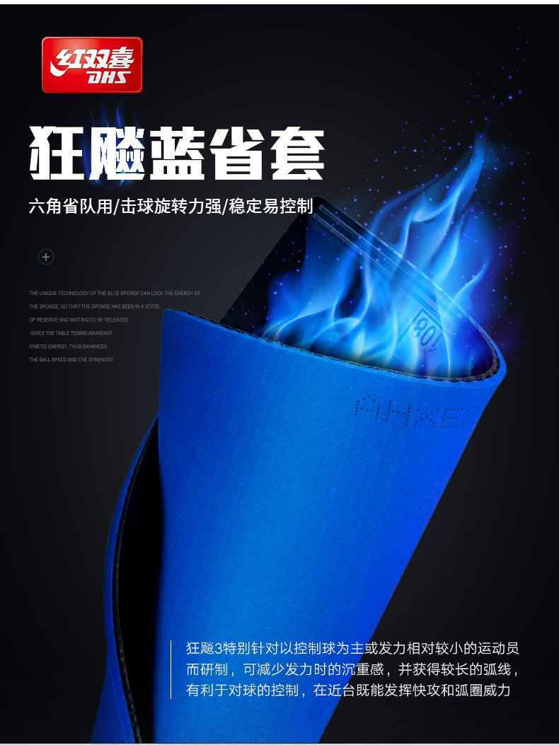 DHS 红双喜 蓝海绵省套狂飙3 狂飚三 乒乓球反胶套胶