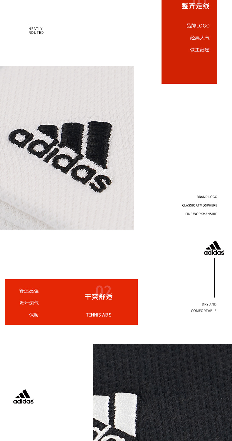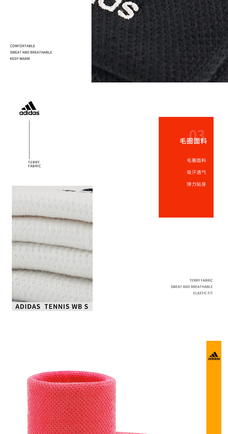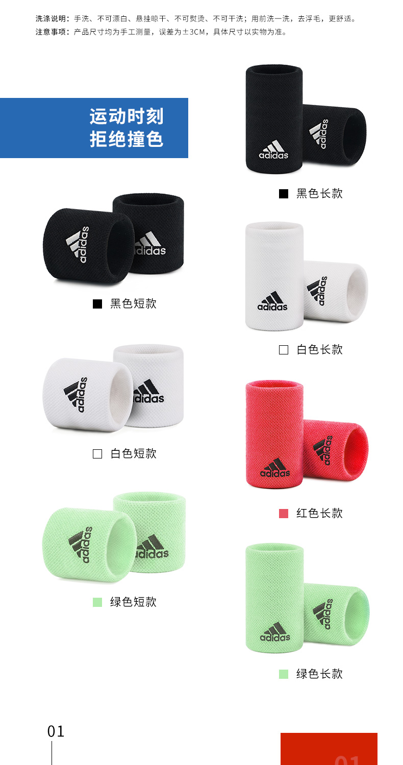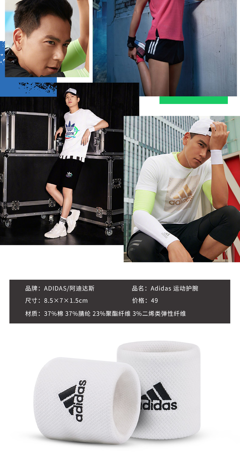 Adidas 男女网球运动护腕 吸汗擦汗(一对装)