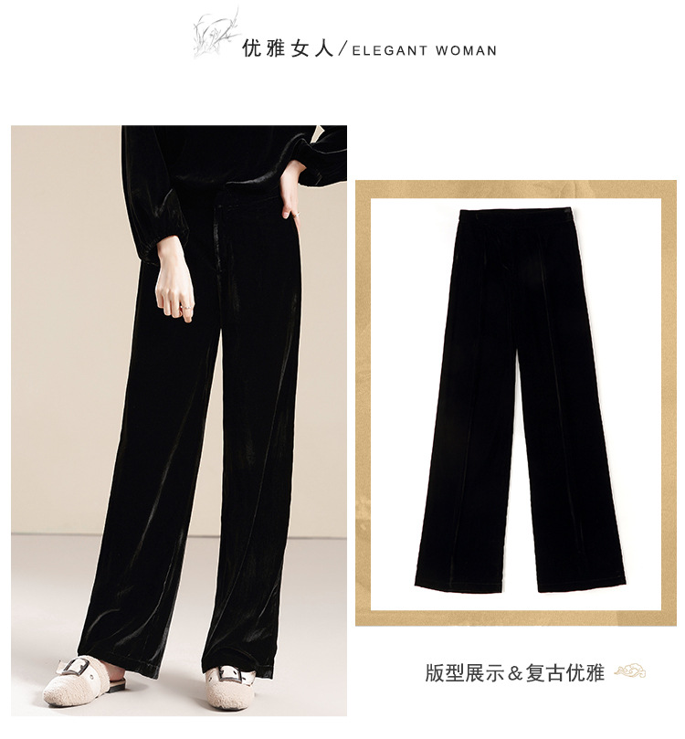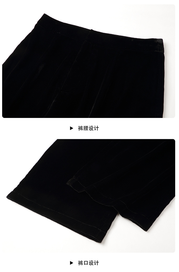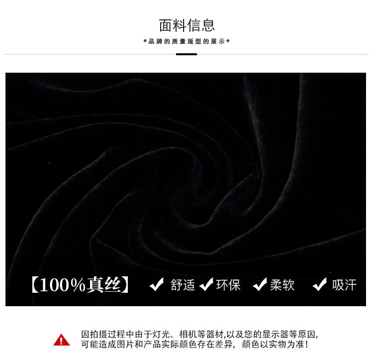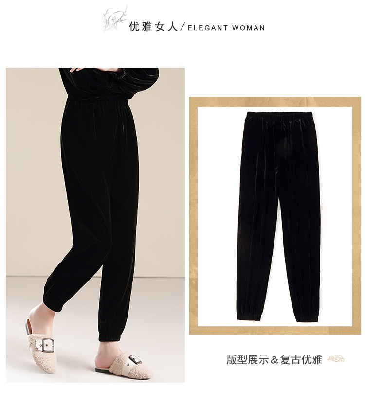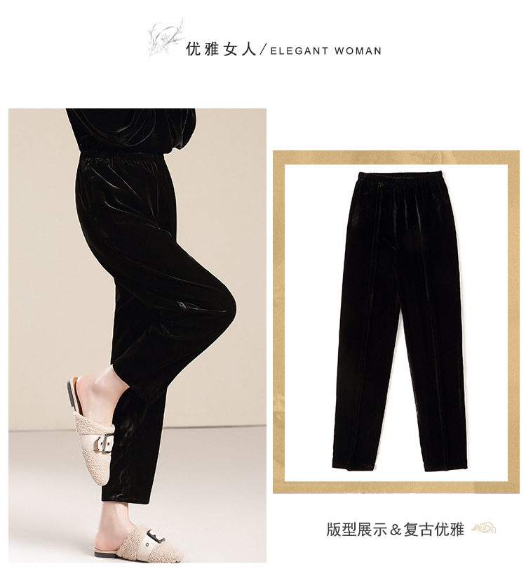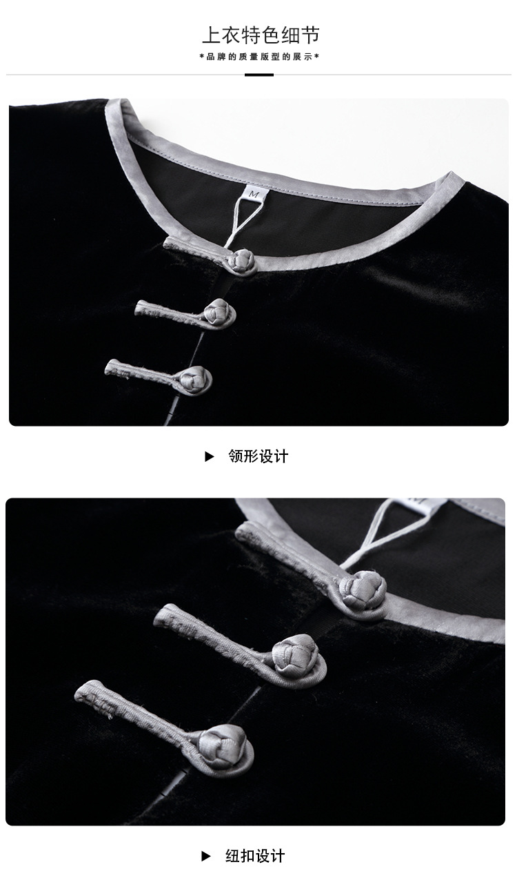上海旗袍厂AYK-QF-210722净色真丝丝绒宽松圆领长袖上衣女+长裤女2021复古新款女装套装女