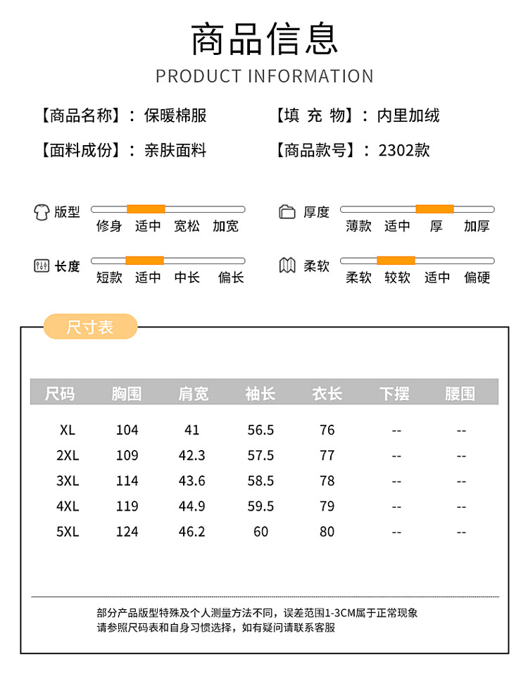 更正 袖长 XL54CM 2XL54CM 3XL54CM 4XL55CM 5XL56CM 袖子误差在1-2CM 左右 XL胸围99cm 2XL胸围103cm 3XL胸围107cm 4XL胸围111cm 5XL胸围116cm尺寸误差1-3cm左右