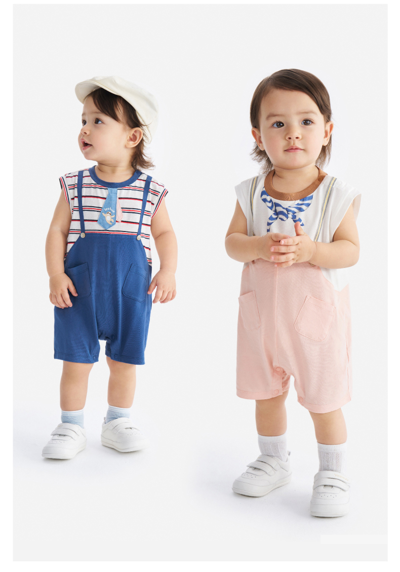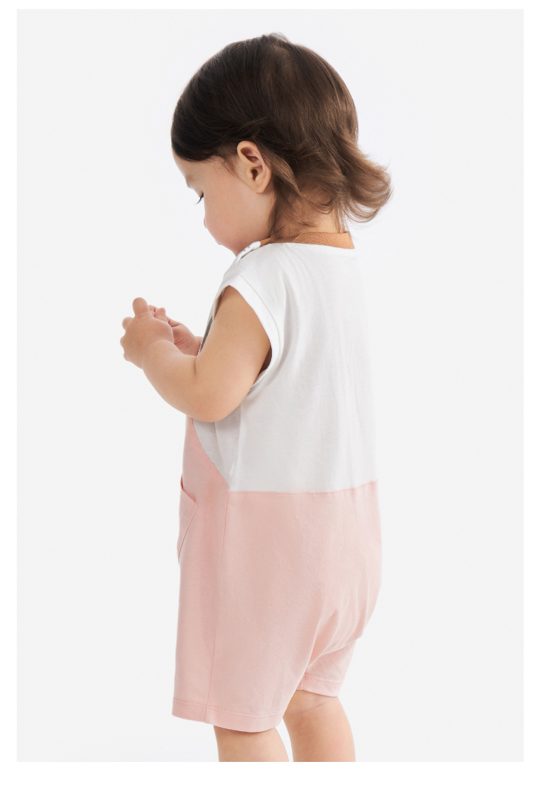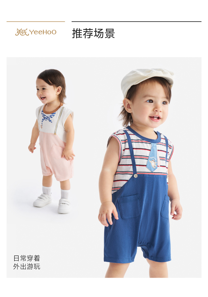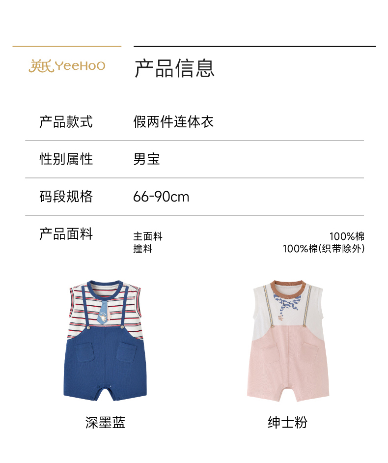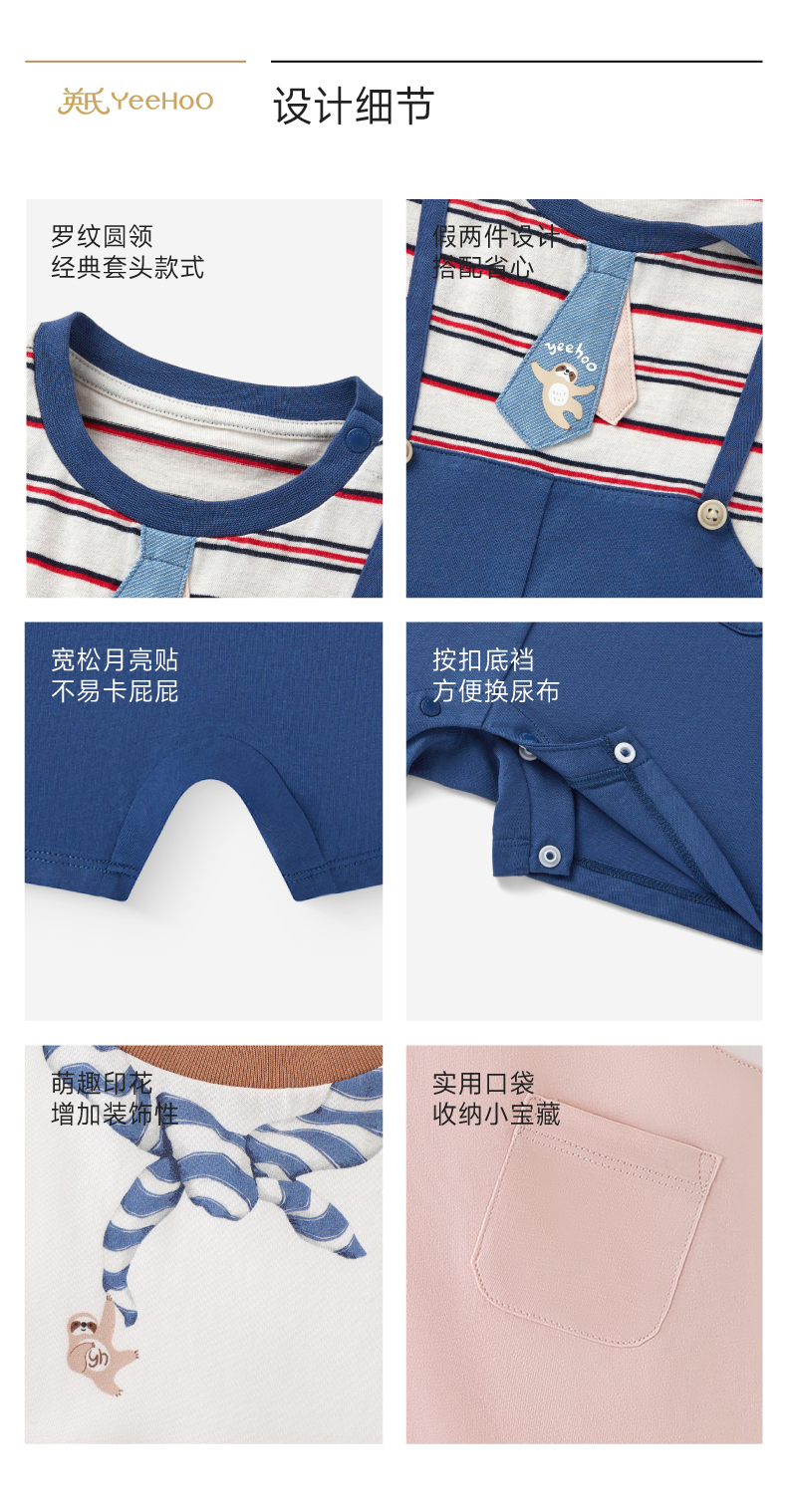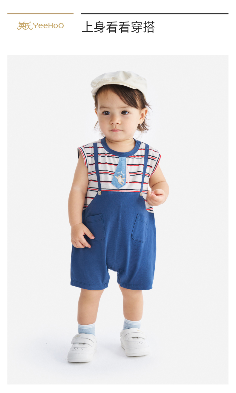 【100%精梳棉】英氏婴儿连身衣宝宝夏季纯棉连体衣男宝假两件短袖哈衣可爱新款